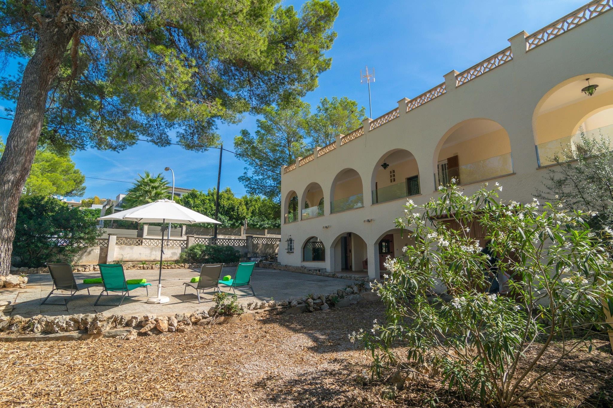 Det rummelige udvendige område af dette hus er perfekt til at slikke Mallorcas sol på liggestolene, nyde en lækker grill eller nippe til en aperitif på den store veranda, før du begiver dig ud for at udforske denne eksklusive del af øen. De rolige og elegante omgivelser gør det til et ideelt sted at slappe af og slappe af, mens du nyder frisk luft og middelhavsstemning. Indvendigt er huset opdelt i to etager. Den fuldt renoverede stueetage byder på en komfortabel stue med aircondition og TV, et køkken udstyret med en keramisk kogeplade og opvaskemaskine, og to soveværelser med dobbeltsenge og AC. Et soveværelse har eget badeværelse med bruser, mens et andet badeværelse med badekar også er tilgængeligt på dette niveau. Den nederste etage er en hyggelig selvstændig lejlighed i traditionel stil med stue/spisestue køkkenplads, soveværelse med AC og badeværelse med bruser. Yderligere faciliteter inkluderer en vaskemaskine, strygejern og strygebræt samt en barneseng og høj stol til familier. Portals Nous er et fredeligt boligområde nær en af ??Mallorcas mest eksklusive havne, hvilket giver det en kosmopolitisk, men alligevel afslappet følelse. Grundlæggende tjenester såsom supermarkeder, barer og restauranter er alle i nærheden, såvel som de smukke strande Caleta de Portals Nous og Portals Nous. Golfelskere vil sætte pris på nærheden af ??Son Muntaner golfbane, lidt over 10 kilometer væk. Parkering er tilgængelig for op til tre biler inklusive en garageplads. Kæledyr og arrangementer er ikke tilladt.