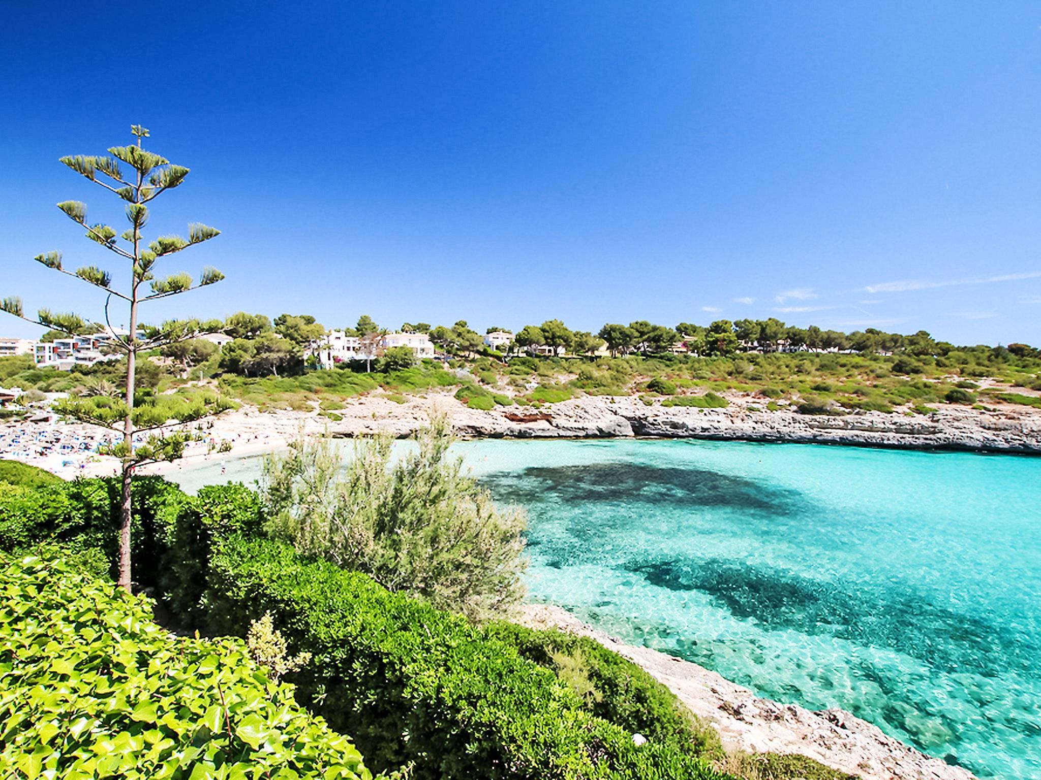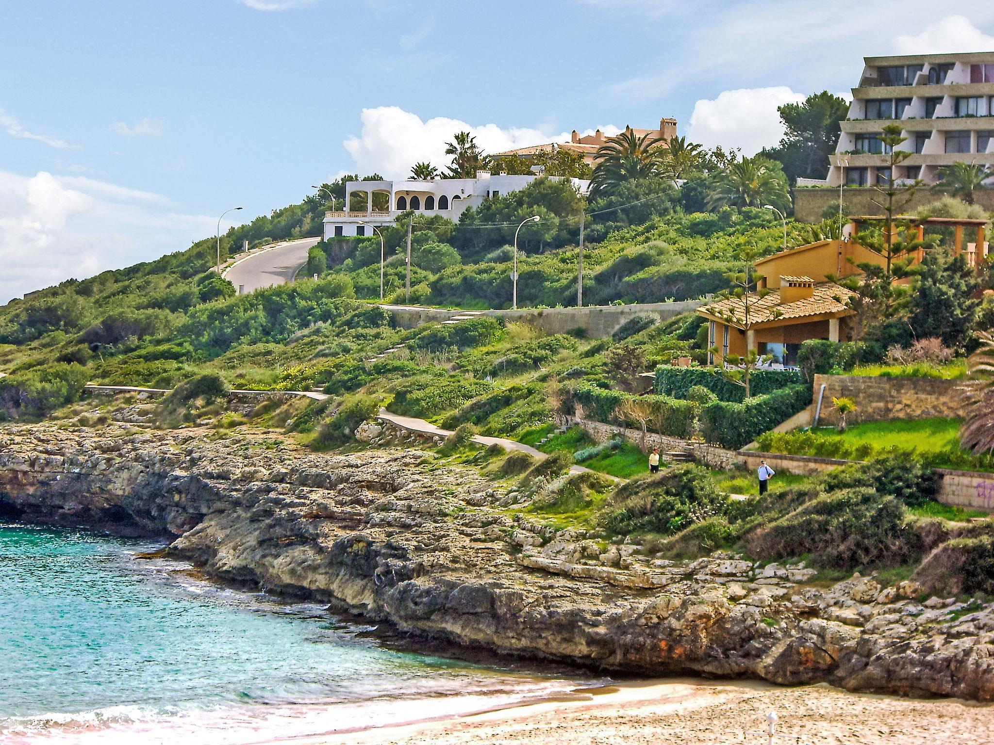 Cala Mendia: Very beautiful, cosy house "Cala Mendia Sea Views", 2 storeys. In the resort, in a quiet, sunny position on a slope, 30 m from the sea, 100 m from the beach, direct access to the beach. Private: property 400 m2, terraced garden with wildlife garden and flowers. Patio, pergola, garden furniture, barbecue. In the house: washing machine, drying room. Stepped path to the house. Shop 200 m, grocery, supermarket, restaurant, bus stop 300 m, sandy beach 100 m. Golf course (18 hole) 15 km, tennis 500 m. Object suitable for 6 adults groups of teenagers on request only. Please note: airfield 65 km from the property. The house is located in a privileged environment. The house is divided into 4 levels and has stairs leading down to the sea. The house is the ochre one on the picture.