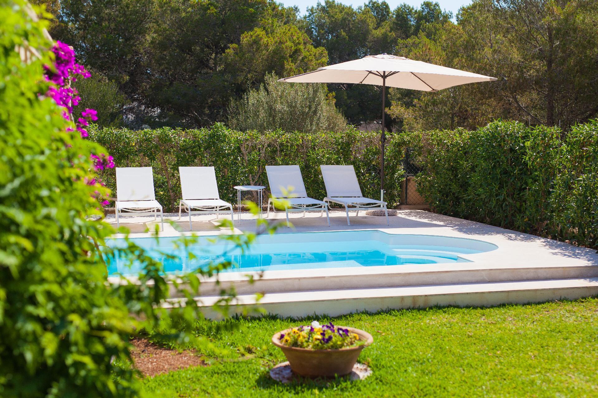 Villa with swimming pool and garden 5 minutes walk from the beaches of Cala Mandía and Cala Anguila.