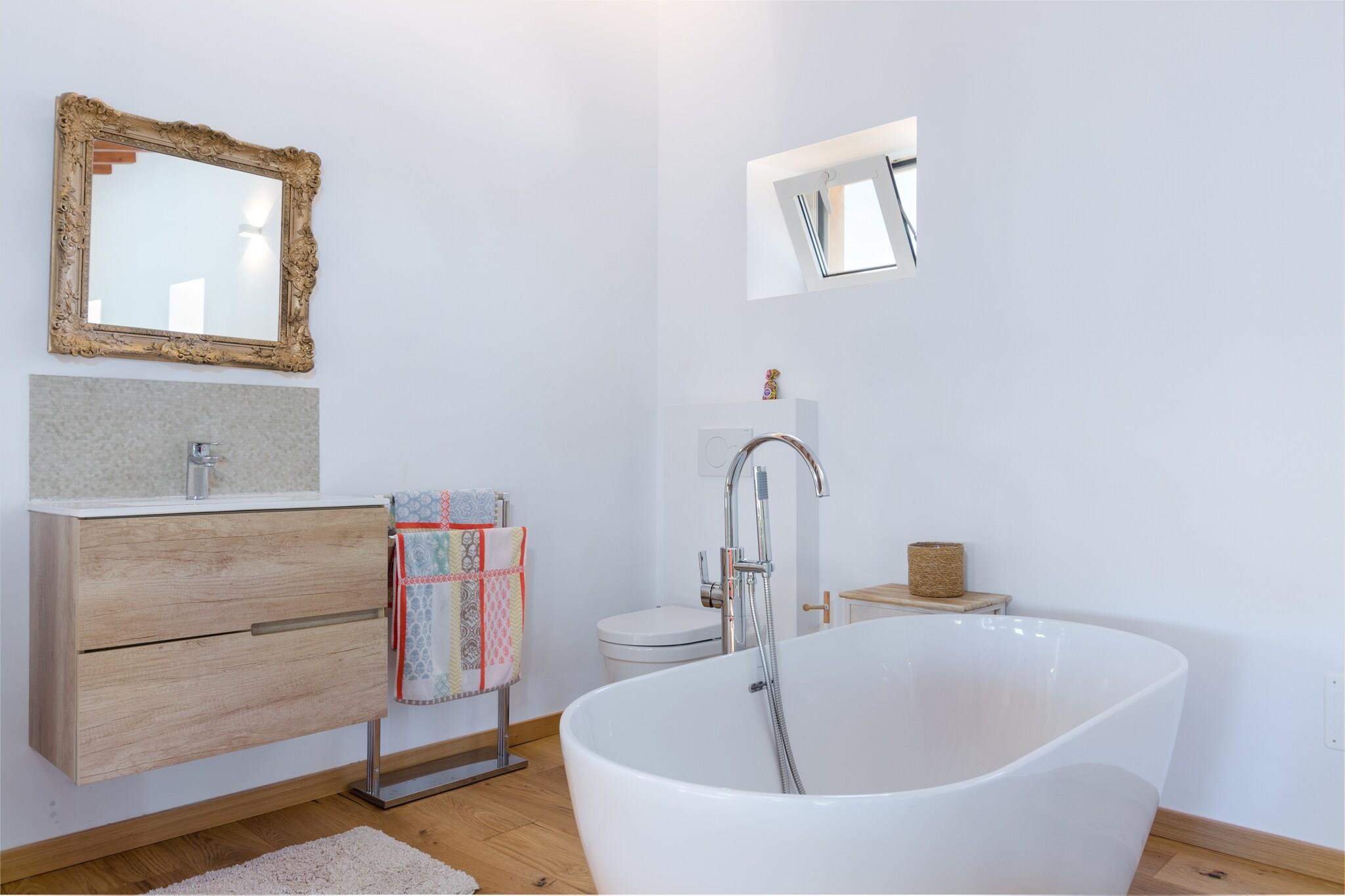Den landlige konstruktion er omgivet af et magisk miljø takket være det imponerende landskab af rene bjerge og landskab. Terrassen er det perfekte sted at nyde en energigivende morgenmad og resten af dine måltider udendørs. Faktisk inviterer vi dig til at lave en lækker BBQ. Lige foran terrassen venter den smukke saltvandspool. Den måler 7 x 3,5 meter med en vanddybde på 1,6 meter. Her kan du svømme, mens du beundrer naturen. Ejendommen er indhegnet og der er total privatliv. Inde i den hyggelige villa går spisepladsen i ét med stuen, hvor en varm pejs inviterer til afslapning. Udstyret med satellit-tv og AC er dette rum perfekt til underholdning. Køkkenet, med gaskomfurer, byder på bekvemmelighed til at tilberede lækre måltider. Tre veludstyrede soveværelser giver tilflugtssted, alle med et klædeskab og aircondition. To af dem har enkeltsenge til fredelig hvile, mens den tredje byder på en rummelig dobbeltseng og et tv med spanske kanaler for ekstra komfort. Hvis du rejser med din baby, kan vi tilbyde en barneseng og en høj stol. Der er to badeværelser i huset, det ene med badekar og det andet med bruser hvor vaskemaskinen er placeret. Derudover er der et strygejern og strygebræt til rådighed. Fincaen ligger omkring 5,9 km væk fra Campanet, en rolig by, men stadig fuld af liv og glæde. Pladsen er berømt på grund af de gode barer og restauranter og gademarkedet, der finder sted tirsdage og lørdage. Området er ideelt for dem, der elsker natur og vandre- eller cykelture. Endelig kan du ikke gå glip af et besøg i de gamle grotter i nærheden. Turistlicens: VT/1699