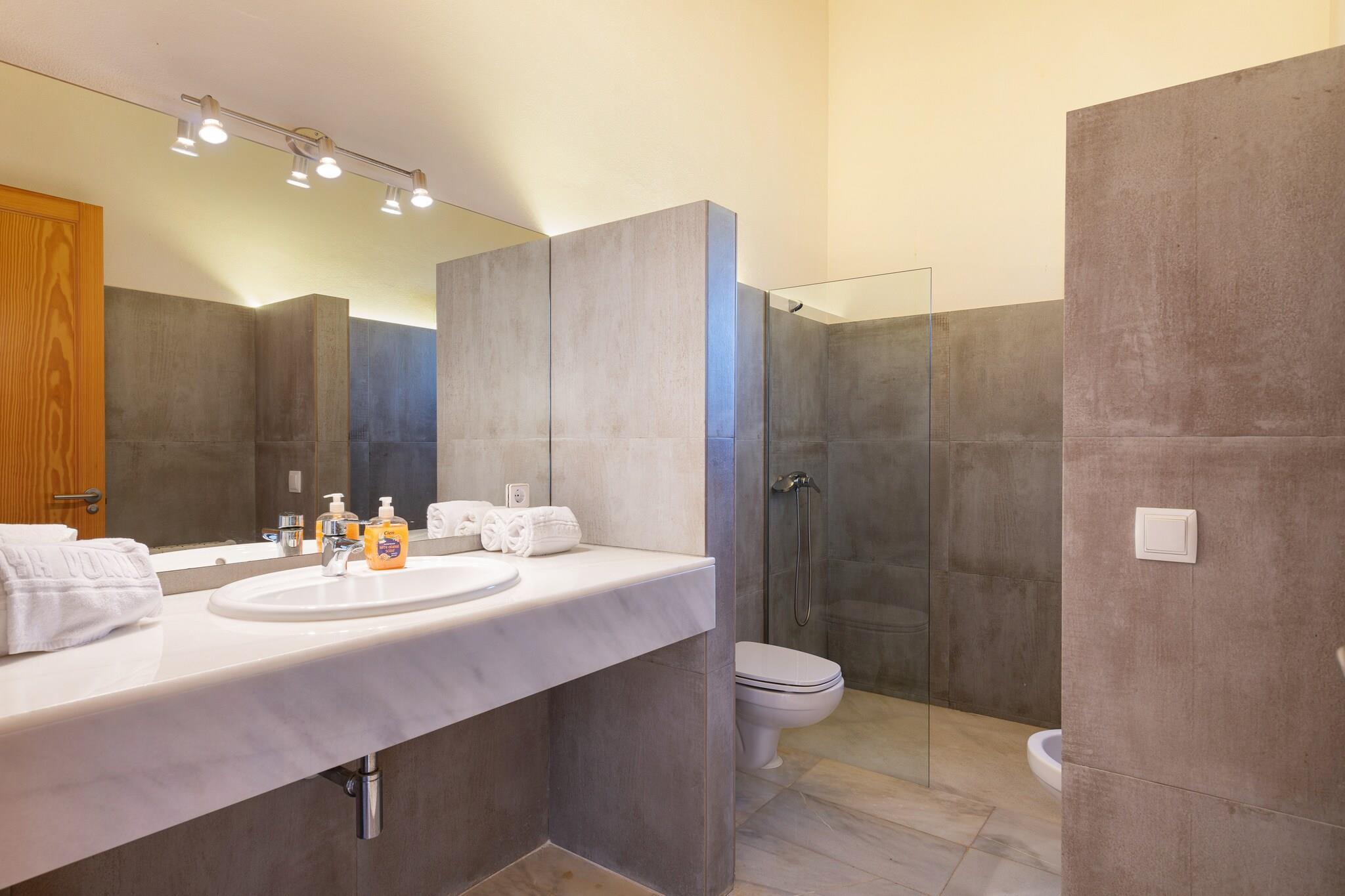 Denne fantastiske villa i Porto Cristo tilbyder den perfekte blanding af afslapning og familievenlig komfort. Udendørs inviterer den private saltvandspool (9×4m, dybde 1,2–2,1m) til forfriskende dukkert, mens liggestole og en rummelig have giver rigelig plads til at slappe af eller lege. Den skyggefulde spiseplads og grillen gør den ideel til at samles med sine kære over lækre måltider. Med ejendommen fuldt indhegnet, er privatlivets fred garanteret. Indvendigt er to-etagers layout gennemtænkt designet. Stueetagen har en hyggelig stue med satellit-tv, et separat køkken med keramisk kogeplade og spiseplads samt et soveværelse med 2 enkeltsenge med adgang til terrasse. Ovenpå tilbyder yderligere to soveværelser - et med dobbeltseng og et med en-suite - komfort og adgang til private terrasser. Tre badeværelser med bruser sikrer bekvemmelighed, og faciliteter såsom centralvarme, en vaskemaskine og babyudstyr (barneseng og høj stol) er inkluderet.