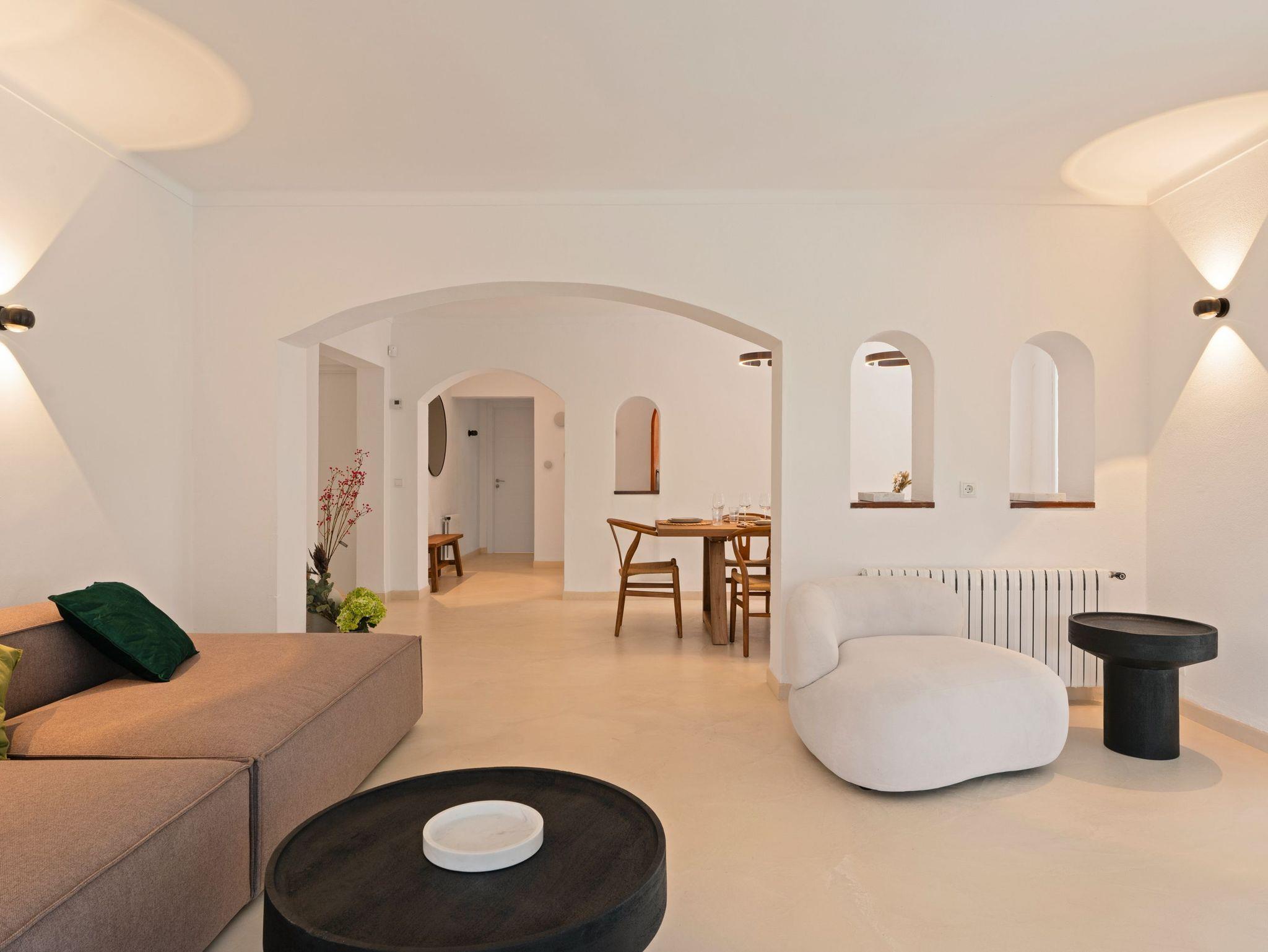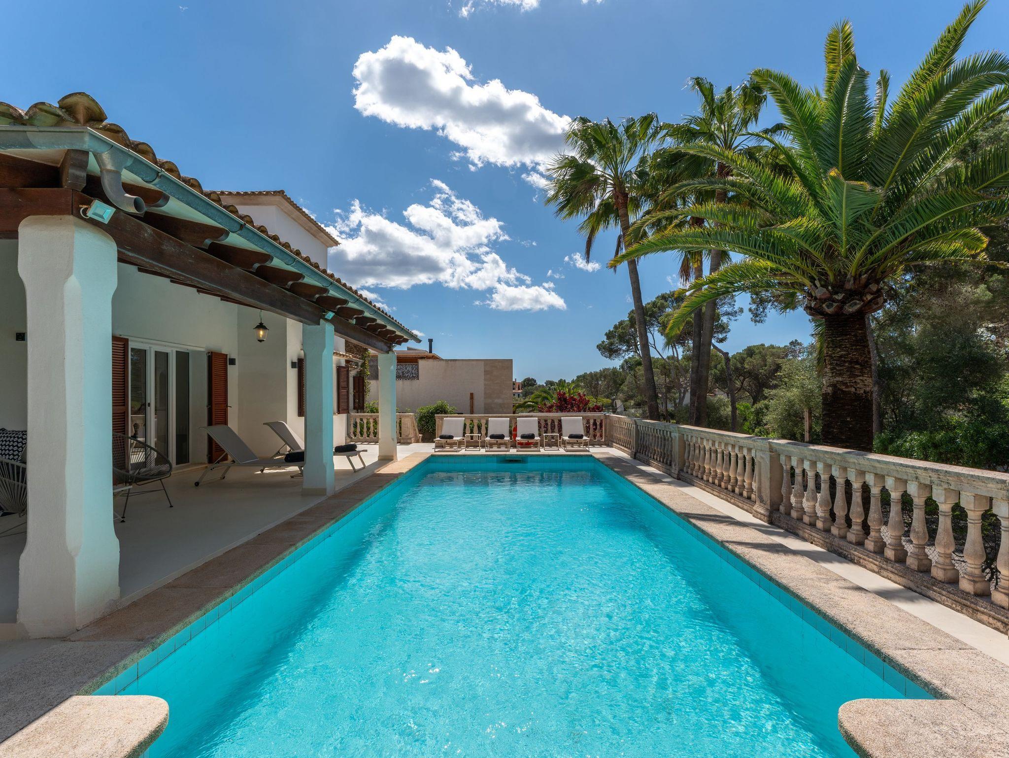 Der Außenbereich ist eine wahre Oase: eine geräumige Terrasse mit privatem Swimmingpool, umgeben von Grün, ideal zum Entspannen in der Sonne oder zum Essen im Freien. In einer ruhigen Umgebung, nahe am Meer gelegen, ist es der perfekte Rückzugsort für einen langsamen Urlaub auf Mallorca.