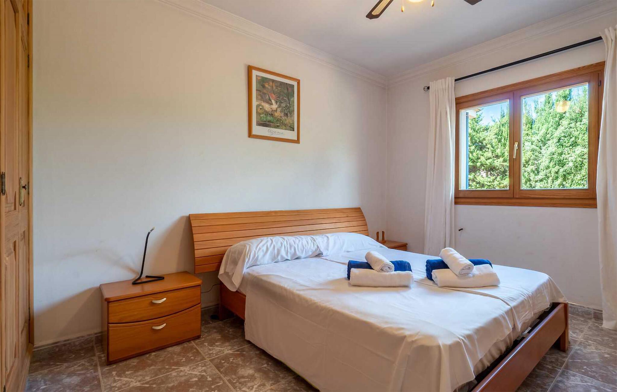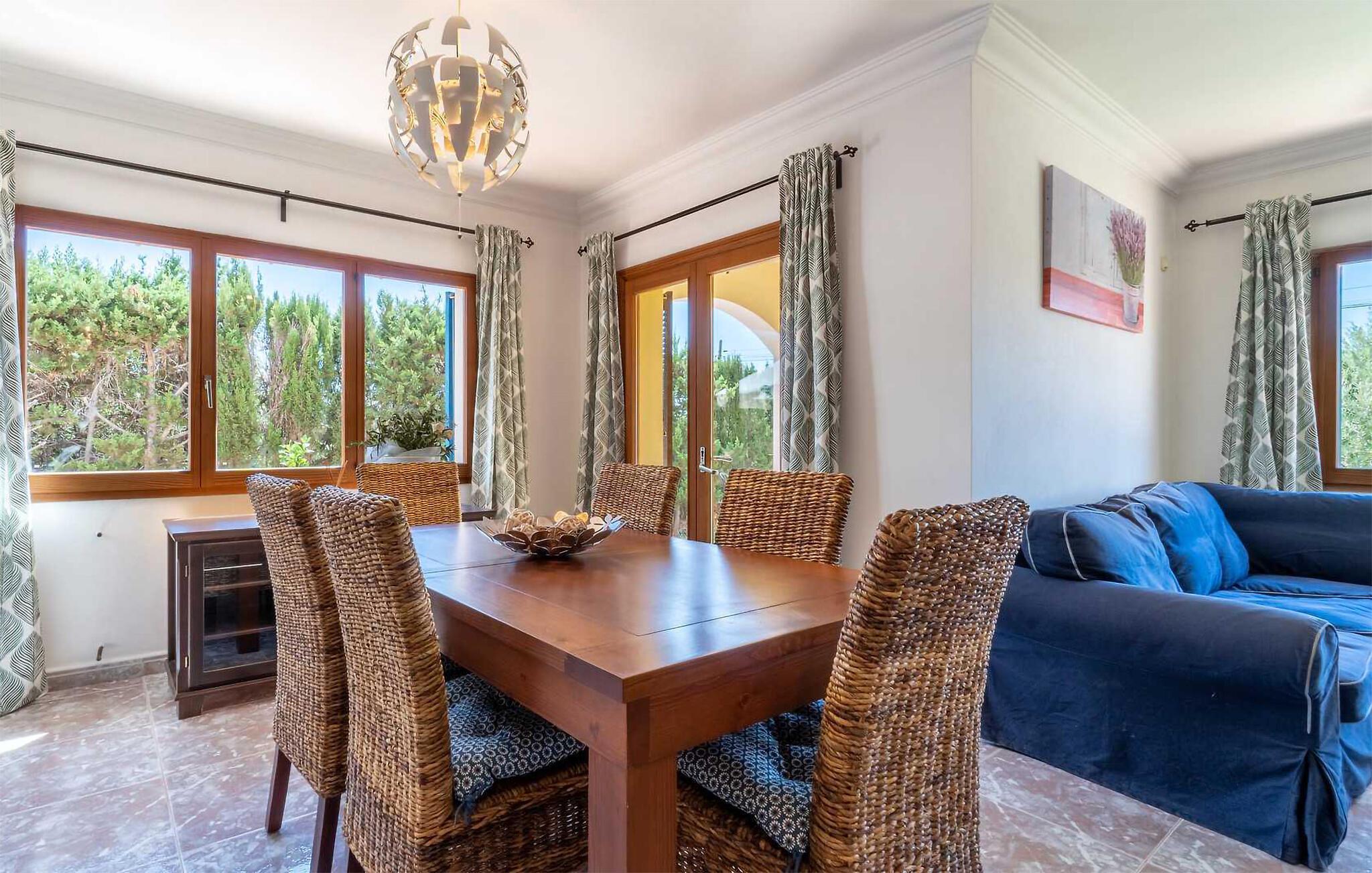 Denne rummelige og komfortable villa ligger i et velholdt boligområde ikke langt fra den maleriske havneby Portocolom på Mallorcas sydøstkyst. Det lyse og hyggelige interiør giver jer rigelig plads til at tilbringe tid med venner eller familie. Forvandl friske råvarer fra markedet til lækre måltider i det rummelige køkken og find sammen omkring spisebordet. Efter en lang dag kan I læne jer tilbage i sofaen til en spilleaften eller en god bog.