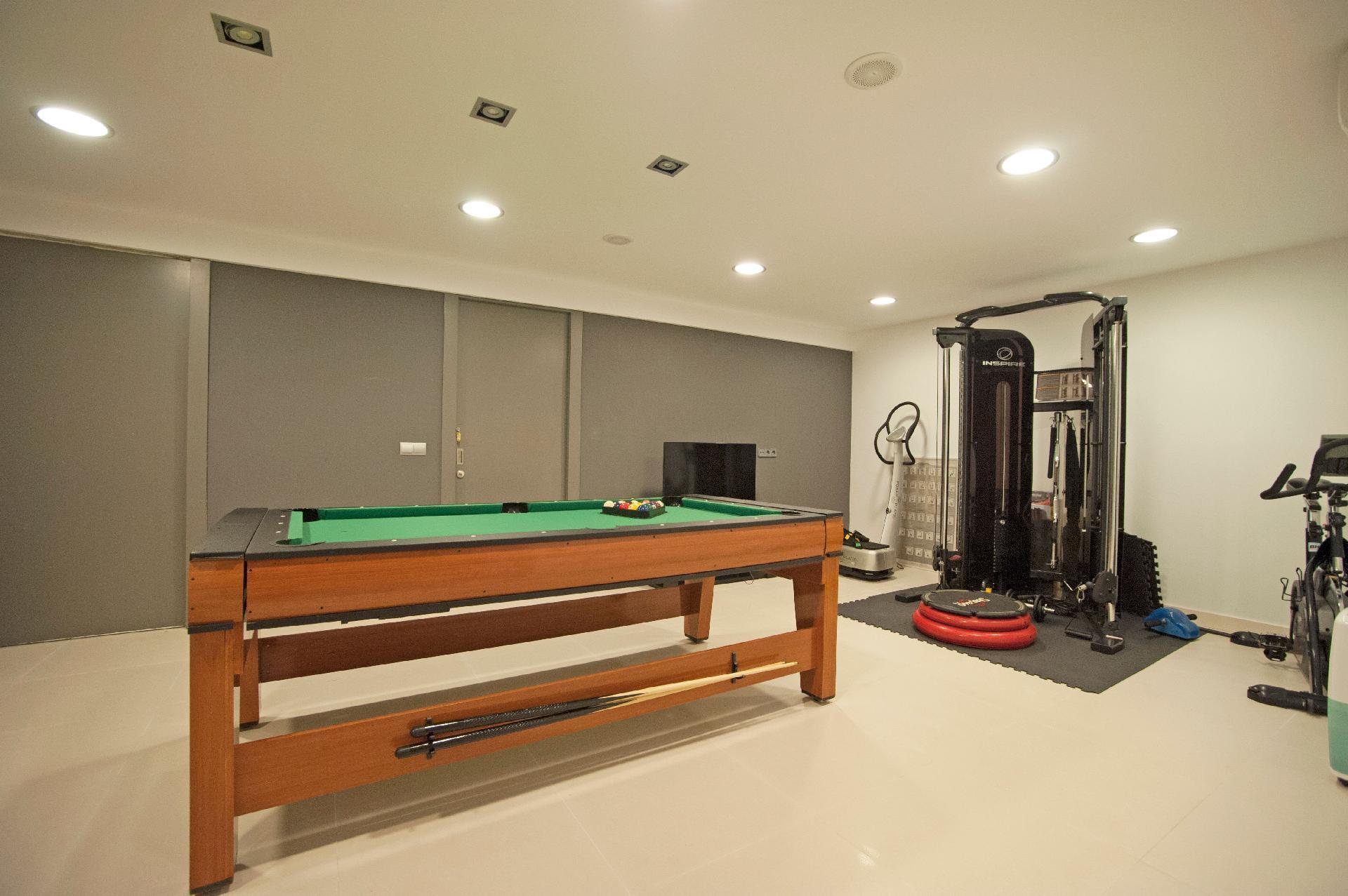 Inside, the villa unfolds over three levels of sophistication and comfort. It features five double bedrooms, each a sanctuary of relaxation with its own television, air conditioning, WiFi, and private bathroom, comfortably accommodating up to 10 guests. The living spaces are thoughtfully designed, from a fully equipped kitchen brimming with different amenities to a variety of leisure areas including a quaint office space, a playroom complete with ping-pong, and a modest gym with bathroom facilities — all ensuring a stay that blends marine vibes with homely comfort.