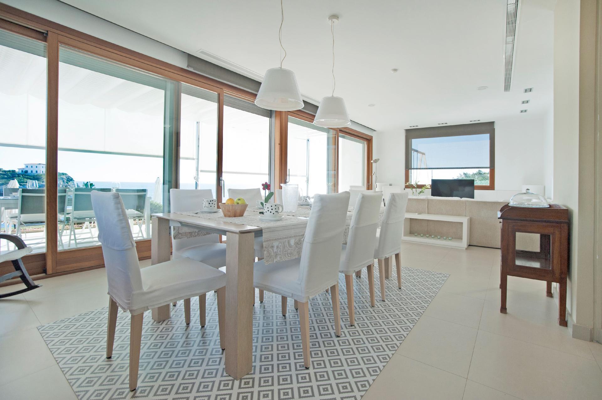 Discover comfort redefined in this exquisite villa, perfectly positioned to capture the stunning views of the Porto Colom lighthouse, embraced by the limitless blue of both sky and sea. Boasting a modern style enriched with warm tones, this property plunges you into a serene Mediterranean atmosphere, promising an unforgettable retreat with its myriad of warm and functional spaces.