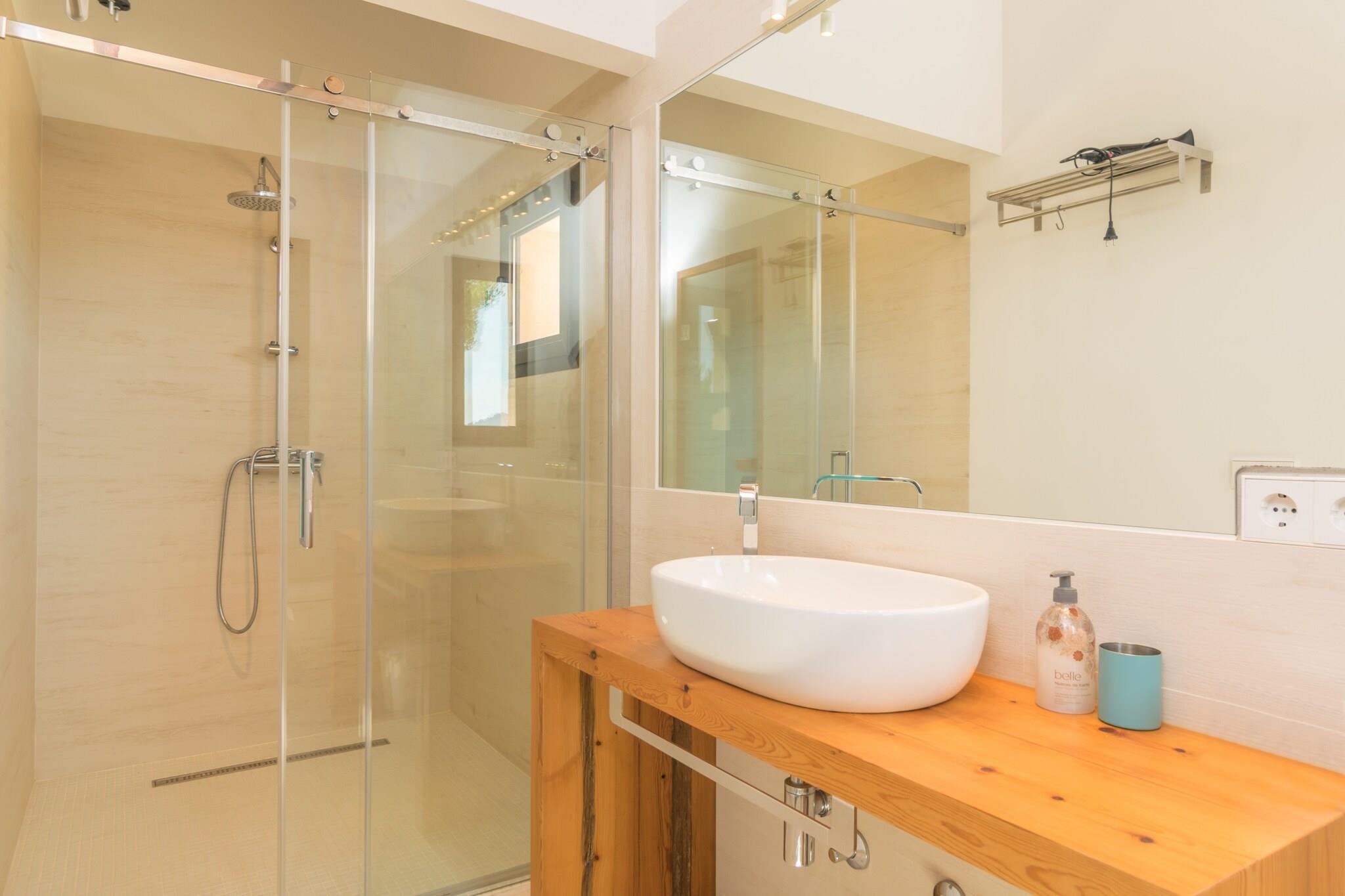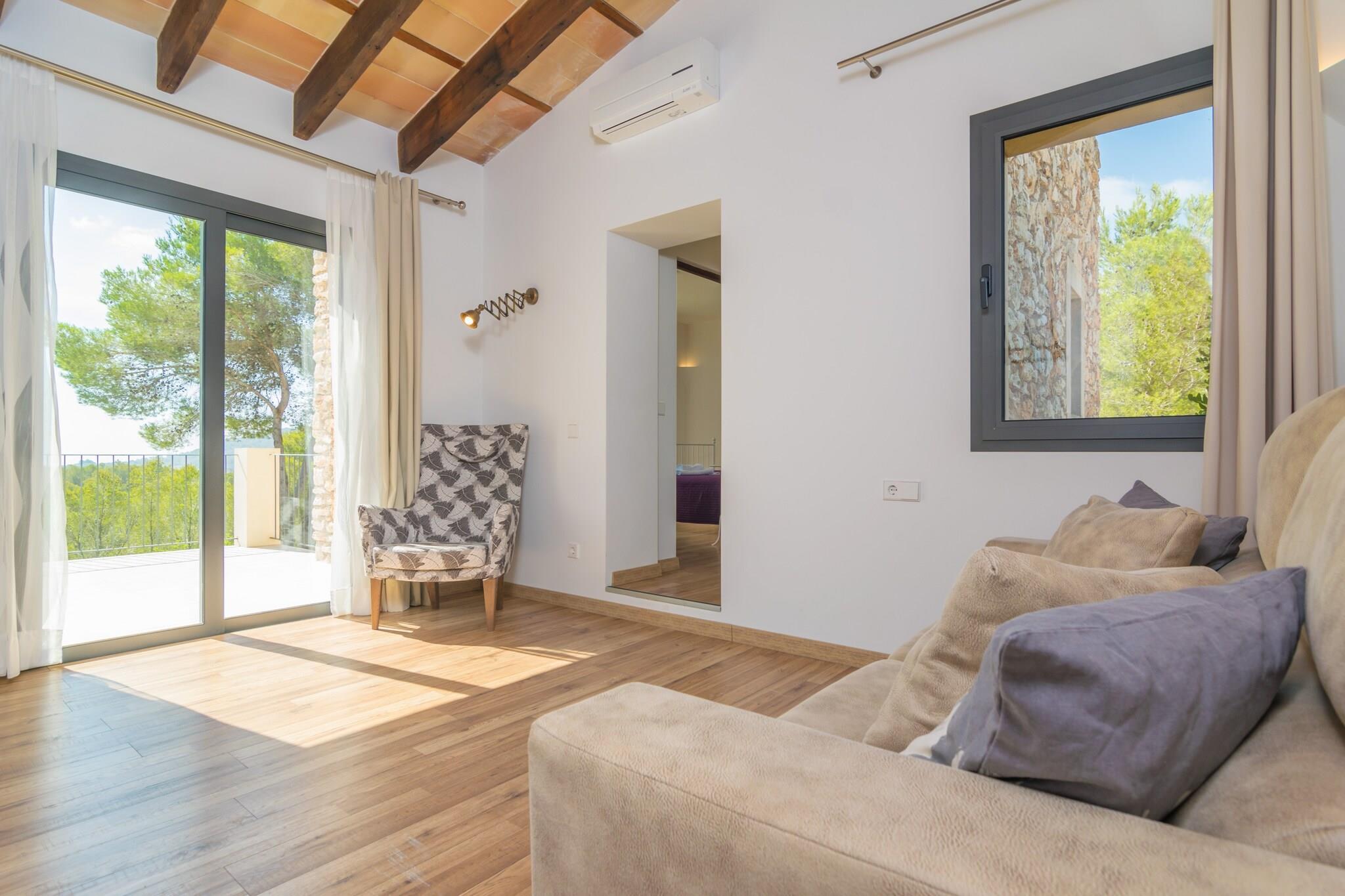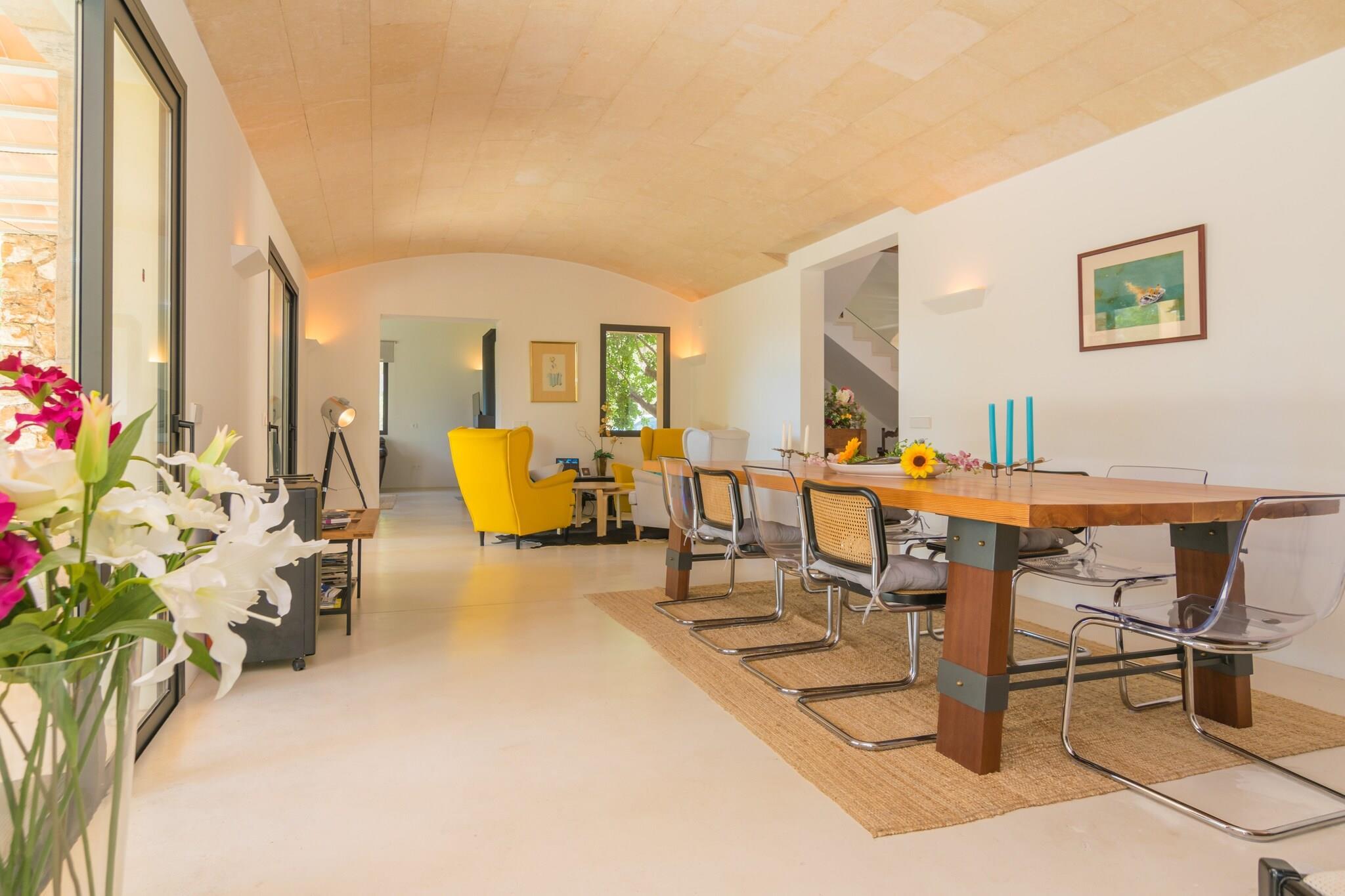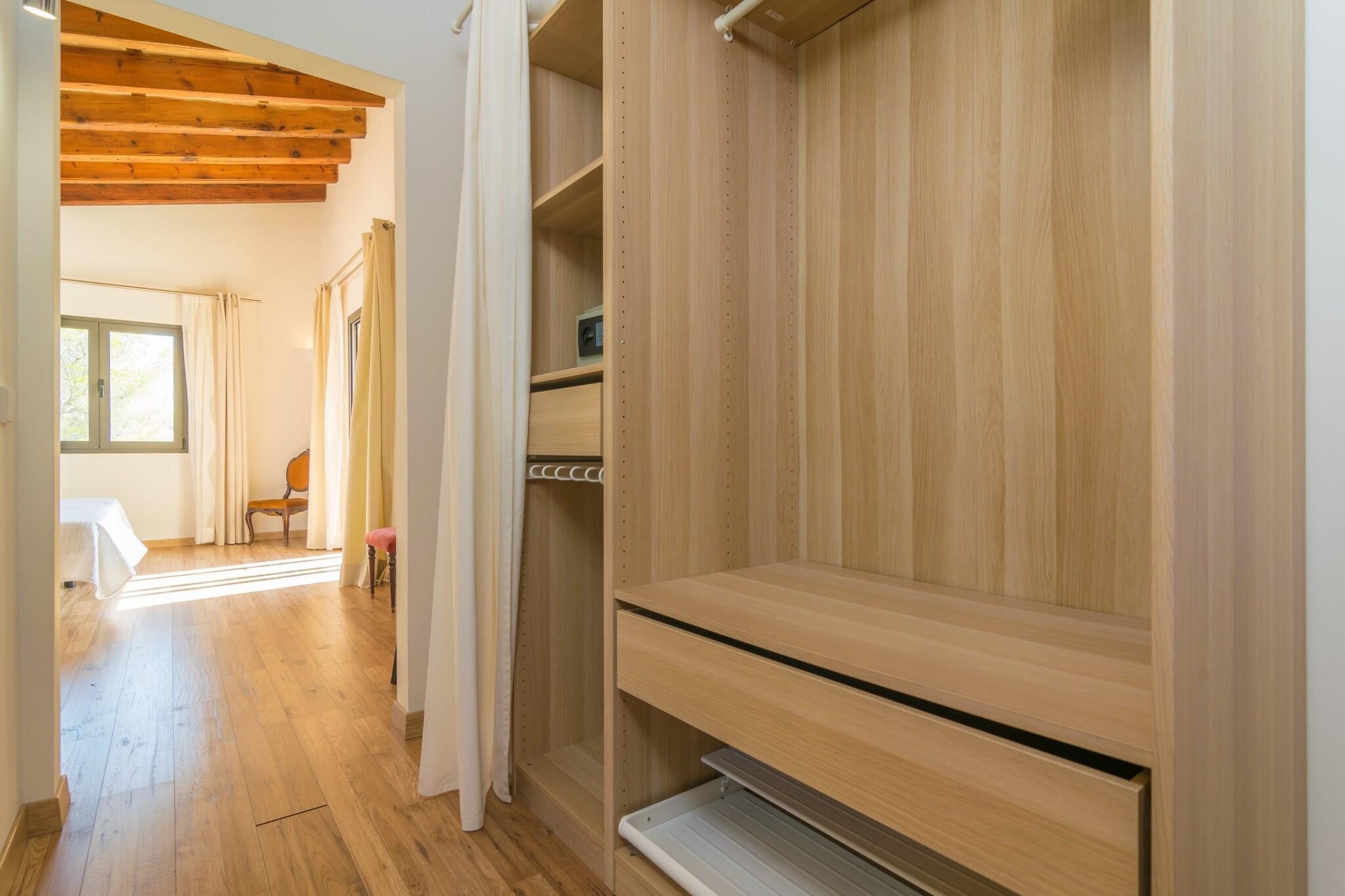 De buitenkant van dit pand, dat ongeveer 28.000 m2 beslaat, is volkomen dromerig, van het zwembad, de tuin en de fantastische veranda's tot de schoonheid van de in steen gehulde constructie. Voor de ingang van het huis vinden ze een overloop waar ze 's avonds kunnen zitten en genieten van een kopje koffie of een glas wijn, waardoor het een decor wordt dat uit een film lijkt te komen. Het zwembad is zowel overdag als 's nachts ideaal om in te zwemmen, omdat het binnenin verlichting heeft. Het heeft afmetingen van 12 mx 4 m, een diepte van 1,10 tot 1,70 m, is chloor en is uitgerust met 10 ligstoelen. Ernaast nodigt de veranda, uitgerust met een gaskookplaat, barbecue en vaatwasser, u uit om met het gezin te lunchen of dineren en te ontspannen in de rieten fauteuils. Het huis is volledig nieuw en ontworpen met een onverslaanbare smaak en decoratie. Het uitzicht over het landschap en het bos vanuit het binnenland laat niemand onverschillig. Het heeft een woonkamer met satelliettelevisie en airconditioning; een eetkamer met een exclusief design met ruimte voor veel diners; een tijdschriftenkeuken met keramische kookplaat, oven, magnetron en alles wat u nodig heeft; en in totaal vijf slaapkamers en zes badkamers met douche. Twee van de slaapkamers met twee eenpersoonsbedden (waarvan één met een en-suite badkamer met douche) en een buitenbadkamer bevinden zich op dezelfde verdieping. Als u de trap opgaat, zijn er de drie overige slaapkamers, twee met twee eenpersoonsbedden en één met een tweepersoonsbed; evenals de drie overige badkamers, allemaal met douche en een eigen badkamer. Alle kamers hebben een kledingkast en airconditioning, en twee ervan hebben toegang tot een terras en de mogelijkheid om maximaal twee kinderbedjes en twee kinderstoelen te huisvesten. Er is een aparte wasruimte met een wasmachine, strijkijzer en strijkplank. Op slechts 70 meter afstand bereikt u de weg die Portocolom met Felanitx verbindt, dus u kunt soms het geluid horen, hoewel dit eigenlijk gunstig is omdat u er gemakkelijk toegang toe heeft en in korte tijd naar elk gebied kunt gaan, en alle diensten en winkels zeer dicht bij u zijn. Voor liefhebbers van strand en paradijselijke baaien is de locatie perfect omdat het een kustgebied van het eiland is, inclusief baaien zoals Cala Marçal, Cala Murada of Cala Domingos. Voor eventuele extra kosten kunt u contact opnemen met de adverteerder. Wij accepteren geen huisdieren. Het vieren van evenementen is niet toegestaan. Er is buiten parkeergelegenheid voor 5 auto's. Afstanden Strand: 8,3 km - Cala Marçal Luchthaven: 50,8 km - Son Sant Joan Golfbaan: 5,2 km - Golf Vall d'Or Stad: 5,3 km - Felanitx Treinstation: 17,6 km - station Manacor Bushalte: 5,3 km - Felanitx Veerboot: 60,7 km - Haven van Palma Ziekenhuis: 19,5 km - Manacor-ziekenhuis Toeristenvergunning: ETV/8262Bij de ingang dient u de Ecotasa (toeristenbelasting van de Balearen) contant te betalen. Het bedrag varieert tussen EURO 0,55 / per nacht per persoon in het laagseizoen en EURO 2,2 / per nacht per persoon in het hoogseizoen. Vanaf de negende dag wordt het met de helft verminderd. Personen onder de 16 jaar uitgesloten. Bij de ingang dient u de borg rechtstreeks aan de eigenaar te betalen.