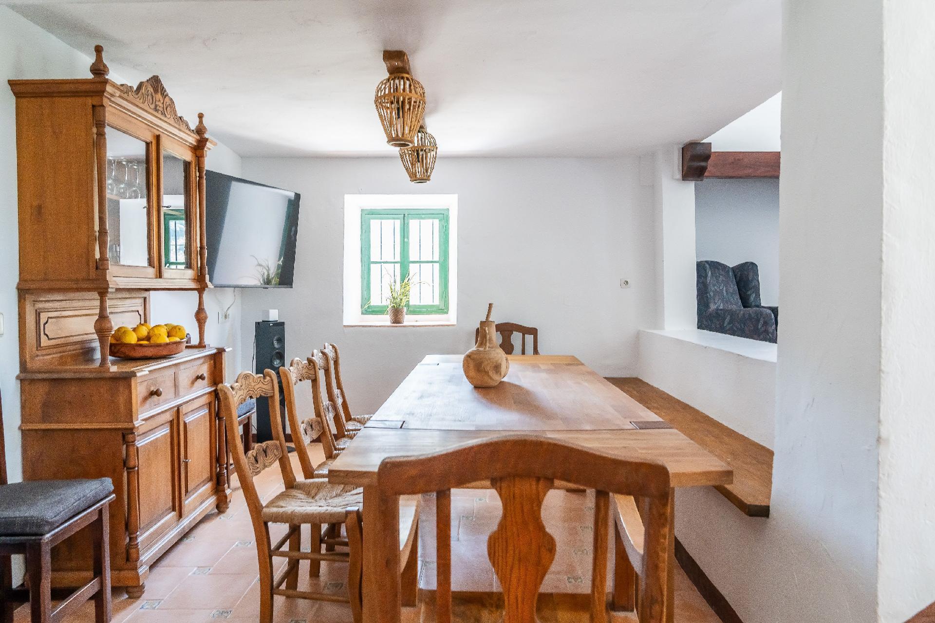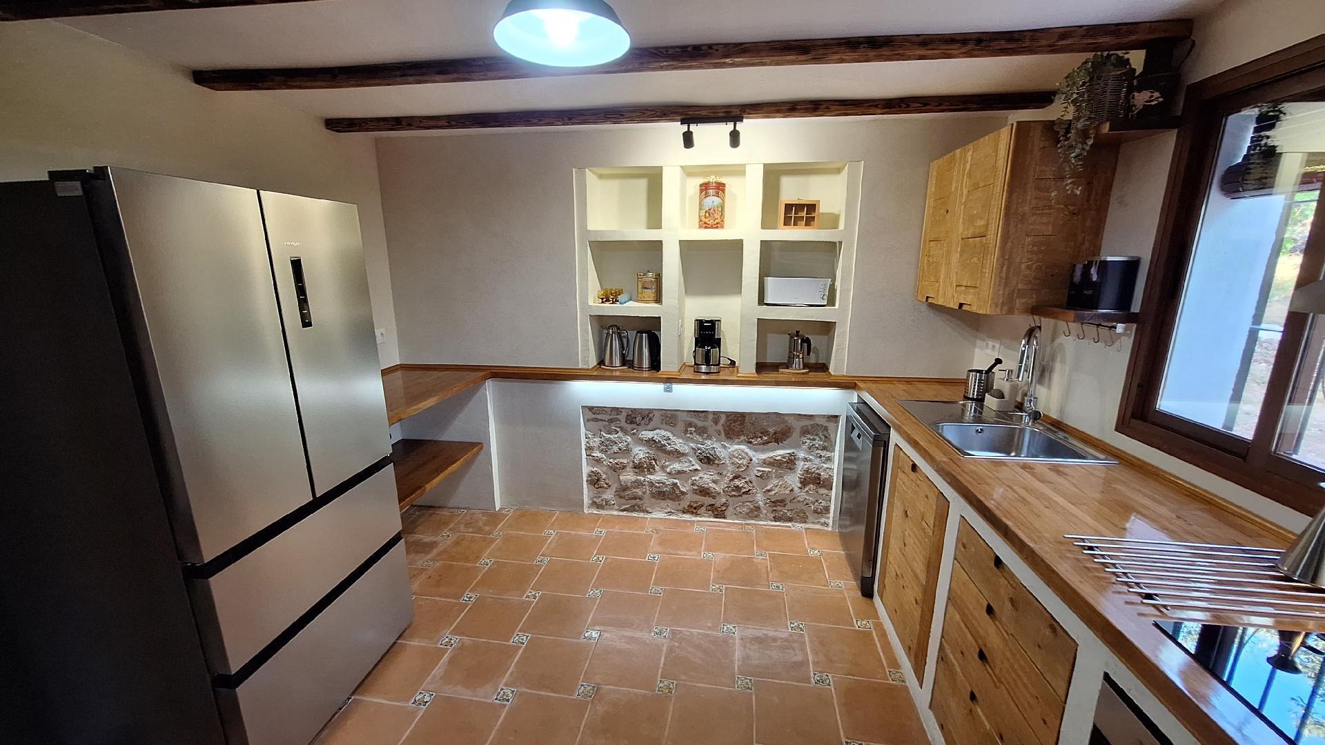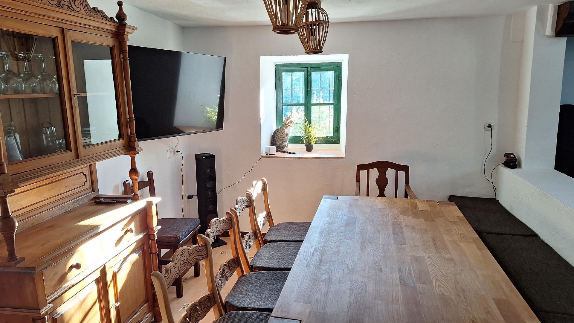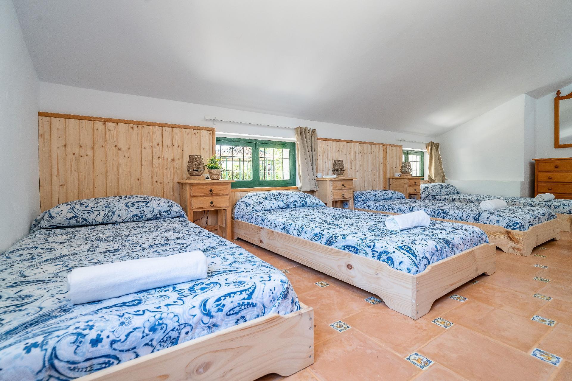 We have restored an old farmhouse trying to respect as much as possible the essence of a country house, but with the comforts that are demanded nowadays. Air conditioning in the 4 bedrooms on the first floor and in the living room, Starlink wifi throughout the property of 100 mgb, 55 inch smart TV, dishwasher, washing machine, dryer, oven, microwave, etc... On the ground floor there is a living room, dining room, kitchen, bathroom and bedroom with 1,35 x1,90 m bed, and on the first floor, 2 double bedrooms, a triple bedroom and a quadruple bedroom.