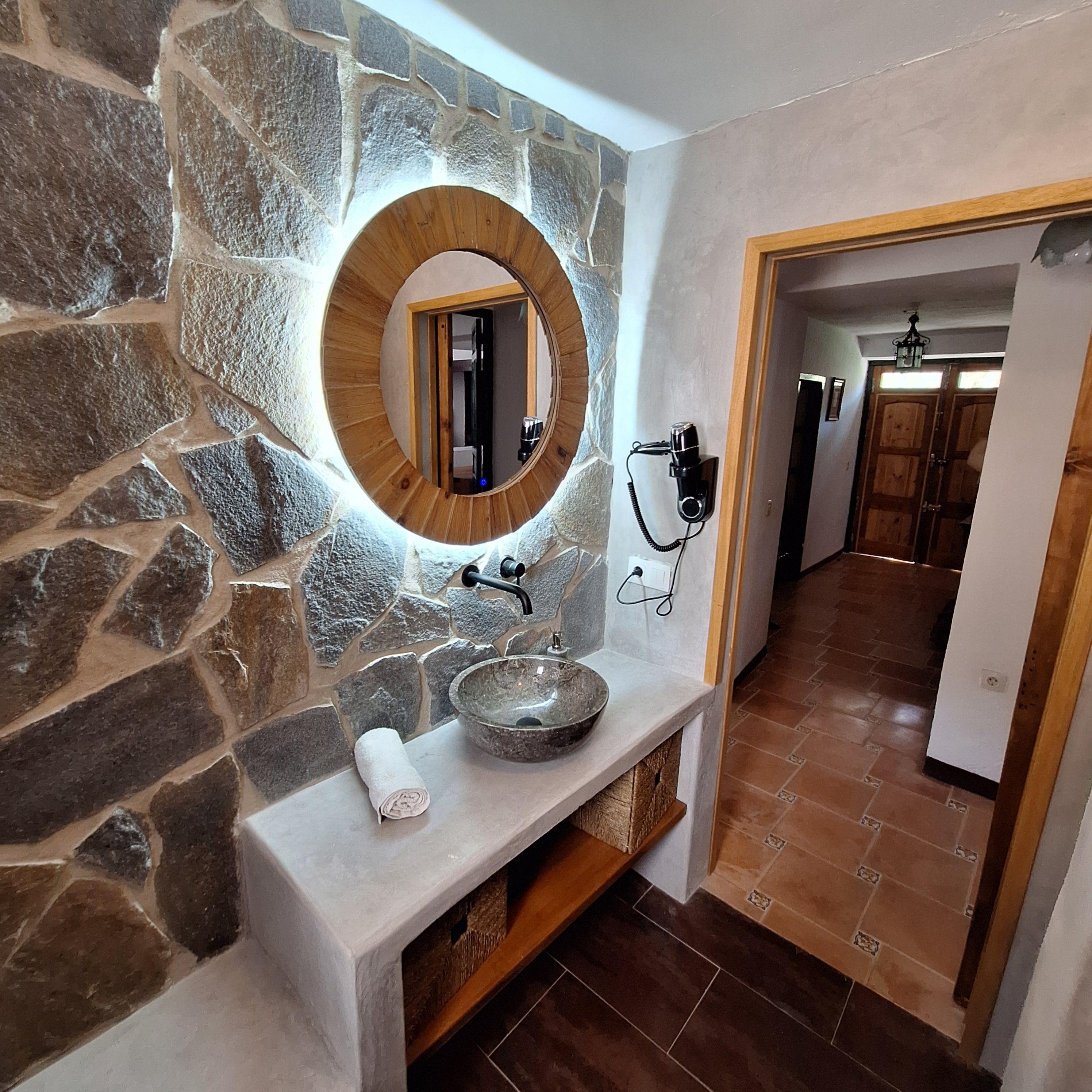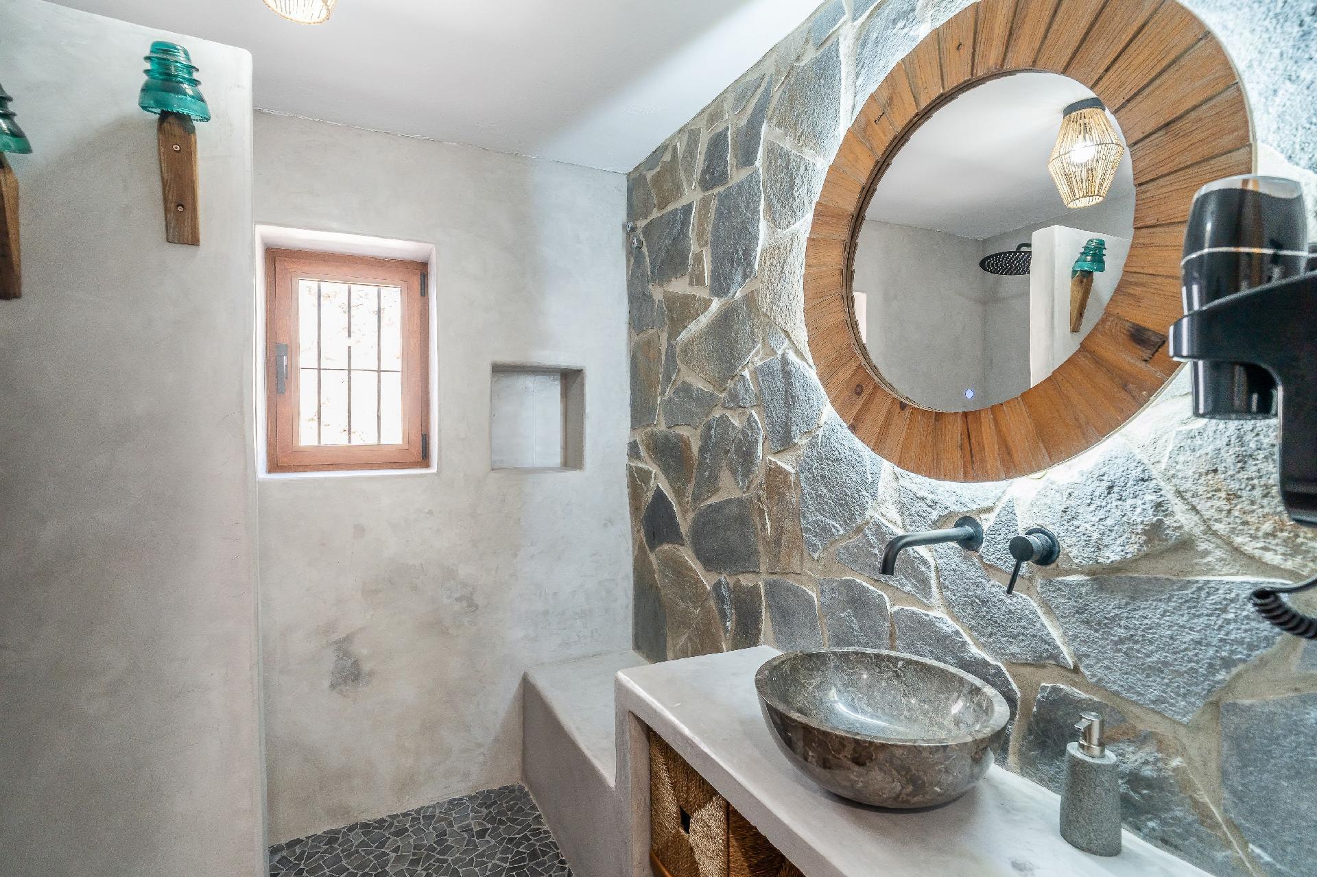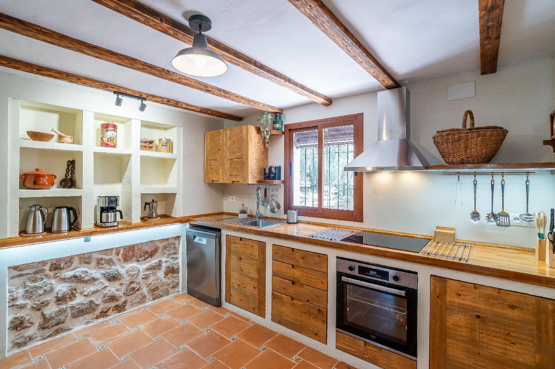 We have restored an old farmhouse trying to respect as much as possible the essence of a country house, but with the comforts that are demanded nowadays. Air conditioning in the 4 bedrooms on the first floor and in the living room, Starlink wifi throughout the property of 100 mgb, 55 inch smart TV, dishwasher, washing machine, dryer, oven, microwave, etc... On the ground floor there is a living room, dining room, kitchen, bathroom and bedroom with 1,35 x1,90 m bed, and on the first floor, 2 double bedrooms, a triple bedroom and a quadruple bedroom.