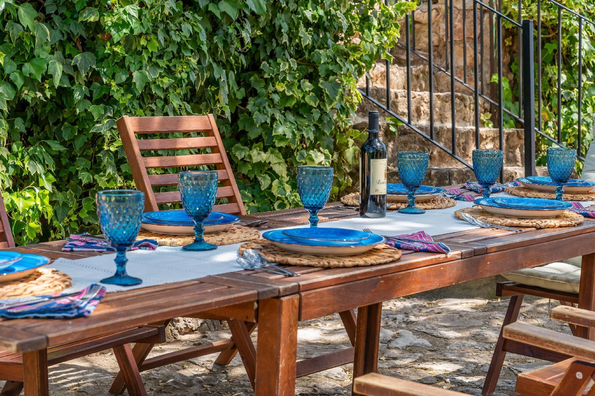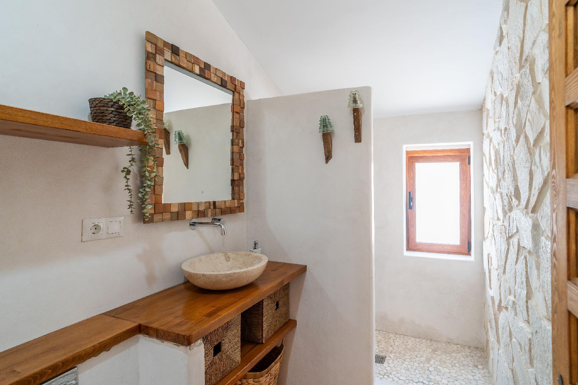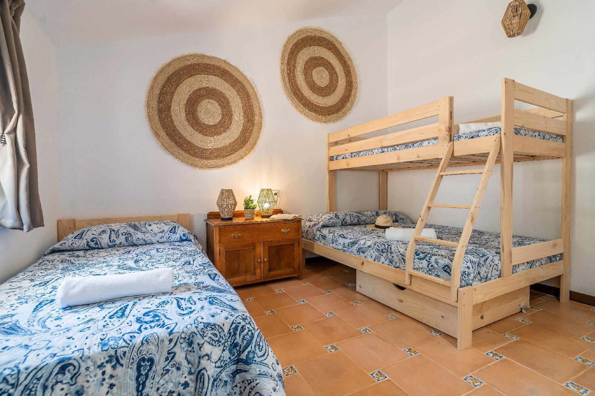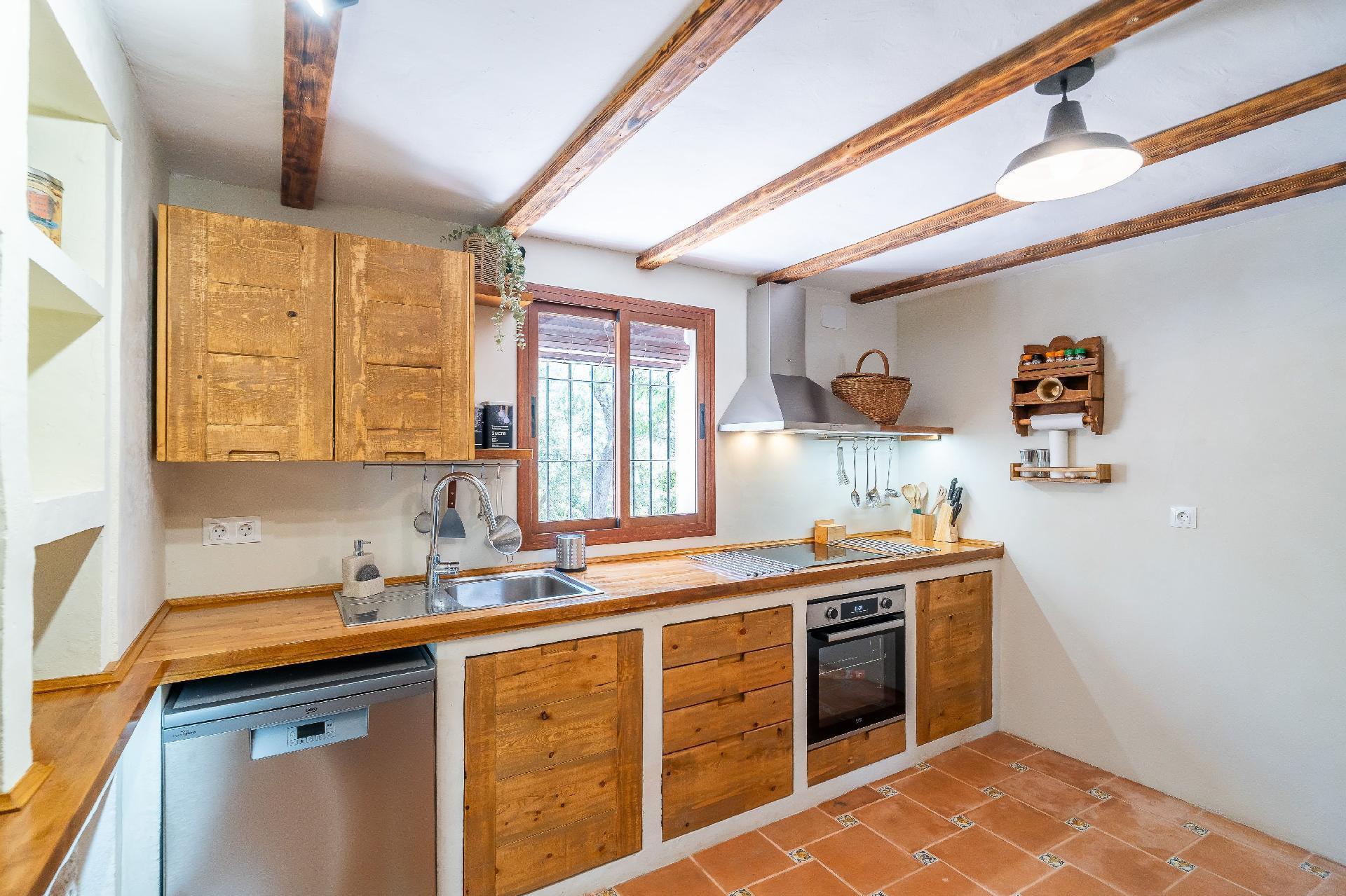 We have restored an old farmhouse trying to respect as much as possible the essence of a country house, but with the comforts that are demanded nowadays. Air conditioning in the 4 bedrooms on the first floor and in the living room, Starlink wifi throughout the property of 100 mgb, 55 inch smart TV, dishwasher, washing machine, dryer, oven, microwave, etc... On the ground floor there is a living room, dining room, kitchen, bathroom and bedroom with 1,35 x1,90 m bed, and on the first floor, 2 double bedrooms, a triple bedroom and a quadruple bedroom.
