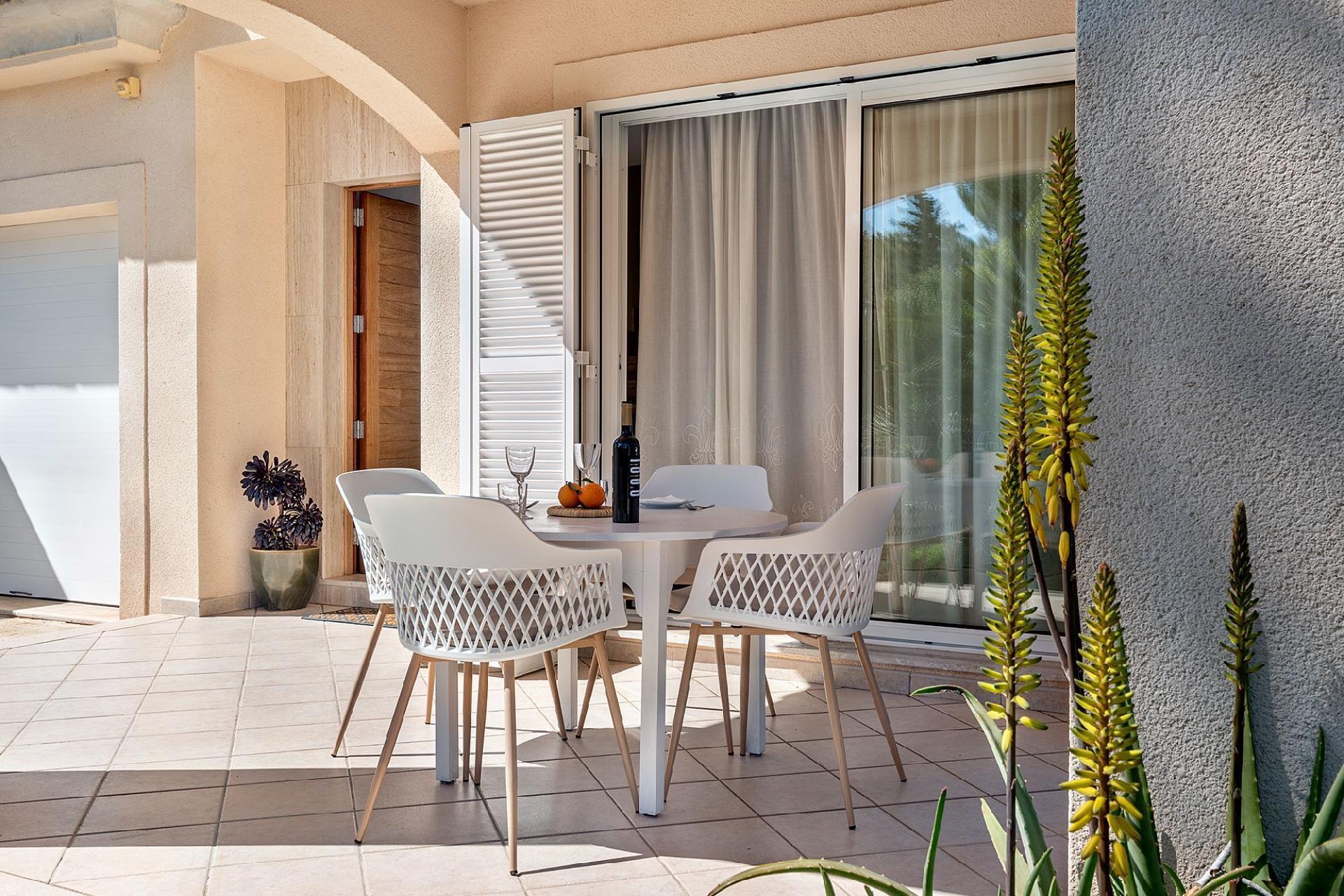 Greeted by a beautiful entrance that will guide us through arranged plants and vases into a spacious and bright living room with large windows and peculiar marine-themed decorations. A lovely green garden with a barbecue will also accompany you to relish unforgettable evenings or relax on one of the sun loungers under the scorching sun.