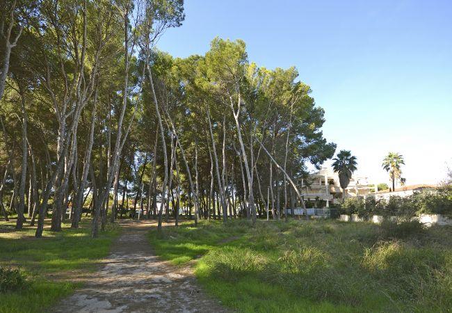 Comfortable porch with partial views of the beach, which leads to a large private garden surrounded by a wonderful pine forest that has direct access to the beach.