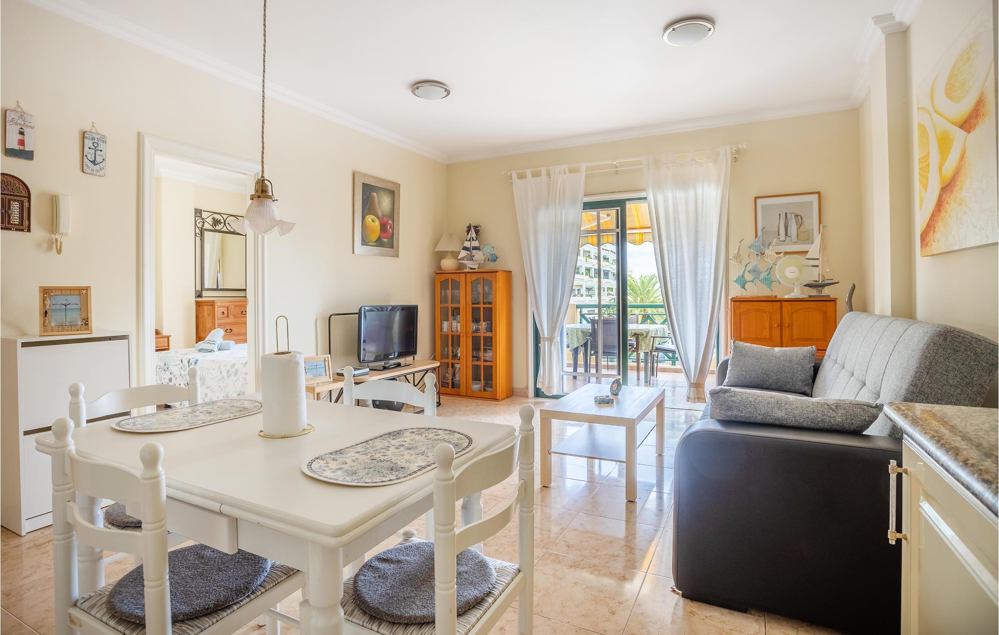 Denne lejlighed på 1. sal ligger i Puerto de la Cruz på øen Tenerife. Med komfortable møbler, indbydende indretning, mange små detaljer og den varme farve på væggene skaber denne bolig en venlig, behagelig atmosfære. Planlæg jeres aktiviteter og udflugter ved spisebordet og tryl lækre retter frem sammen i det store køkken. Måltider kan også nydes på balkonen. Har I brug for lidt skygge, kan I forlænge markiserne. Der er også en indendørs pool, en sauna og en stående vand jacuzzi til fælles brug! I kan hurtigt nå stranden til fods.