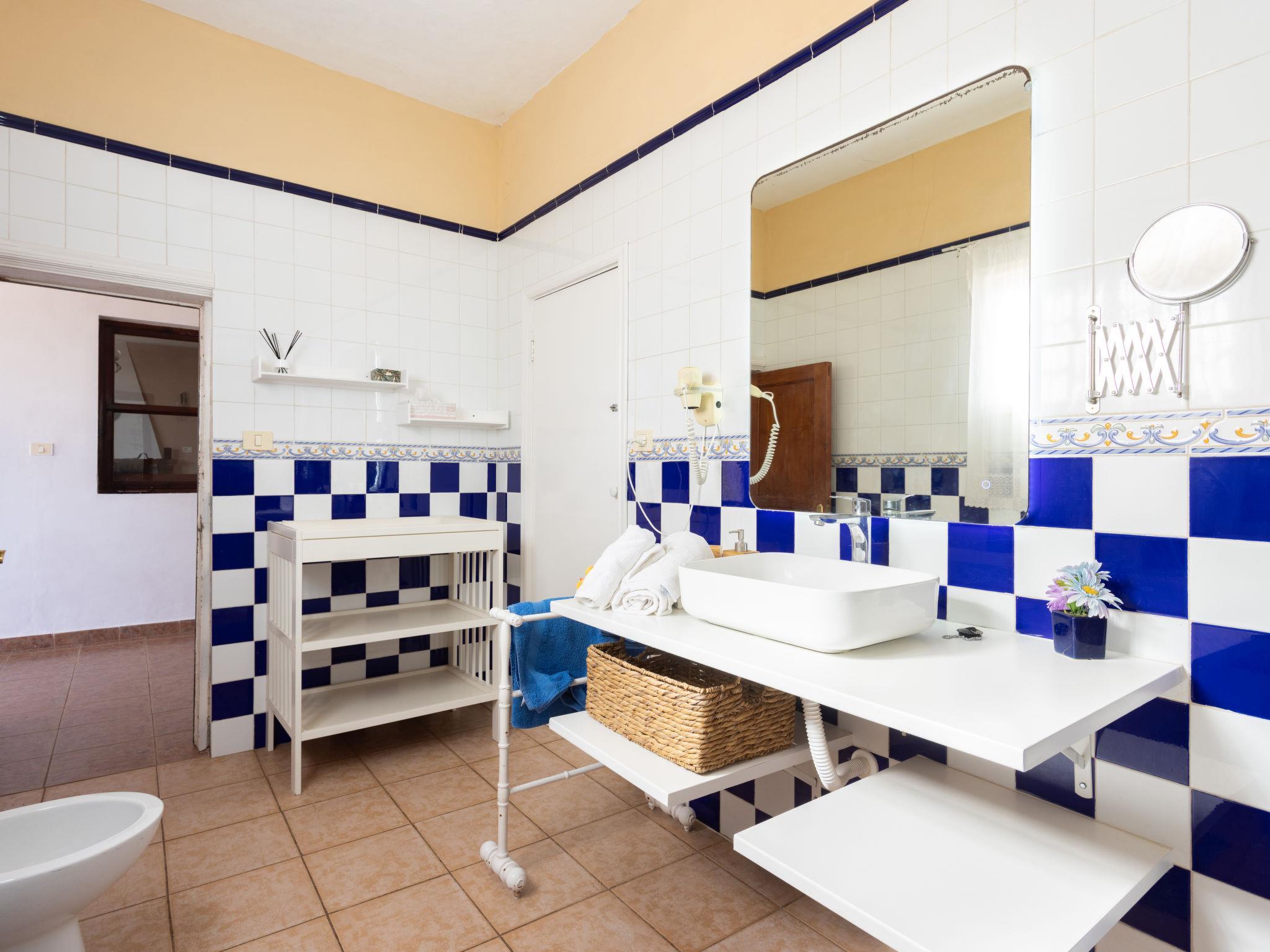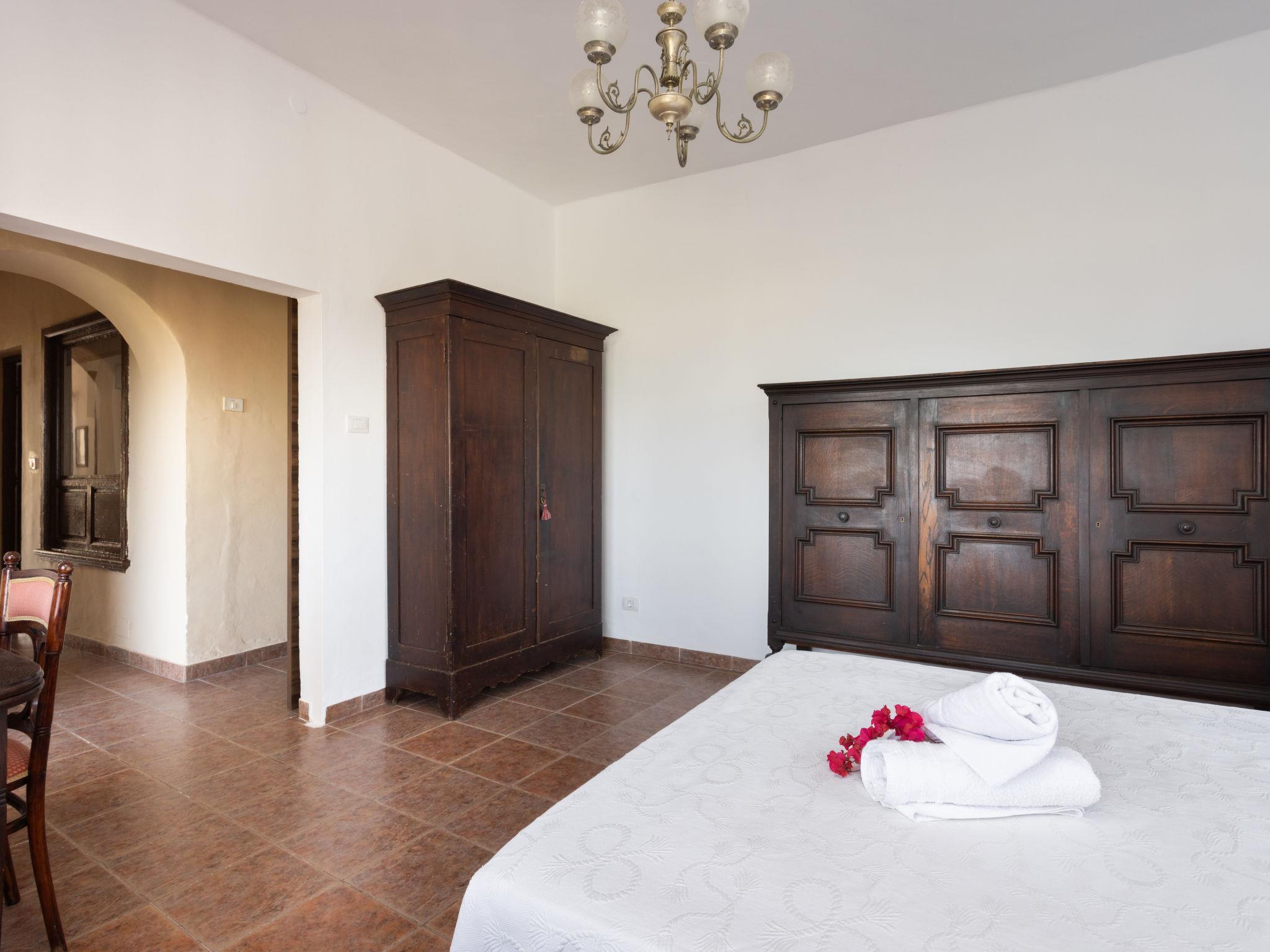 4-room house 200 m2, on the ground floor. Rustic furnishings: living room 25 m2 with rooflight with open-hearth fireplace (only for decoration), satellite TV (flat screen), hi-fi system, DVD and electric heater. 1 room with 2 beds and shower/WC. 1 room with 1 french bed (150 cm), bath/bidet/WC. 1 room with rooflight, without window with 1 french bed (135 cm). Dining room 16 m2 with dining table. Kitchen 15 m2 (oven, 4 ceramic glass hob hotplates, microwave, freezer, electric coffee machine) with dining table. No heating option. Terrace 40 m2, terrace 25 m2. Terrace furniture, barbecue, deck chairs (3). View of the sea and the mountains. Facilities: washing machine, iron, hair dryer. Internet (WiFi, free). Maximum 1 pet/ dog allowed. 2019011510