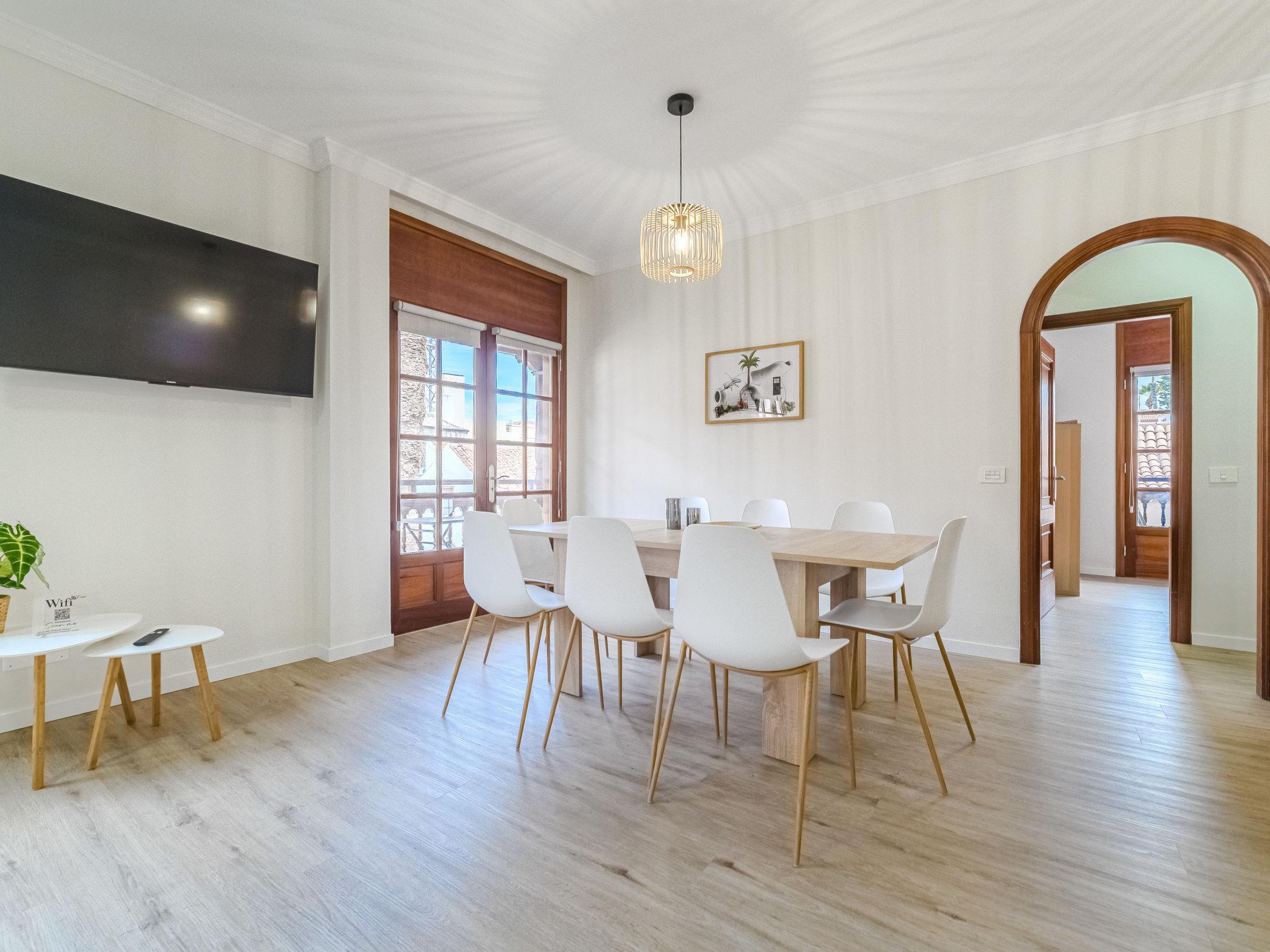 "Yubal IV", 4-room apartment 90 m2 on 3rd floor. Object suitable for 6 adults. Spacious and bright, practical and comfortable furnishings: living/dining room with panoramic window with digital TV and fan. Exit to the balcony. 1 room with 1 french bed (150 cm, length 190 cm), shower/bidet/WC, fan and boiler (60 litres). 1 room with 1 french bed (1 x 150 cm, length 190 cm), fan. 1 room with 2 beds (90 cm, length 190 cm), fan. Kitchen (oven, 4 ceramic glass hob hotplates, toaster, kettle, microwave, electric coffee machine). Shower/bidet/WC. Boiler (60 litres). No heating option. Small balcony. Balcony furniture. View of the resort. Facilities: iron, hair dryer. Internet (WiFi, free). Please note: suitable for families apartment street side. Non-smokers only. Fire extinguisher. VV-38-4-00907079 // Reg. Nr.: ESFCTU0000380090000050320000000000000VV-38-4-00907079