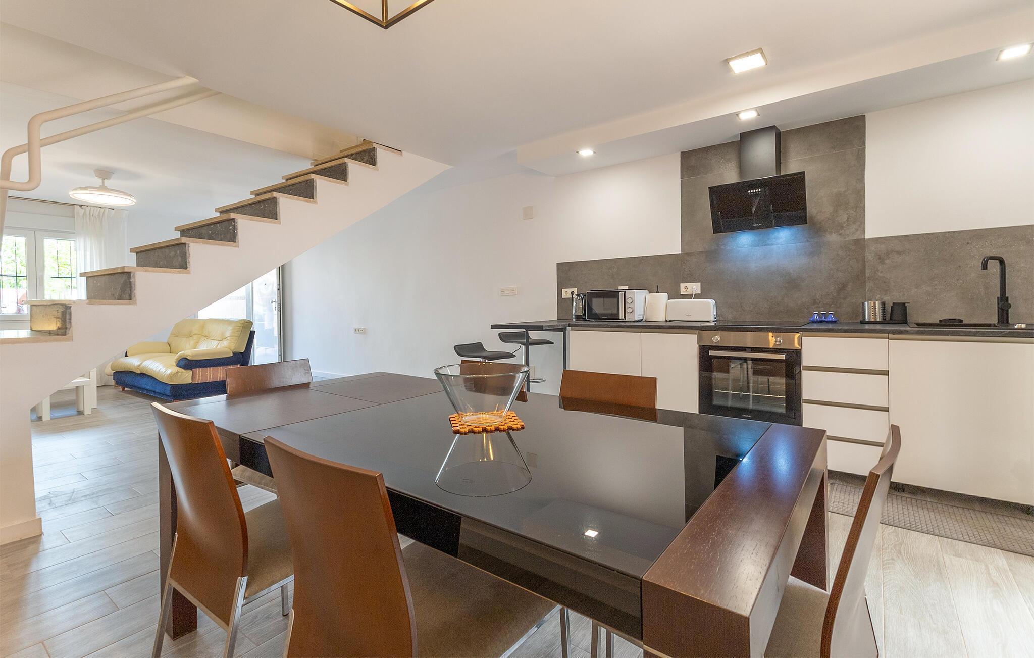 Brug jeres feriehus centrale beliggenhed som base for svømning, udflugter og hyggelige stunder med familien. Sæt jer til rette i stuen med en behagelig sofa og tv. Udnyt den åbne planløsning, der harmonisk kombinerer stue, spisestue og køkken. Tilbered jeres måltider i det moderne køkken og nyd dem ved det store spisebord eller ved baren med barstole. Design jeres tid, som I ønsker, og føl jer hjemme.