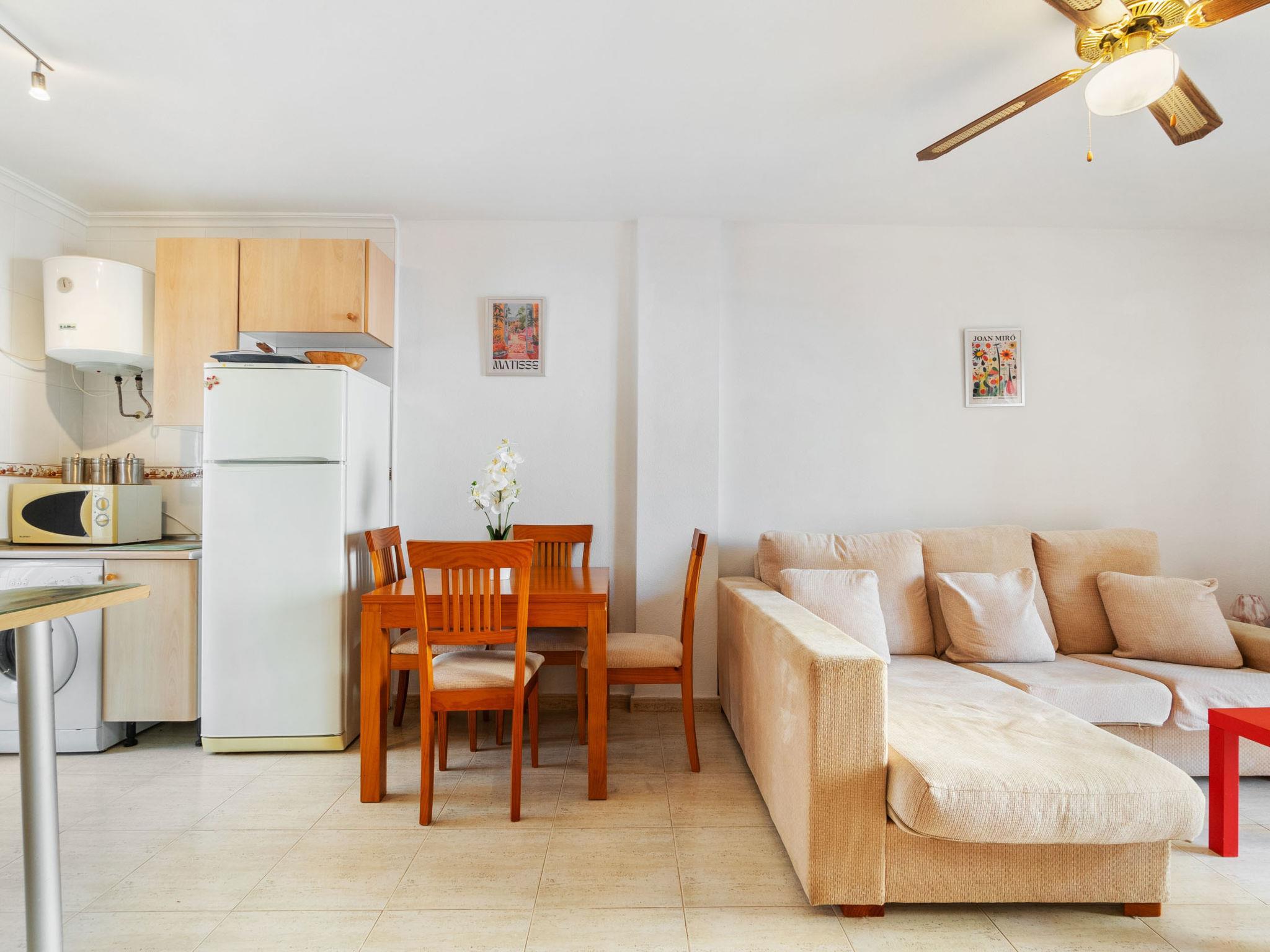 "Residencia del Mar II", 3-room apartment 50 m2. Practical and comfortable furnishings: living/dining room with dining table, digital TV, flat screen and air conditioning. 1 room with 1 french bed (150 cm, length 190 cm), air conditioning and fan. 1 room with 2 beds (90 cm, length 190 cm), fan. Open kitchen (dishwasher, 3 ceramic glass hob hotplates, toaster, microwave, electric coffee machine). Bath/WC. Electric heating. Heating not available in all rooms. 2 terraces. Terrace furniture. Distant view of the sea. Facilities: washing machine, iron, hair dryer. Internet (WiFi, free). Please note: non-smokers only. Maximum 1 pet/ dog allowed. VV.MU.8547-1 // Reg. Nr.: ESFCTU0000300280004188620000000000000000VV.MU.8547-18