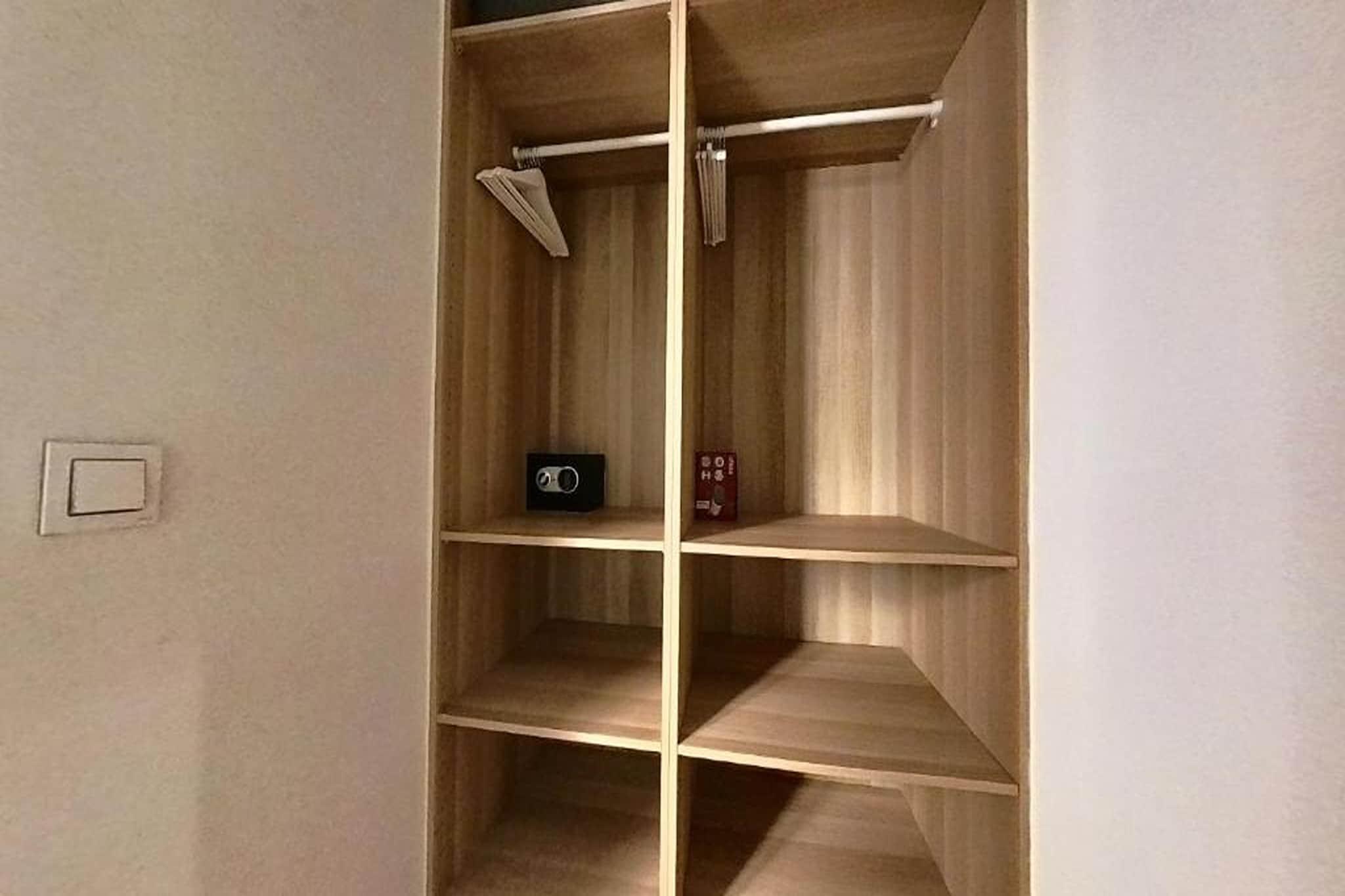 Stueetage: (Indgang (fælles indgang, adgang udefra)(elevator)) På 1. etage: (Indgang , åbent køkken(kogeplade, elkedel, brødrister, emhætte, kaffemaskine, mikrobølgeovn, køle-fryseskab), stue / spisestue(enkeltsovesofa, Fjernsyn(fladskærm, parabol), spisebord, sofahjørne), Soveværelse med badeværelse(dobbeltseng eller 2 enkeltsenge Senge, Fjernsyn(fladskærm), bruser, håndvask, toilet, klimaanlæg, føntørrer), varme(gennem aircondition), klimaanlæg) vaskerum (tørretumbler(deles med andre gæster), vaskemaskine(deles med andre gæster)), parking lot(public), barnestol, strygebræt, strygejern