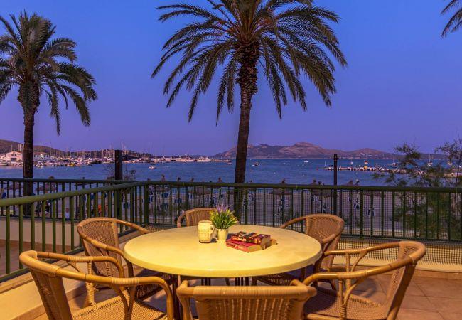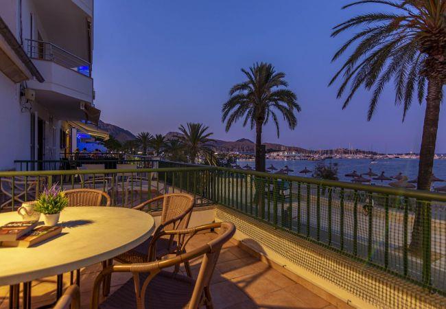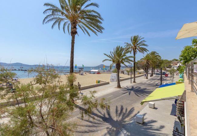 This spacious 3-bedroom apartment, with full air conditioning, occupies an enviable position right opposite the beach in the centre of Puerto Pollensa, offering beautiful views across the stunning Bay of Pollensa and its clear blue waters.