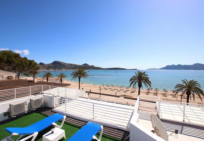 We are happy to offer you this front-line studio located in Puerto Pollensa which has been recently refurbished in a very modern style, it has a lovely balcony with amazing views towards the Pollensa bay and the beach.