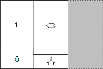 Opholdsstue/køkken 20m2 - 2 Sovepladser. (Sofa, madras eller lignende).