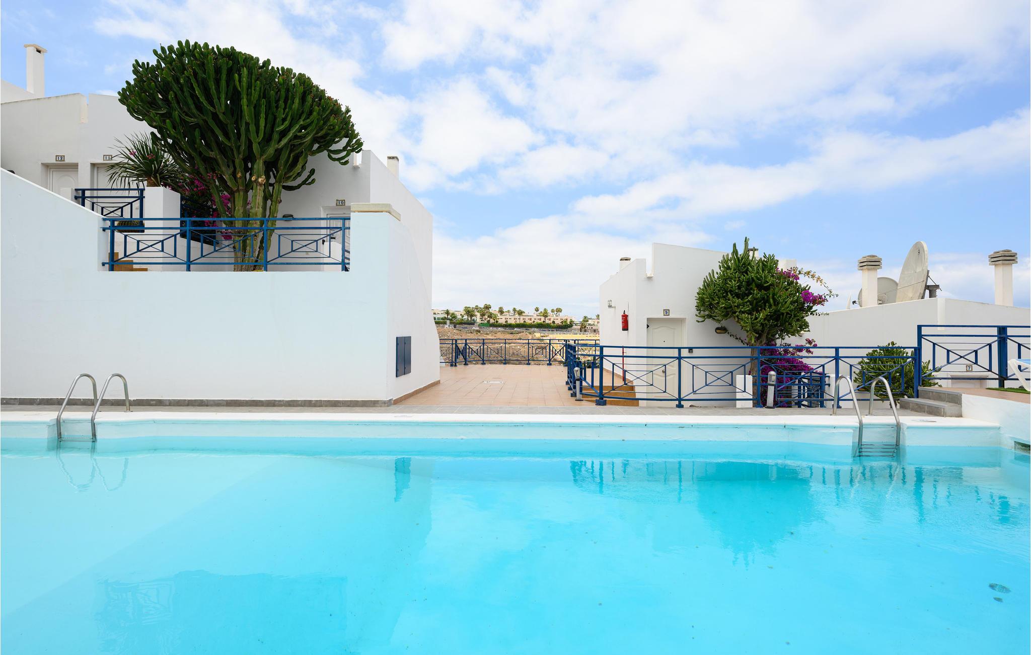 Komfortabel lejlighed med havudsigt og fælles pool. Denne ferielejlighed ligger i det sydvestlige hjørne af Gran Canaria, nær kysten. Det komfortabelt indrettede interiør strækker sig over to etager og gør et lyst og venligt indtryk. Denne lejlighed er ideel til par eller familier, der planlægger en afslappende ferie. Nyd en lækker morgenmad på den store terrasse om morgenen, mens du får inspiration til de kommende aktiviteter. Her finder du senere det perfekte sted til en stemningsfuld afslutning på dagen med udsigt til solnedgangen. Oplev øens mangfoldige natur på vandreture og besøg charmerende landsbyer og kystbyer på dagsture. Tilbring solrige dage på sandstrandene med at svømme og slappe af og nyde livet. En vidunderlig pause venter dig i denne ferielejlighed.