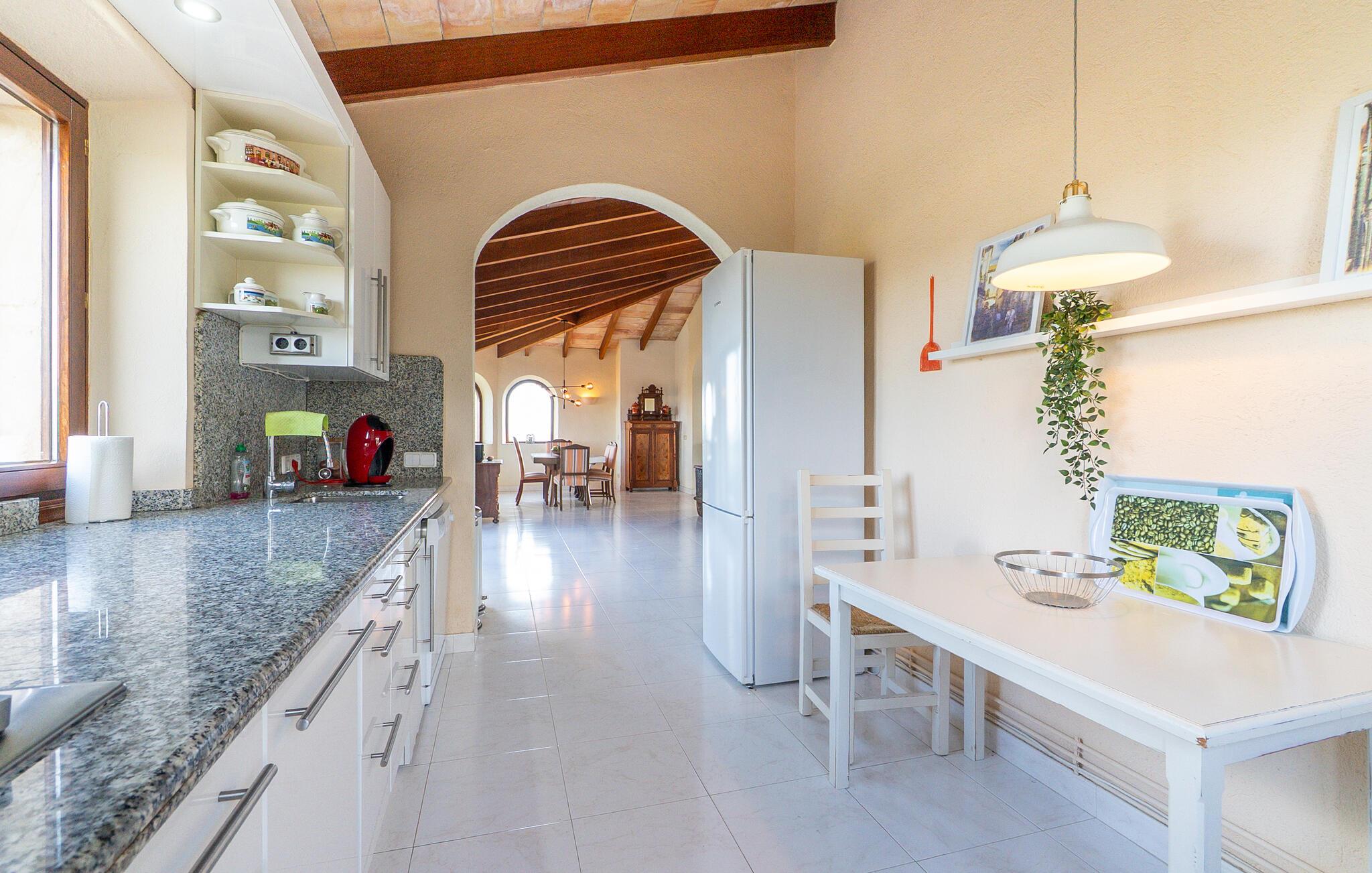 Fincaen "Puig des Corb" ligger på en rummelig naturgrund og tilbyder absolut privatliv. En stor saltvandspool lægger op til at slappe af, mens fire komfortable soveværelser, hver udstyret med ventilatorer, og fem badeværelser sikrer maksimal boligkomfort og privatliv. Med to fuldt udstyrede køkkener og en moderne gasgrill er fincaen ideel til selvforplejning og fælles madlavningsaftener. Den spektakulære 360° panoramaudsigt fra bjerget over den omkringliggende natur samt den behagelige sommerbrise skaber en særlig atmosfære, der gør ethvert ophold til en uforglemmelig oplevelse.