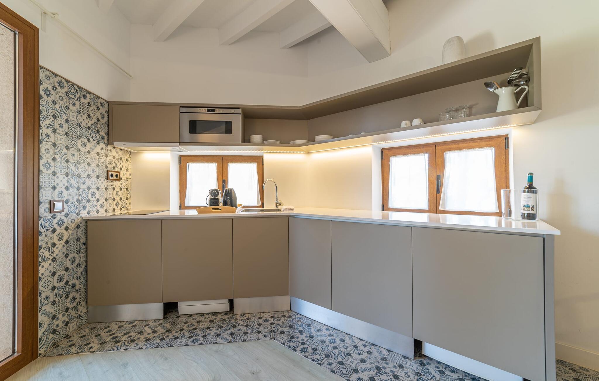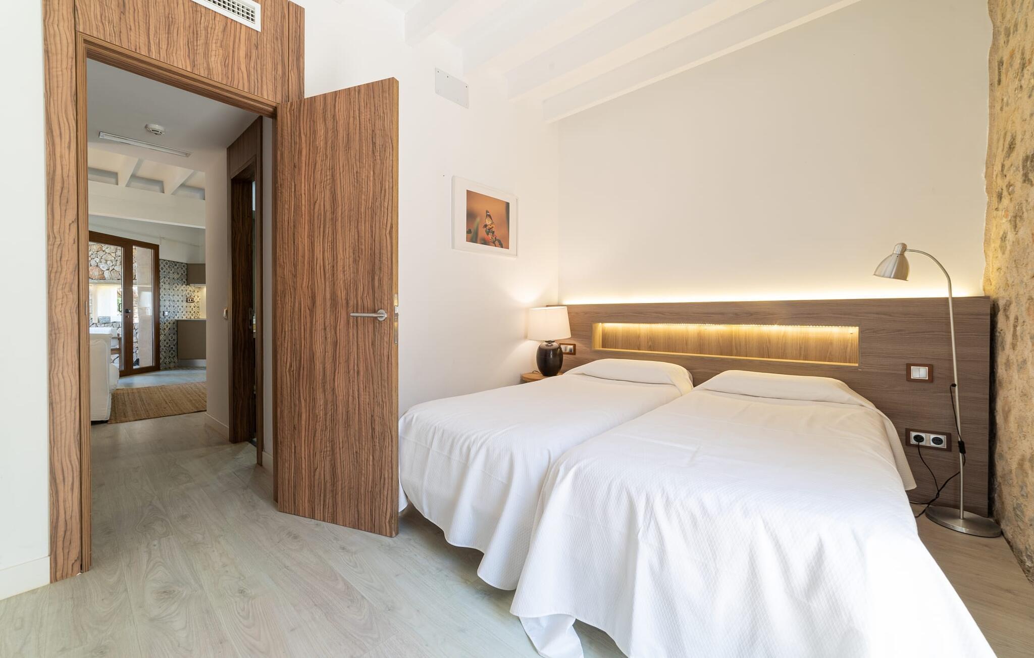 På dette familiedrevne resort vil du blive budt velkommen med den varme gæstfrihed, der er typisk for Mallorca. Den populære Pula golfbane, grundlagt i 1995 og redesignet af Jose Maria Olazabal i 2006, har været vært for meget vigtige begivenheder og har en stor driving range med to niveauer, hvoraf den ene er overdækket, samt to putting greens og en pitching green. En god service: Der er 20 % greenfee-rabat på den officielle pris for den tilsvarende sæson. Et vidunderligt smukt, velholdt anlæg indbyder ikke kun til golf, men også til omfattende afslapning udendørs. En absolut attraktion er den 10 meter lange pool omgivet af en storslået træpopulation med dens omgivende terrasse, som er udstyret med komfortable liggestole. Du kan også tilbringe afslappende timer på den private terrasse med en smuk udsigt. Den gamle herregård fra 1581, som er blevet fuldstændig moderniseret, rummer nutidens faciliteter såsom overnatningsstedet og country club. Efter en dag med golf kan du slappe af i resortets sauna, fitnessområde og indendørs pool, og en massageservice er også tilgængelig, hvis det kræves. I den integrerede restaurant "S'era de Pula" kan du nyde ikke kun det meget gode middelhavskøkken, men også den elegante, rustikke stil og den smukke udsigt over golfbanen. Lejligheden "Pula Golf Resort 1" imponerer med sin trendy atmosfære: hvide vægge, moderne gulve og klinker i kombination med æstetiske møbler skaber straks en moderne ø-følelse. Udstyret byder på en lang række muligheder for et værdigt indendørs ophold og selvfølgelig også for selvstændig selvforsørgelse på ferien. De bor i stueetagen og har tekøkken, spiseplads og opholdsstue. Du finder en god nats søvn i det stilfuldt indrettede soveværelse med dobbeltseng og på sovesofaen. Det stilfulde badeværelse har bruseniche. Meget behagelig: Takket være det varme-kolde klimaanlæg kan du nyde perfekte indendørstemperaturer året rundt. Som en særlig ekstra, er der også en daglig rengøring, som er gratis. Vores konklusion: Denne lejlighed på Mallorca tilbyder en enestående beliggenhed og kombinerer den med en meget bred vifte af faciliteter og wellness-tilbud! Pula golfbanen ligger i et af de smukkeste områder på Mallorca. Den moderne lejlighed "Pula Golf Resort 1" med en stor fælles pool og have samt et smukt udendørs landskab og privat terrasse ligger på den østlige del af øen direkte på golfbanen. De ligger mellem Cala Millor, Costa dels Pins og Capdepera og har på grund af deres nærhed til vejen fremragende shopping- og spisemuligheder i de omkringliggende landsbyer. Beliggenheden sikrer også, at du kan nå smukke bystrande som Canyamel eller Costa dels Pins på en behagelig køretid på kun 5-10 minutter. Dette er et Fincallorca feriehus.