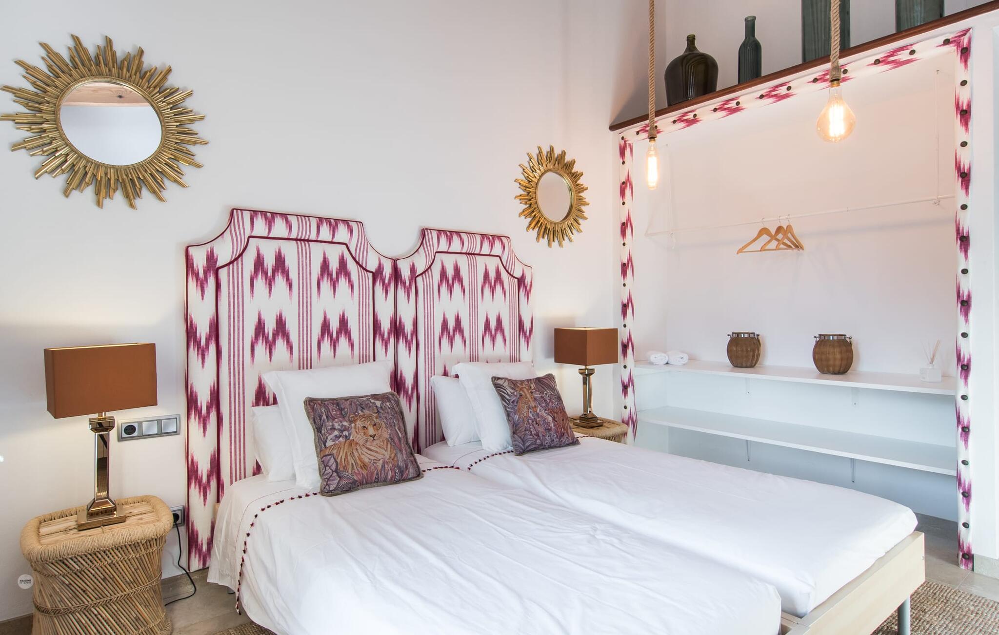 Med sit stolte navn afslører "Pula One" allerede lidt om det unikke ved denne ejendom, som fortsætter med at imponere os på trods af vores mange års erfaring. Skjult af fyrretræer (passende da den nærmeste by er Costa dels Pins), glæder villaen besøgende med sit overdådigt designede udendørsområde. Det bidrager den helt afsidesliggende pool dekoreret med blå mosaikfliser. Det er indrammet af et omgivende loungeområde, hvor luksuriøse hvilestole kan placeres i den naturlige skygge eller under parasollerne. Om sommeren inviterer de to daybeds i Bali-stil jer ikke kun til en middagssiesta, men tilbyder også et attraktivt sted for en mild sommernat under stjernehimlen. Terrassen er direkte over poolområdet. Kurvemøblerne fremstår ved første øjekast ru, men er blevet elegant sammensat med delikate, komfortable udendørs metalsofaer. De to siddepladser og spisebordet er indrettet i naturlige farver og materialer. Selv parasollen er lavet af luftige sejl, som ikke kun giver skygge, men også forbinder hele opholdsrummet med verandaen. Dette værelse afslører det enkle ønske om at leve af høj kvalitet! Det detaljerede design får vores hjerter til at banke hurtigere – det gælder uden begrænsninger både ude og inde. Lyse, subtile farver som varme brune og beige toner samt naturlige materialer som raffia, træ og flet kombineres for at skabe en smagfuld indretningsstil. De komfortable sofaer har mallorcanske elementer som Teixit de Lliggos - et lærred med et mønster, der minder om flimrende flammer. På en hvid overflade trykt med den traditionelle farve blå giver de opholdsområdet en maritim lethed. Den tilstødende spiseplads blev placeret foran gulv-til-loft vindueselementerne ud mod terrassen. Det fuldt udstyrede, stengrå landhuskøkken fortsætter den moderne komfort, som I ikke vil undvære på ferien (du kan selvfølgelig også supplere jeres måltider med lækkerier fra grillen). Apropos komfort: Det gælder også de tre soveværelser, som suppleres af i alt tre trendy badeværelser med bruseniche – så I nyder godt af absolut privatliv, selvom I rejser med en anden familie. Omhyggeligt udvalgt tilbehør som lamper, spejle og billeder i fototapetstil fuldender det udtryksfulde ensemble. Hos "Pula One" vil selv designelskere få noget for pengene, når det kommer til indretningen – men det er bedst at se selv. Den østlige del af øen, som også omfatter den velhavende villaby Costa dels Pins, er præget af et fascinerende samspil mellem (delvist... uberørte) sandstrande og den blide bjergkæde Serra de Llevantes, der ikke hæver sig over 600 m. De bølgende bakker adskiller de smukke byer som Costa del Pins og Canyamel. Takket være dens beliggenhed på den let hørbare landevej, kan I hurtigt nå de omkringliggende små byer, som hver især har sin egen charme: middelalderens Artà med sin fæstning, gågade og gode restauranter; den lige så ærværdige Capdepera med sit slot og panoramaudsigt; og den livlige kystby Cala Ratjada. Vandsport, svømning, golf på en af de omkringliggende premium-baner eller vandrestier langs kystbyerne byder på en masse variation i denne naturskønne region. Den inspirerende designervilla "Pula One" med stor pool, have og smukt udendørs landskab ligger på den østlige del af øen. Den smukke ejendom er beliggende mellem Cala Millor, Costa dels Pins og Capdepera. De omkringliggende byer byder på fremragende shoppingmuligheder – og glem ikke at prøve nogle af de gode restauranter. Den kystnære beliggenhed betyder, at I kan nå smukke bystrande som Canyamel eller Costa dels Pins på kun 5-10 minutter i bil.