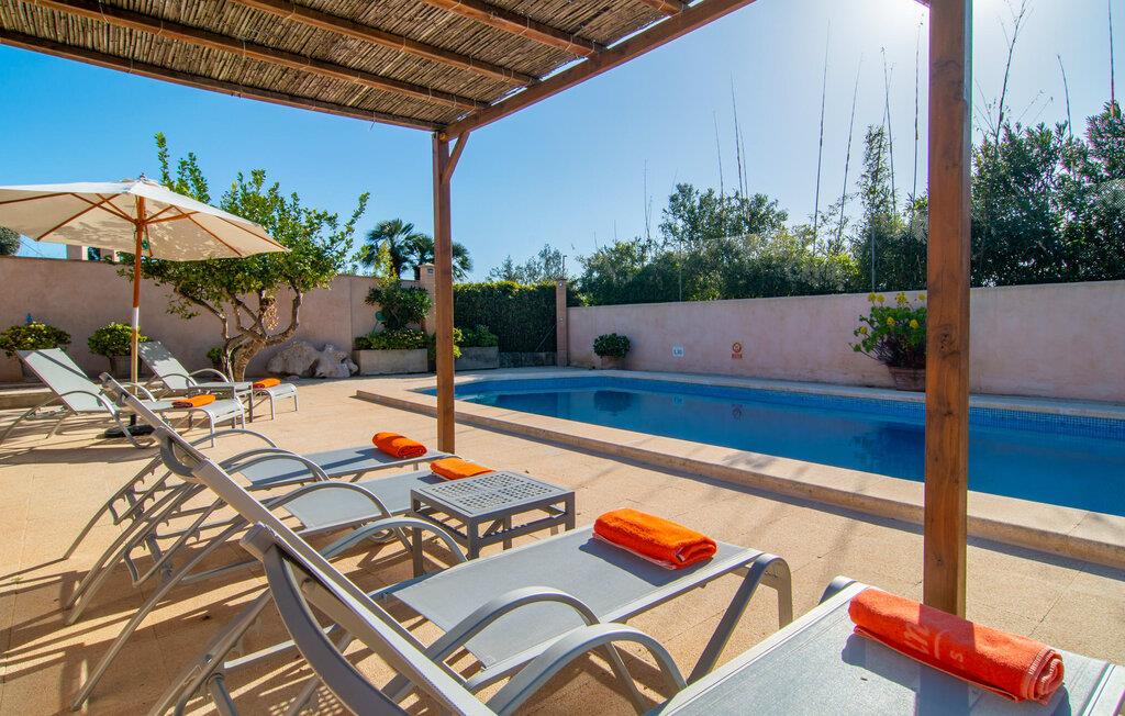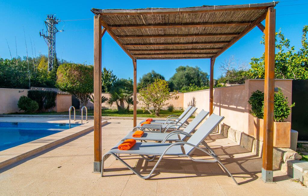 Denne vidunderlige rustikke og samtidig moderne finca i det østlige Mallorca imponerer ikke kun med sin familievenlige indretning, men også med sin charmerende landstedskarakter, som er tydeligt synlig både ude og inde. Det betyder, at feriehuset, der ligger vidunderligt ugeneret med mallorcansk bondegårdsflair, passer særligt godt ind i denne kystregion, som imponerer med sit blidt bakkede grønne landskab. Fincaen er omgivet af talrige træer og en frugthave. Samtidig byder det private poolområde med en omgivende terrasse på adskillige liggestole. Nogle af dem er beskyttet af en stilfuld pergola eller parasol. Der er også en børnegynge til rådighed for yngre besøgende, så de kan få aktiv underholdning. Der er behagelige udendørs siddepladser ved muret grill med integreret udekøkken. I kan nyde en vidunderlig udsigt fra den overdækkede altan med yderligere spiseplads på tagterrassen på første sal. Derfra har I direkte adgang til den rummelige stue med hyggelig pejs og åben spiseplads. Møblerne i den passende landhusstil afspejler den vellykkede symbiose af tradition og modernitet, som kun findes i fincaer på Mallorca. I det fuldt udstyrede køkken med en kogeø er det en fornøjelse at tilberede måltider sammen - for på en eller anden måde er det en del af en ferie at tilberede mad i en venlig atmosfære (selvfølgelig kan I inkludere grillen her). De hyggelige møbler med bløde farver skaber en behagelig atmosfære. Der er plads nok til op til syv personer og to babyer, hvilket gør fincaen ideel til en ferie med to familier. På stueplan på øverste etage er der et soveværelse med dobbeltseng med eget badeværelse og et andet rummeligt badeværelse. Yderligere tre soveværelser - to dobbeltværelser og et enkelt - er placeret i stueetagen og kan nås via en intern trappe fra opholdsstuen i åbent plan, ligesom et tredje badeværelse med badekar. Pula Viñas – dette behagelige navn resonerer med intensiteten af de endemiske vine, som I bestemt bør prøve under jeres ophold i dette fantastiske feriehus med pool. Denne rustikke, omfattende renoverede feriefinca imponerer med sin ejendom med en tilstødende frugthave, vidunderlige udendørs siddepladser og en privat pool. Det er tæt på den akustisk mærkbare landevej, der fører langs Mallorcas østkyst til Cala Ratjada. De smukke landsbyer Son Servera eller Costa del Pins kan nås på cirka 5 minutter og byder på gode shoppingmuligheder. En fin sandstrand, også kaldet Sa Marjal, venter på jer i Costa des Pins.