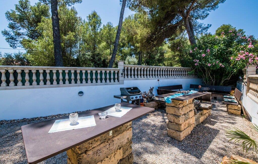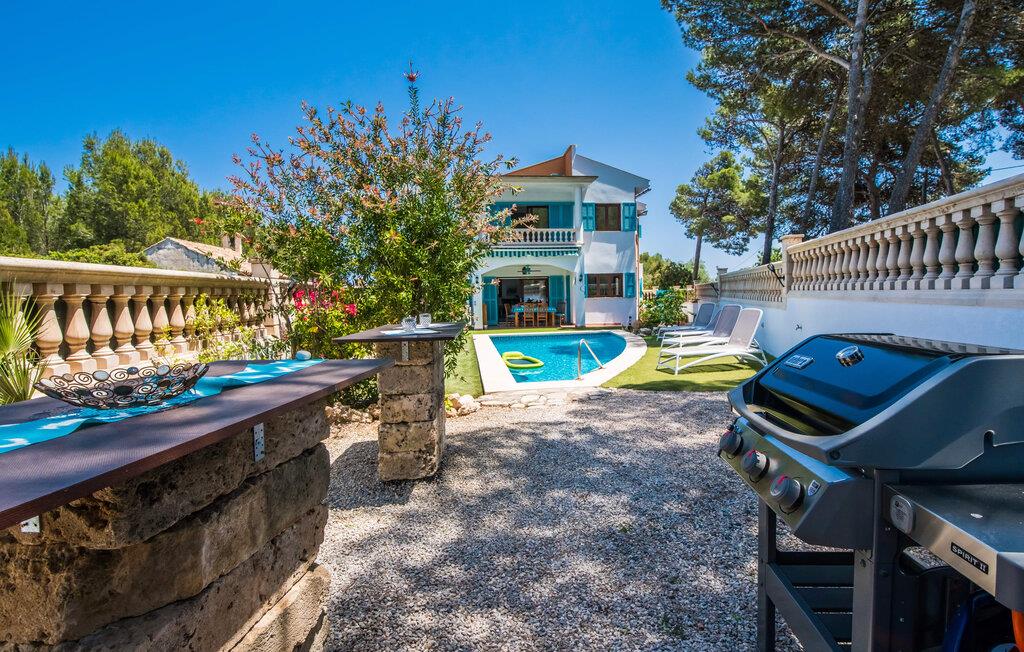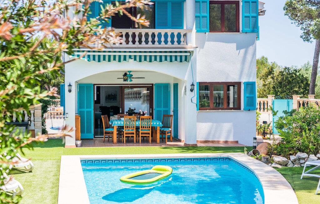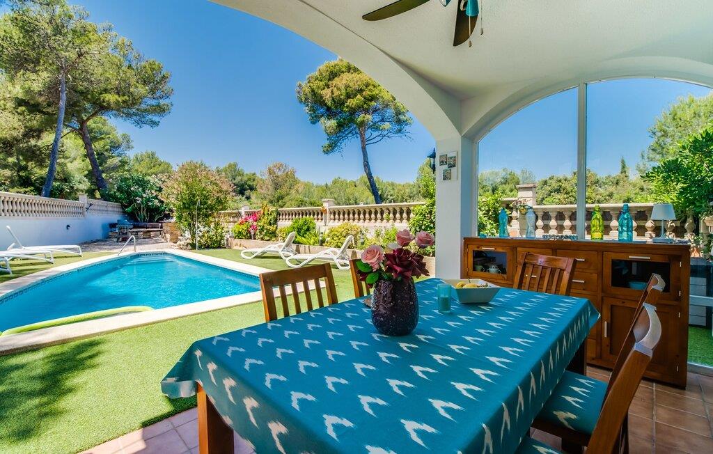 Placeringen er fantastisk: så tæt på havet, at I endda kan se det fra balkonen; En gåtur til vandet tager kun et par minutter. Villaen "Punta Blava", bygget i et typisk enfamilies boligområde, er indrettet i hvidt og har skodder, der skinner i samme turkisblå som poolen i haven. Huset på Mallorcas østkyst har en hyggelig maritim atmosfære og byder på masser af komfort, især for familier med børn. Højdepunkter: swimmingpoolen med kunstgræs og liggestole omkring, den overdækkede terrasse og grillpladsen med en paellapande. Der er en gynge i forhaven til de mindste. Indretningen er moderne, med masser af hvidt, kombineret med forskellige naturtoner og mørkt træ, som umiddelbart får jer til at føle jer godt tilpas. I stueplan er der åben opholds- og spiseafdeling samt veludstyret køkken med direkte adgang til udearealet. Også i stueetagen er der et soveværelse og et moderne badeværelse. En trappe fører til første sal med to soveværelser, hver med eget badeværelse. Ved havet: Dette er ikke noget problem selv med små børn, hvis I tilbringer jeres ferie i villaen "Punta Blava". Kun omkring 100 m adskiller jer fra kysten. Det smukke hus med turkise skodder og swimmingpool ligger på en lang grund i en urbanisering på øens østkyst. Cala Ratjada ligger mindre end 4 km derfra i bil. De nærmeste strande som Font de Sa Cala og Platja de Son Moll ligger henholdsvis kun 1,4 km og 2 km væk. En lille bugt med adgang til havet og en lille strand ligger lige udenfor jeres dør.
