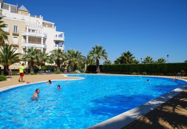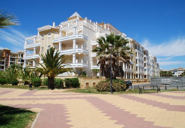 Comfortable apartment of 80 m² and is spacious, located in beach, It has views to the sea and to the river leading to the Marina.