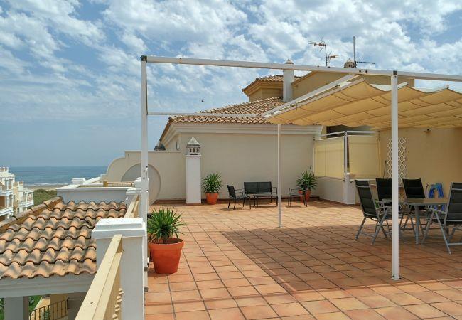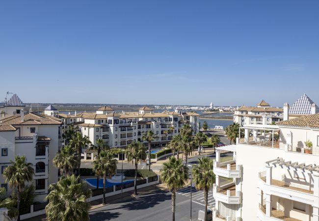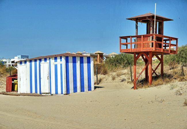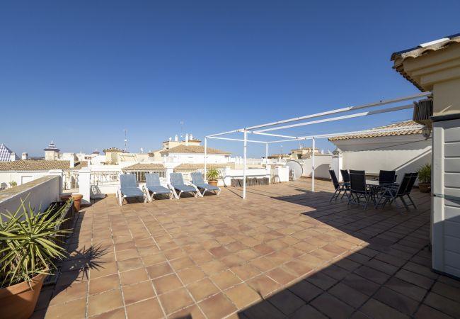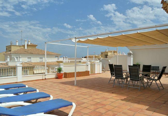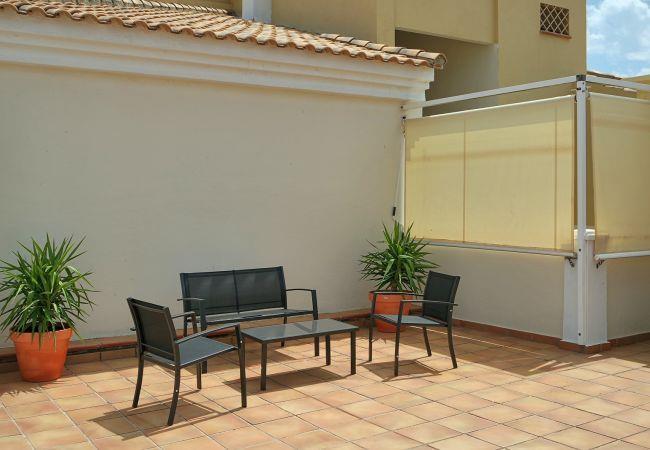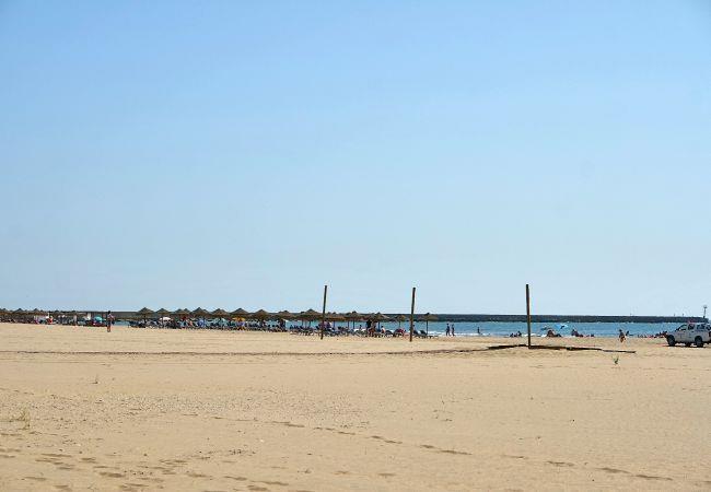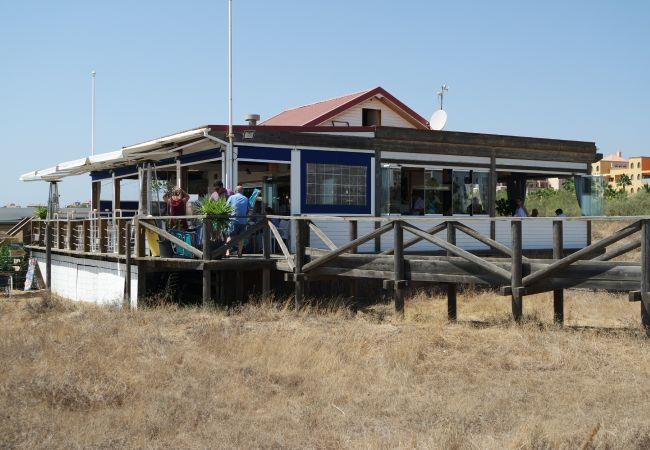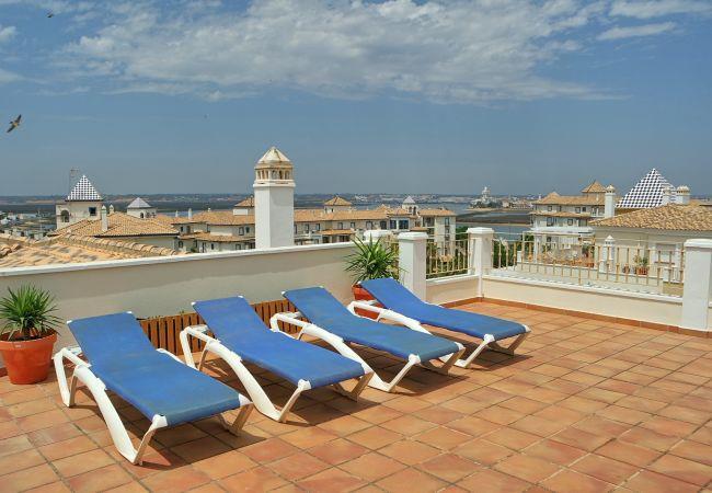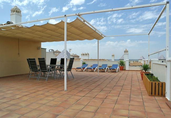 Homelike apartment of 80 m² offers a balcony leading from the living room with a spiral staircase leading to a large terrace on the roof. Located at the beach, It has views to the beach and across to Isla Cristina.