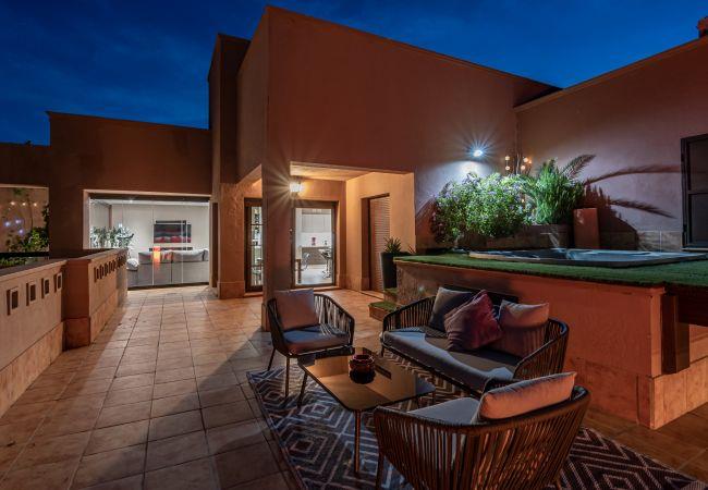 The accommodation is equipped with the following items: lift, garden, garden furniture, fenced garden, 200 m² terrace, barbecue, iron, internet (Wi-Fi), hair dryer, childrens area, paddle tennis court, air conditioning (hot/cold), air conditioning throughout the house, communal+children's swimming pool, covered parking in the same building, 1 TV.