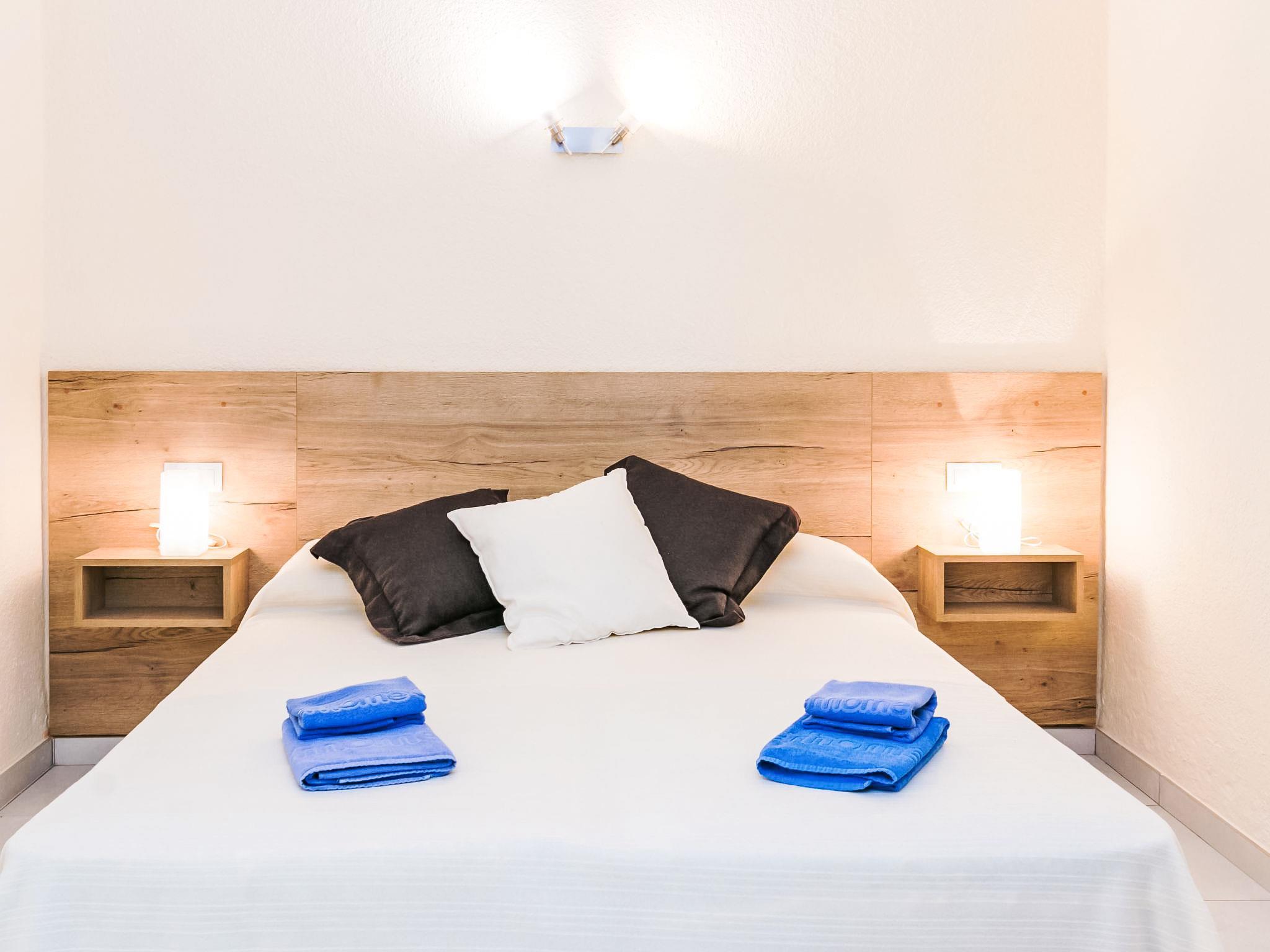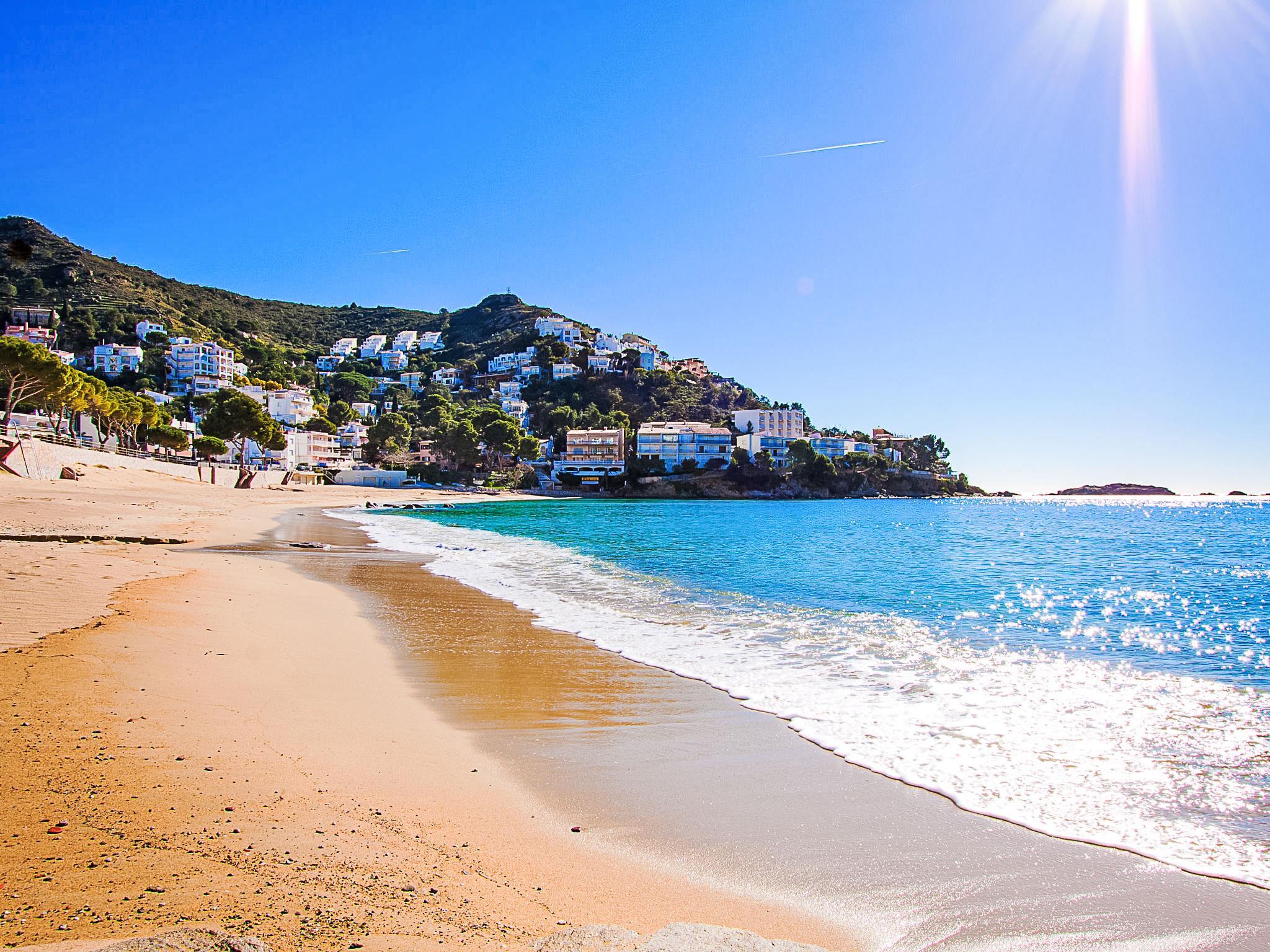 Canyelles Petites: Cosy, simple resort "Velazquez". Canyelles Petites, in the resort 4 km from the centre of Roses, in a quiet, sunny position on a slope, from the sea, 60 m from the beach, road to cross. For shared use: swimming pool angular (10 x 4 m, depth 80 - 180 cm, seasonal availability: 12.May. - 30.Sep.) with internal staircase. In the house: WiFi. Shop 150 m, grocery, supermarket 150 m, restaurant 100 m, bar 20 m, café, pedestrian zone 30 m, bus stop 100 m, sandy beach "Canyelles Petites" 60 m, swimming bay 60 m. Sports harbour 3 km, golf course (18 hole) 24 km, surf school 3 km, sailing school 3 km, tennis 5 km, riding stable 10 km, sports centre 3.5 km. Nearby attractions: Parque Acuático Aquabrava Roses 6 km, Skydive y túnel del viento Empuriabrava 11 km, Cadaqués 18 km, Castillo y casino de Perelada 25 km, Monasterio de Sant Pere de Rodes 24 km, Museo Dalí Figueres 24 km. Please note: the keys‘ handover takes place by the agency Interhome in Roses. Additional accommodations can be booked. The apartments are built on terraced land and set on a hillside. The apartments' terraces are intercommunicated so there is little privacy. Access to the individual apartments and the swimming pool down some steps. The apartments are situated 60 m from the Canyelles Petites beach, one of the most beautiful beaches in the Costa Brava. Please note: The residence requests no noise after 23:00 hrs. Exception: ES9410.383.1, with terrace and private entrance. Available private garage in all apartments except the es9410.383.3 Pease note : apartments without heating.