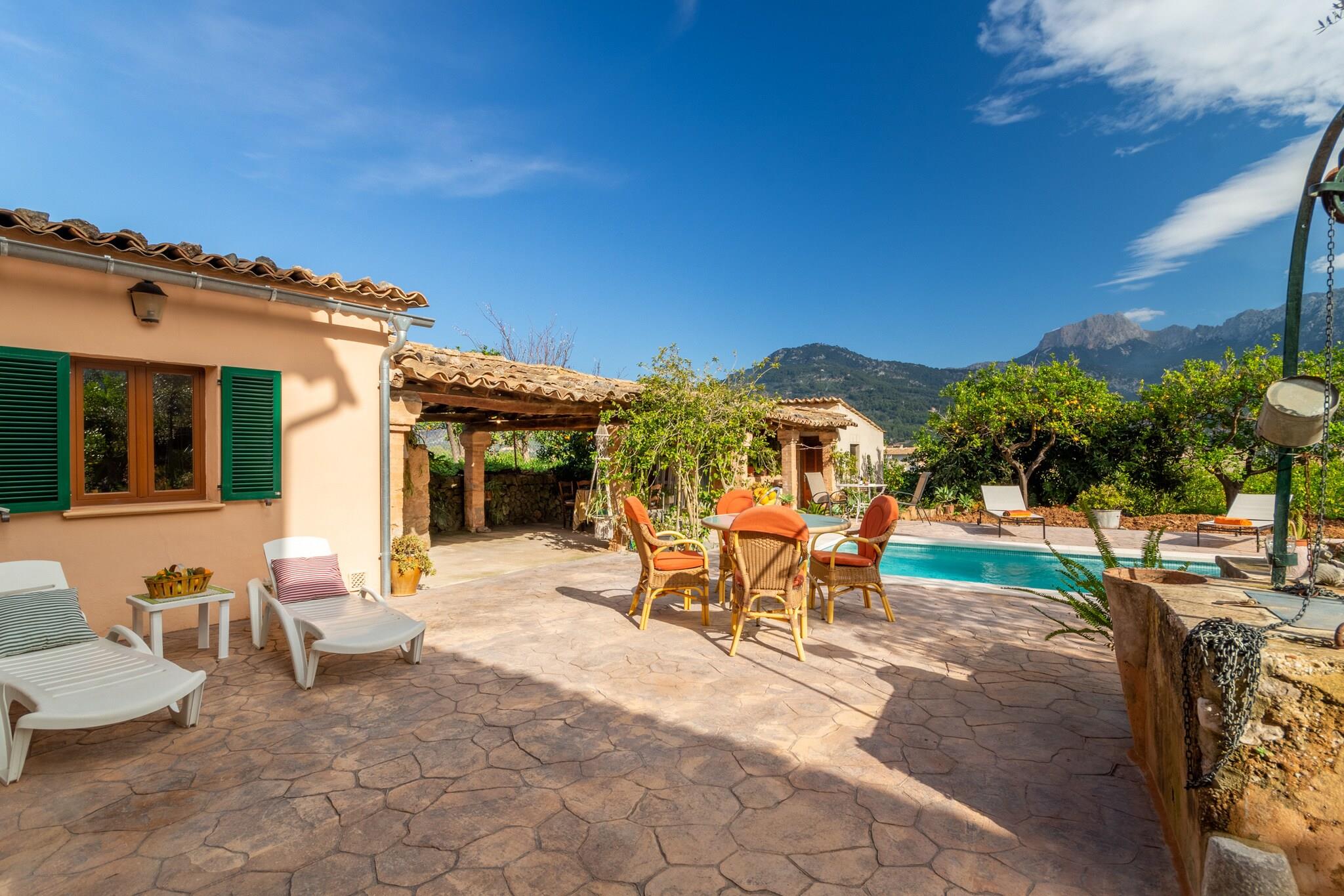 Dette dejlige landsted - Sa Frontera i Sóller er det perfekte tilflugtssted for grupper på op til seks personer. Med tre hyggelige dobbeltværelser og to velindrettede badeværelser byder huset på både komfort og plads til afslapning. Der er aircondition og gratis WiFi overalt, hvilket sikrer et behageligt ophold. Udenfor kan gæsterne nyde den forfriskende saltvandspool med en fantastisk udsigt over den omkringliggende natur. Ejendommen har også en charmerende have med grillplads, selvom den ikke er kæledyrsvenlig, hvilket garanterer et fredeligt miljø for alle gæster. Beliggende i det rolige landskab i Sóller, er dette landsted kun en kort køretur fra den berømte Platja D'en Repic-strand, hvor du kan nyde gyldent sand og krystalklart vand. Landsbyen Sóller med sine brostensbelagte gader, lokale markeder og hyggelige caféer byder på en rig kulturoplevelse. Udforsk den historiske San Bartolomeu-kirke eller gå en tur gennem de duftende appelsinlunde. For et bredere udvalg af restauranter, shopping og kulturelle aktiviteter er den pulserende by Palma kun en kort køretur væk. Indenfor blander landstedet rustik charme med moderne bekvemmeligheder. Det fuldt udstyrede køkken sikrer, at gæsterne kan tilberede lækre måltider, mens de komfortable opholdsområder giver den perfekte plads til at slappe af. Badeværelserne er moderne og stilfulde, hvilket giver ekstra komfort under dit ophold. Den store have med det frodige grønne område byder på masser af plads til udendørs afslapning, og den overdækkede grillplads med stenovn tilføjer et strejf af ægthed til dine al fresco spiseoplevelser. Lejelicensnummeret er ETV/9391