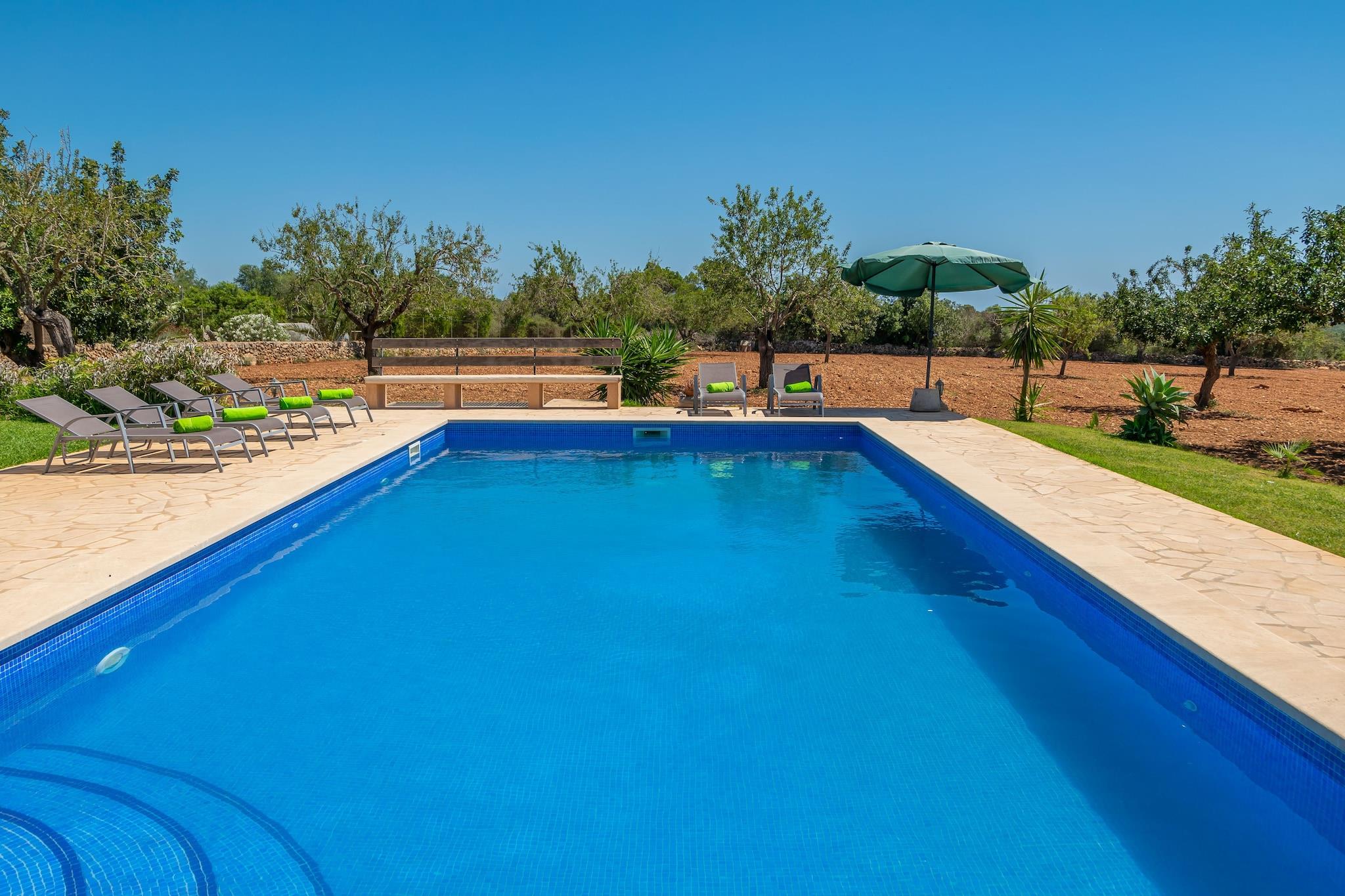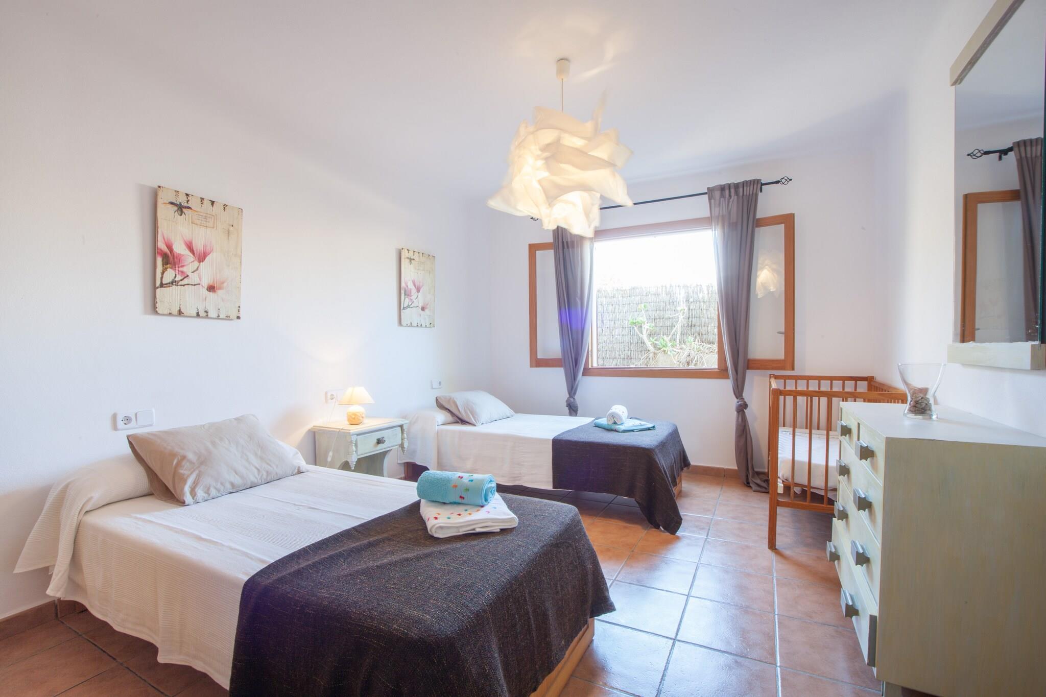 Oplev en uforglemmelig ferie i denne smukt vedligeholdte villa, der byder på en fantastisk 10x5 meter klorpool, der spænder fra 1 til 1,70 meter dyb. Poolområdet, der er udstyret med komfortable liggestole, er omgivet af frodige haver og frugttræer, der byder på sæsonbestemte lækkerier som blommer, mandler og johannesbrødbønner. Nyd aftenen på verandaen med en grill, perfekt til at slappe af med god mad og et glas vin i fuldstændig privatliv. Dette rummelige to-etagers hjem har en lys stue med satellit-tv, en spiseplads og et moderne køkken med direkte adgang til verandaen. Stueetagen har to soveværelser - et dobbeltværelse og et med to enkeltsenge - plus et badeværelse med bruser. Ovenpå er et tredje soveværelse med to enkeltsenge, et andet badeværelse og en umøbleret terrasse. Alle soveværelser har garderobeskabe og aircondition. En barneseng og høj stol er tilgængelige efter anmodning, og køkkenet er udstyret med vaskemaskine, strygejern og strygebræt. Villaen ligger nær den beskyttede naturpark Mondragó, 2,5 km fra Portopetro med dagligvarebutikker og restauranter. Smukke strande som Es Trenc og Cala D'Or er i nærheden, og byder på fritids- og natteliv. Aircondition er gratis fra kl. 22.00 til kl. 07.00 med et ekstra gebyr for heldagsbrug. Gæster skal være 25 eller ældre, medmindre de rejser med familie. Kæledyr og arrangementer er ikke tilladt, og udendørs parkering til fire biler er tilgængelig. Turistlicens: ETV/694: En Ecotasa (turistskat) skal betales kontant ved check-in, der spænder fra 0,55 EURO til 2,2 EURO per nat per gæst, halveret efter ni dage. Undtagelser gælder for børn under 16 år. Som reaktion på Coronavirus (COVID-19) er yderligere sikkerheds- og sanitære foranstaltninger i kraft på denne ejendom.