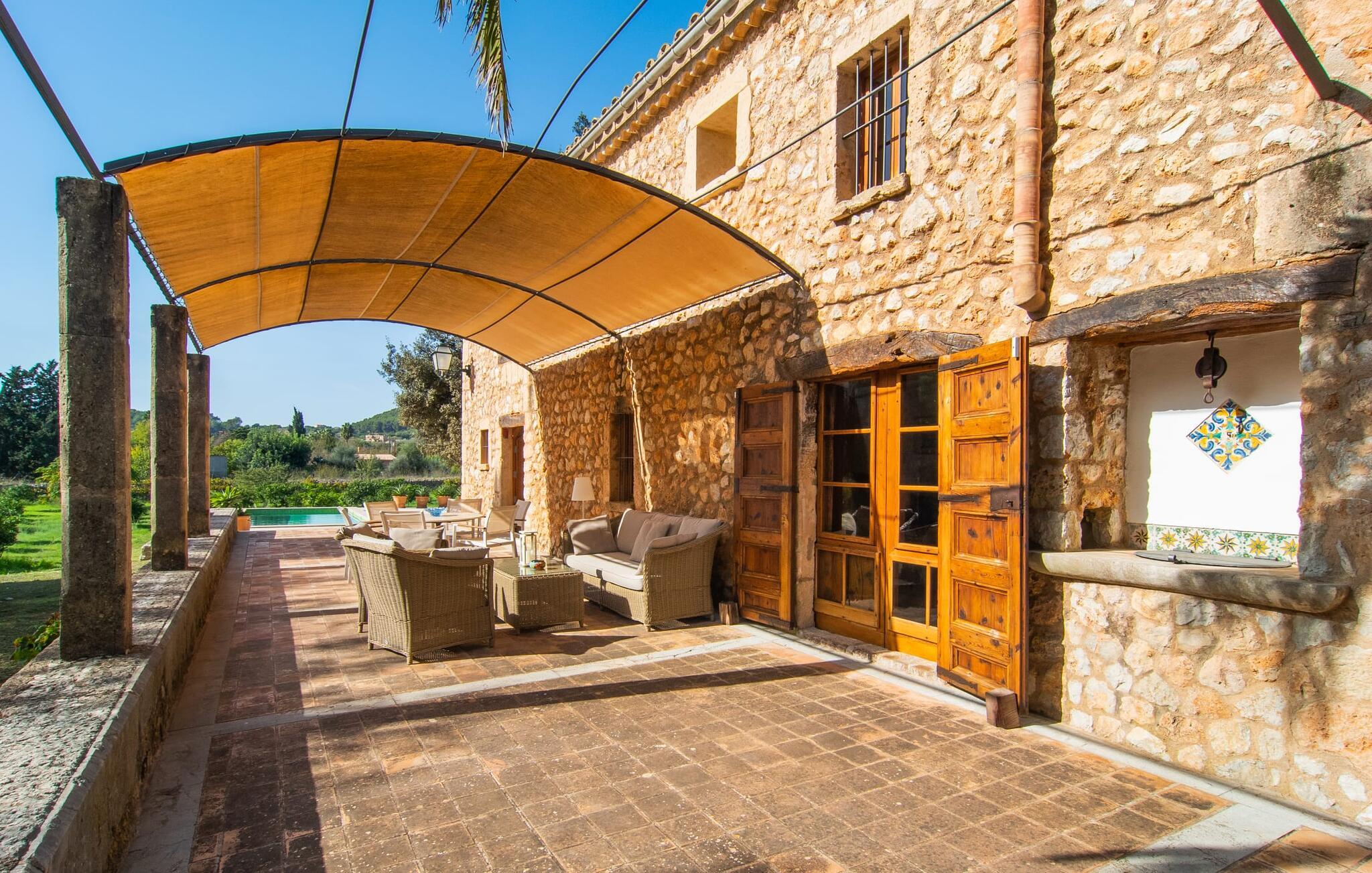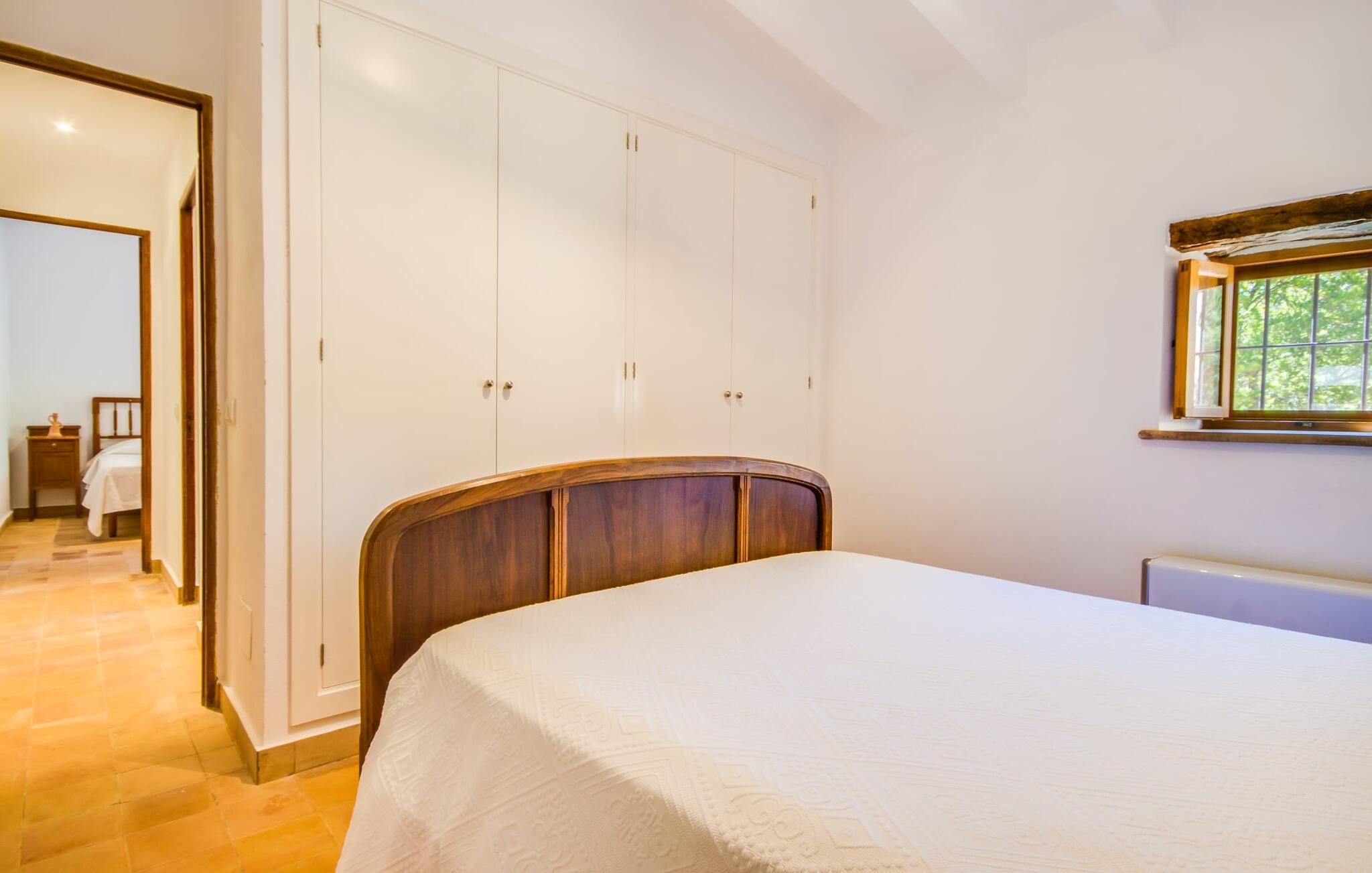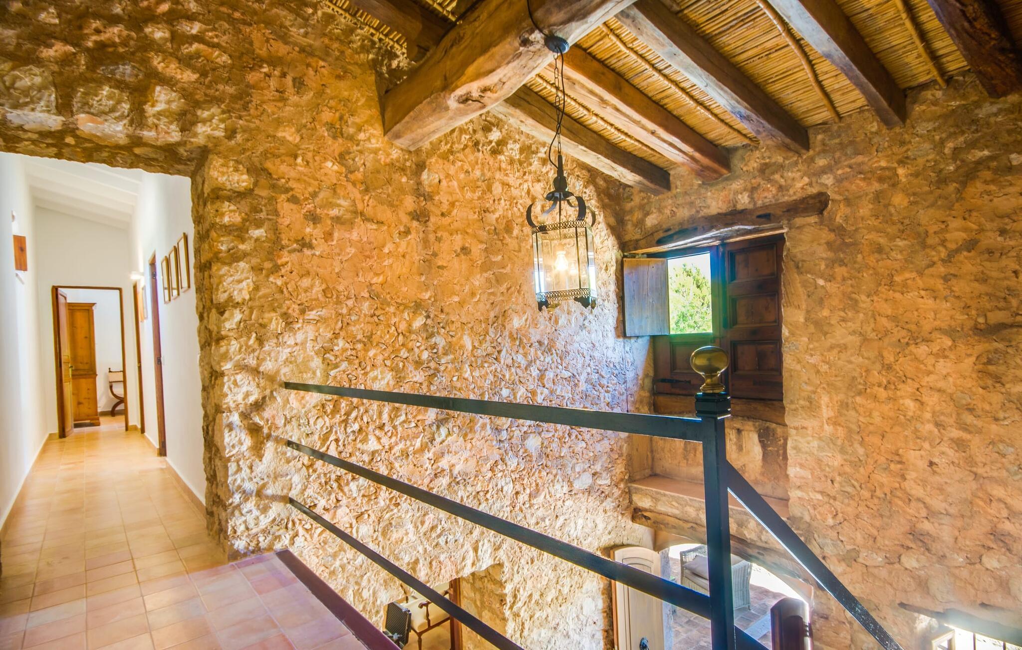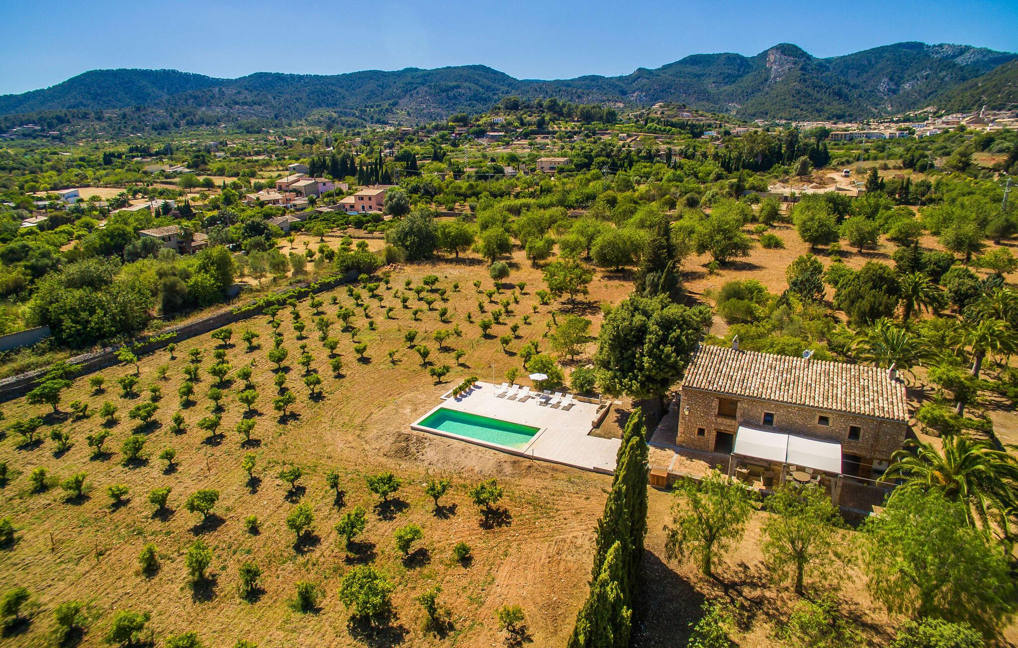Villa "S'Erisal" er et fantastisk feriehus i hjertet af Mallorca, perfekt til dem, der leder efter en luksuriøs ferie. Når I kører langs den lange allé af palmetræer, vil I blive mødt af smukke grunde, herunder en appelsintræplantage og en rummelig terrasse perfekt til afslapning. Over 100 år gammel har ejendommen en charmerende blanding af restaurerede møbler og moderne detaljer, der sikrer både komfort og stil. Den rummelige terrasse emmer af en fortryllende charme med sine smukke gamle gulvtegl og soltag. Slap af på komfortable møbler, samles om bordet eller lounge under det knudrede oliventræ. Den indbydende pool inviterer jer til at slappe af med en forfriskende drink, mens I nyder udsigten over Tramuntana-bjergene. (Poolen er lukket fra november til slutningen af marts). Gå ind i villaen via den omsluttede terrasse og en lille entré dekoreret med natursten og flodsten. Den store stue har pejs og direkte adgang til terrassen, hvilket giver mulighed for problemfri indendørs-udendørs ophold. To soveværelser deler badeværelse i stueetagen, mens der er yderligere to soveværelser med fælles badeværelse ovenpå. Villaen imponerer med en harmonisk blanding af restaurerede møbler og moderne elementer, mens de tykke vægge sikrer en behagelig kølig atmosfære på varme sommerdage. Beliggende nær den charmerende by Alaró, kan gæsterne udforske de lokale butikker og nyde gågaden. Ydermere ligger Incas gamle bydel kun en kort køretur væk, og de nærmeste strande ligger cirka 30 km fra villaen. Samlet set tilbyder "S'Erisal" en fortryllende ramme for en uforglemmelig ferieoplevelse.