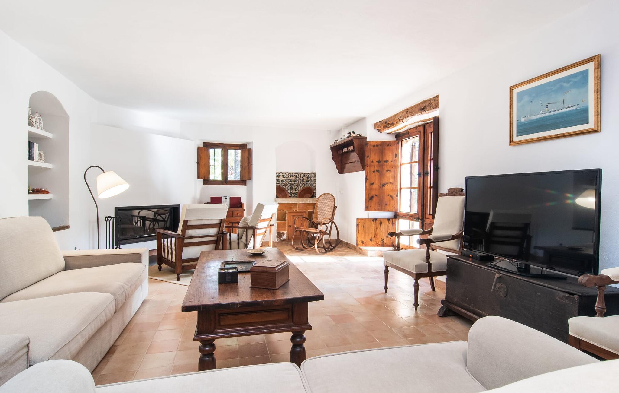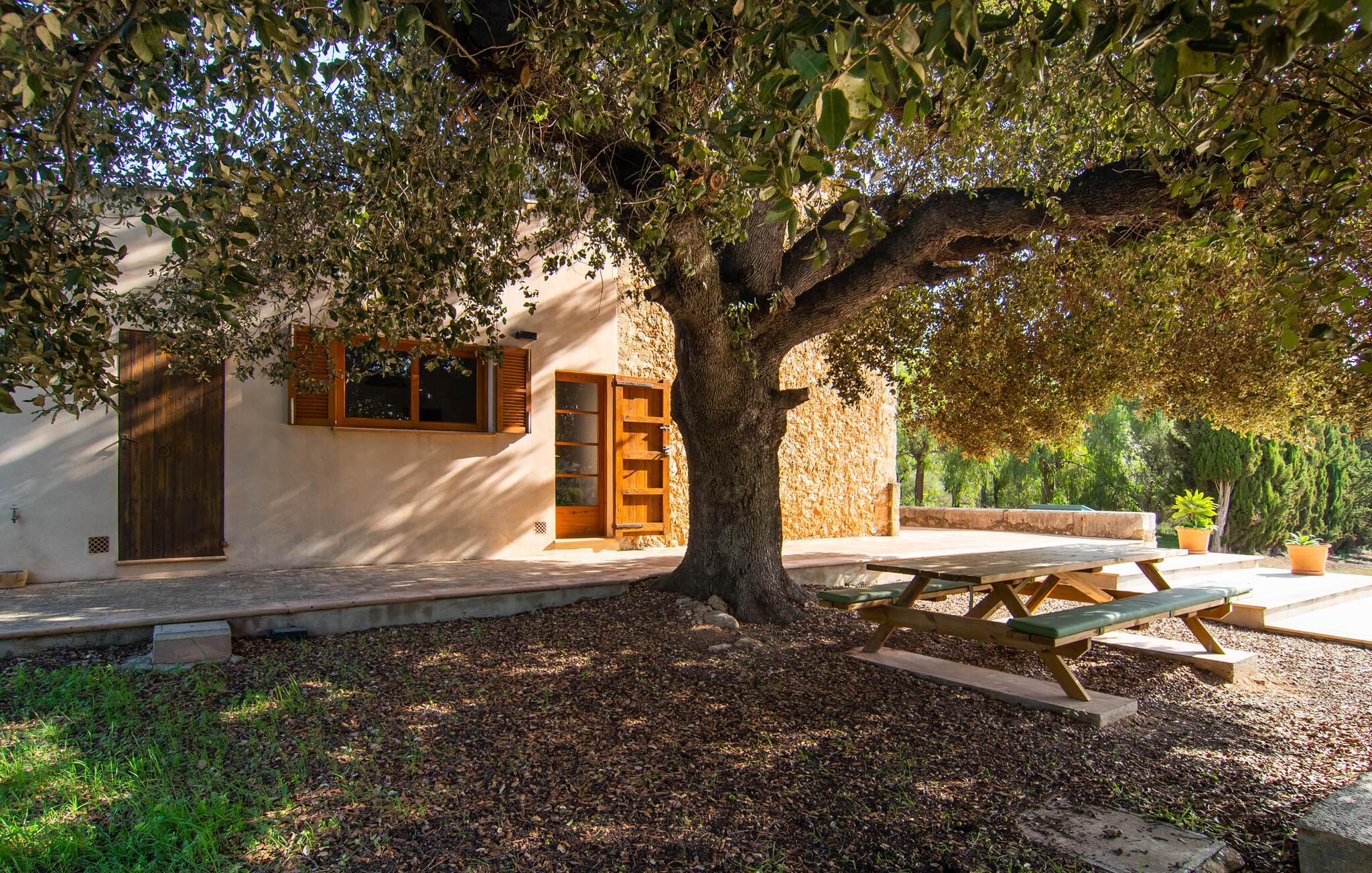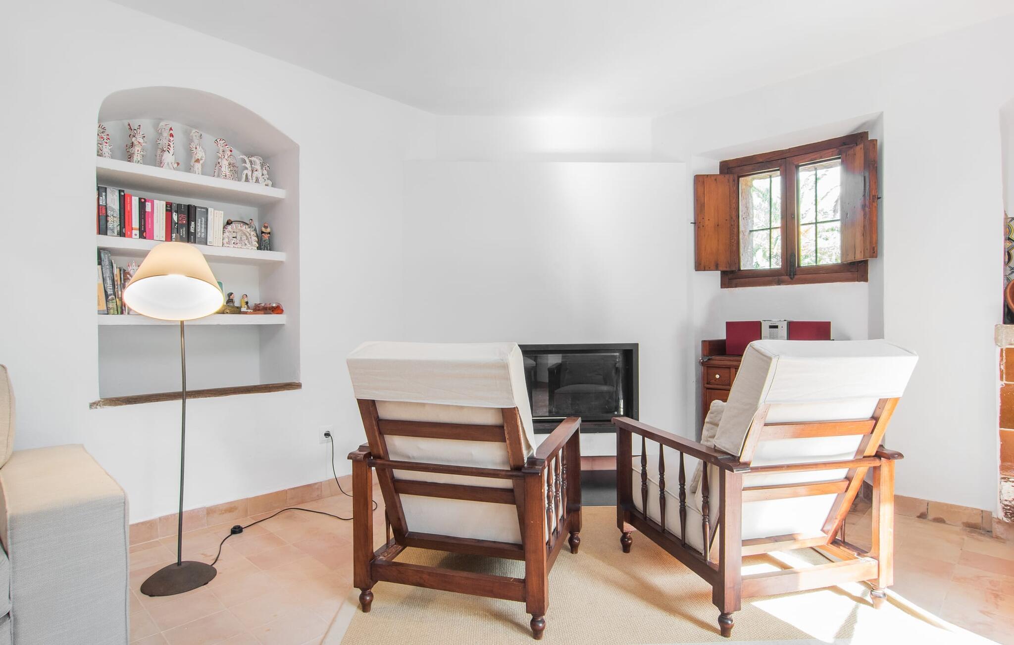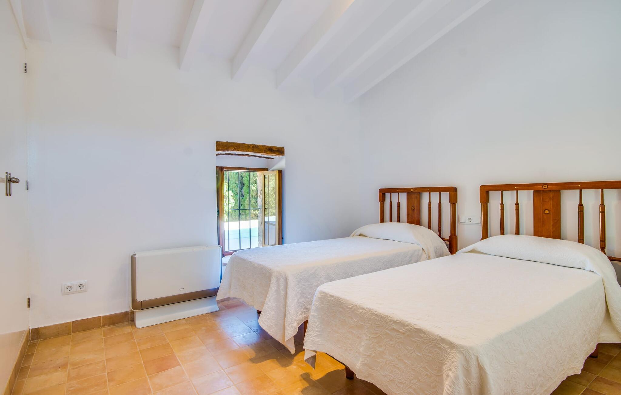 Villa "S'Erisal" er et fantastisk feriehus i hjertet af Mallorca, perfekt til dem, der leder efter en luksuriøs ferie. Når I kører langs den lange allé af palmetræer, vil I blive mødt af smukke grunde, herunder en appelsintræplantage og en rummelig terrasse perfekt til afslapning. Over 100 år gammel har ejendommen en charmerende blanding af restaurerede møbler og moderne detaljer, der sikrer både komfort og stil. Den rummelige terrasse emmer af en fortryllende charme med sine smukke gamle gulvtegl og soltag. Slap af på komfortable møbler, samles om bordet eller lounge under det knudrede oliventræ. Den indbydende pool inviterer jer til at slappe af med en forfriskende drink, mens I nyder udsigten over Tramuntana-bjergene. (Poolen er lukket fra november til slutningen af marts). Gå ind i villaen via den omsluttede terrasse og en lille entré dekoreret med natursten og flodsten. Den store stue har pejs og direkte adgang til terrassen, hvilket giver mulighed for problemfri indendørs-udendørs ophold. To soveværelser deler badeværelse i stueetagen, mens der er yderligere to soveværelser med fælles badeværelse ovenpå. Villaen imponerer med en harmonisk blanding af restaurerede møbler og moderne elementer, mens de tykke vægge sikrer en behagelig kølig atmosfære på varme sommerdage. Beliggende nær den charmerende by Alaró, kan gæsterne udforske de lokale butikker og nyde gågaden. Ydermere ligger Incas gamle bydel kun en kort køretur væk, og de nærmeste strande ligger cirka 30 km fra villaen. Samlet set tilbyder "S'Erisal" en fortryllende ramme for en uforglemmelig ferieoplevelse.