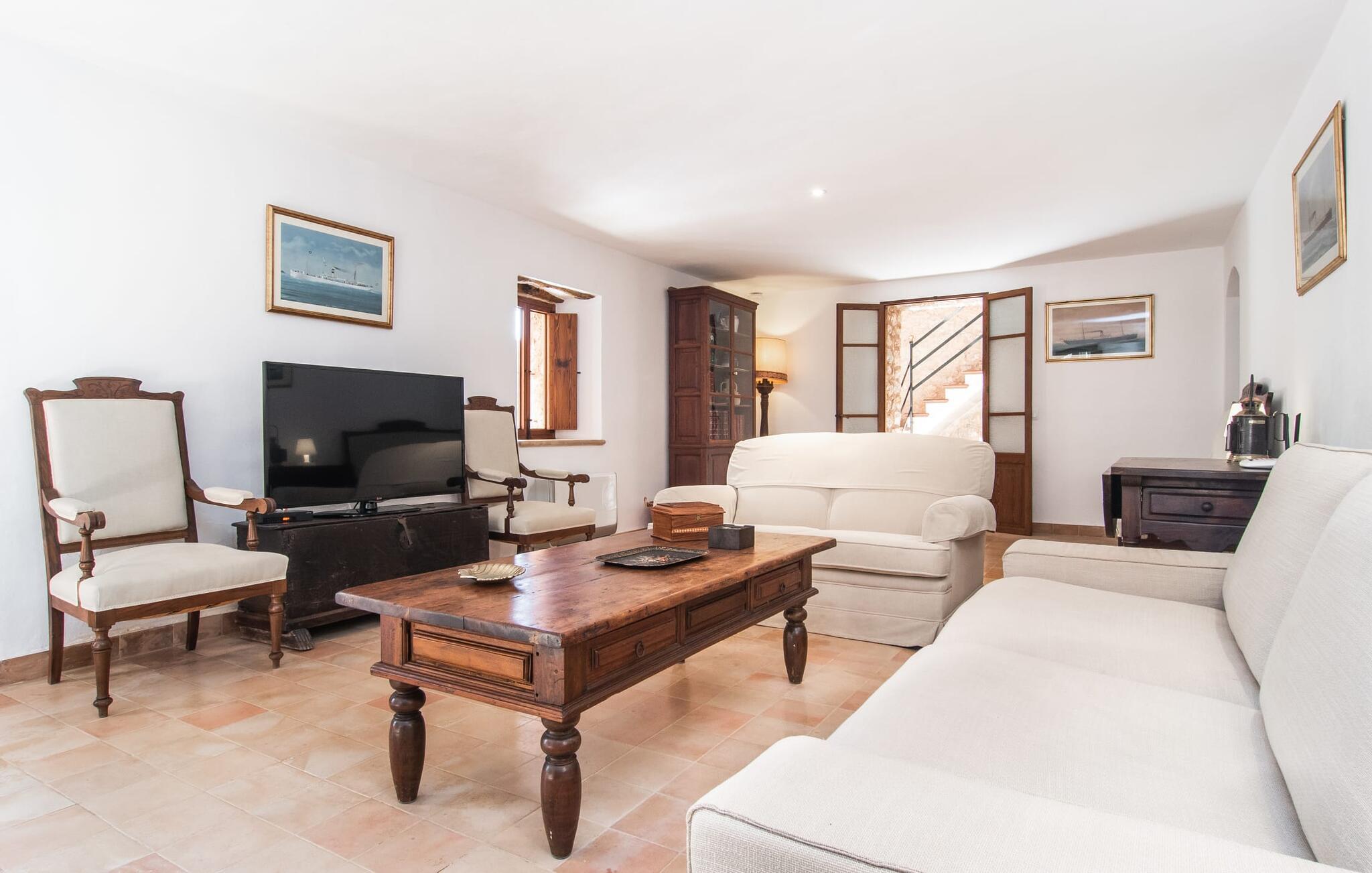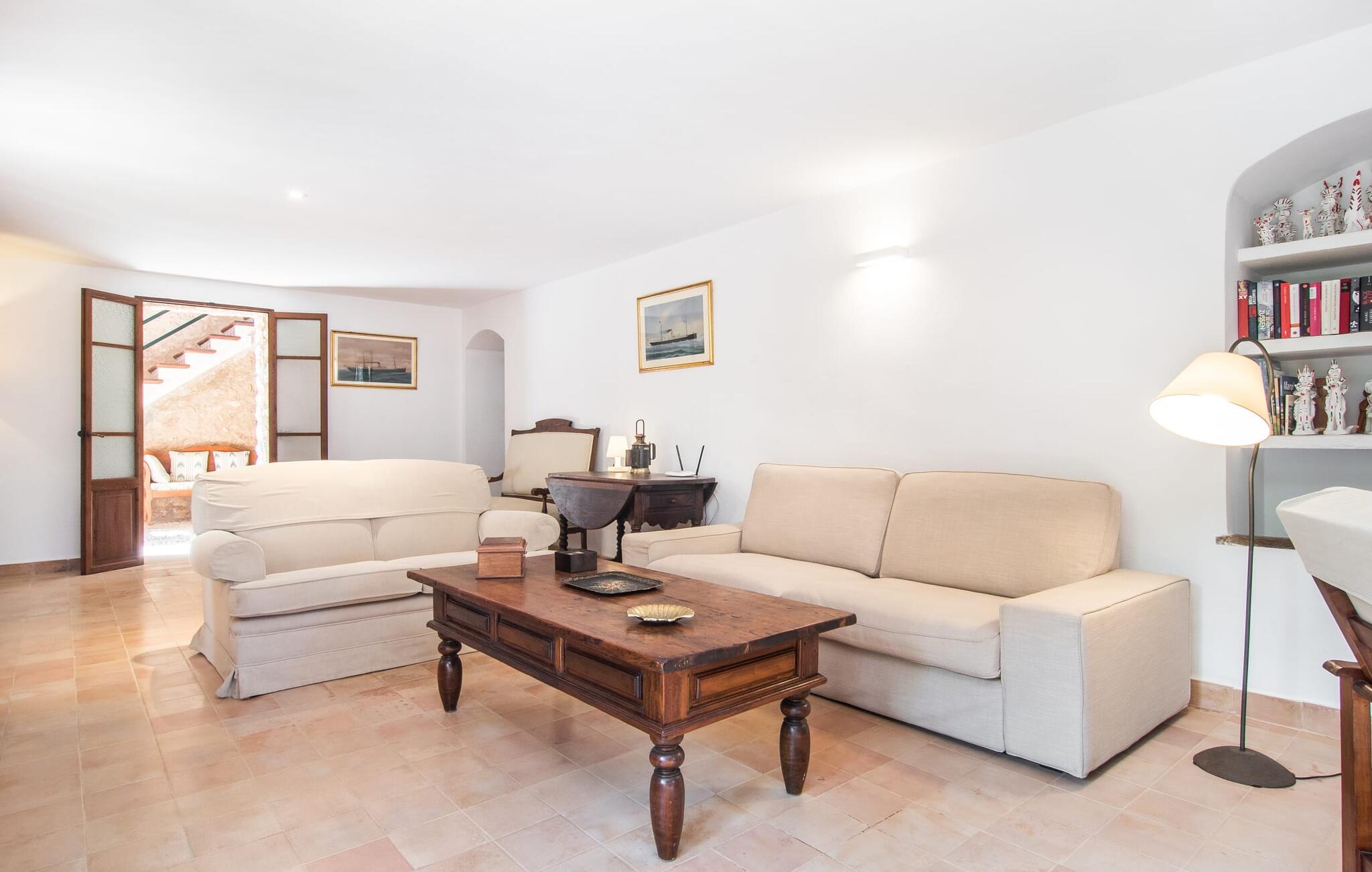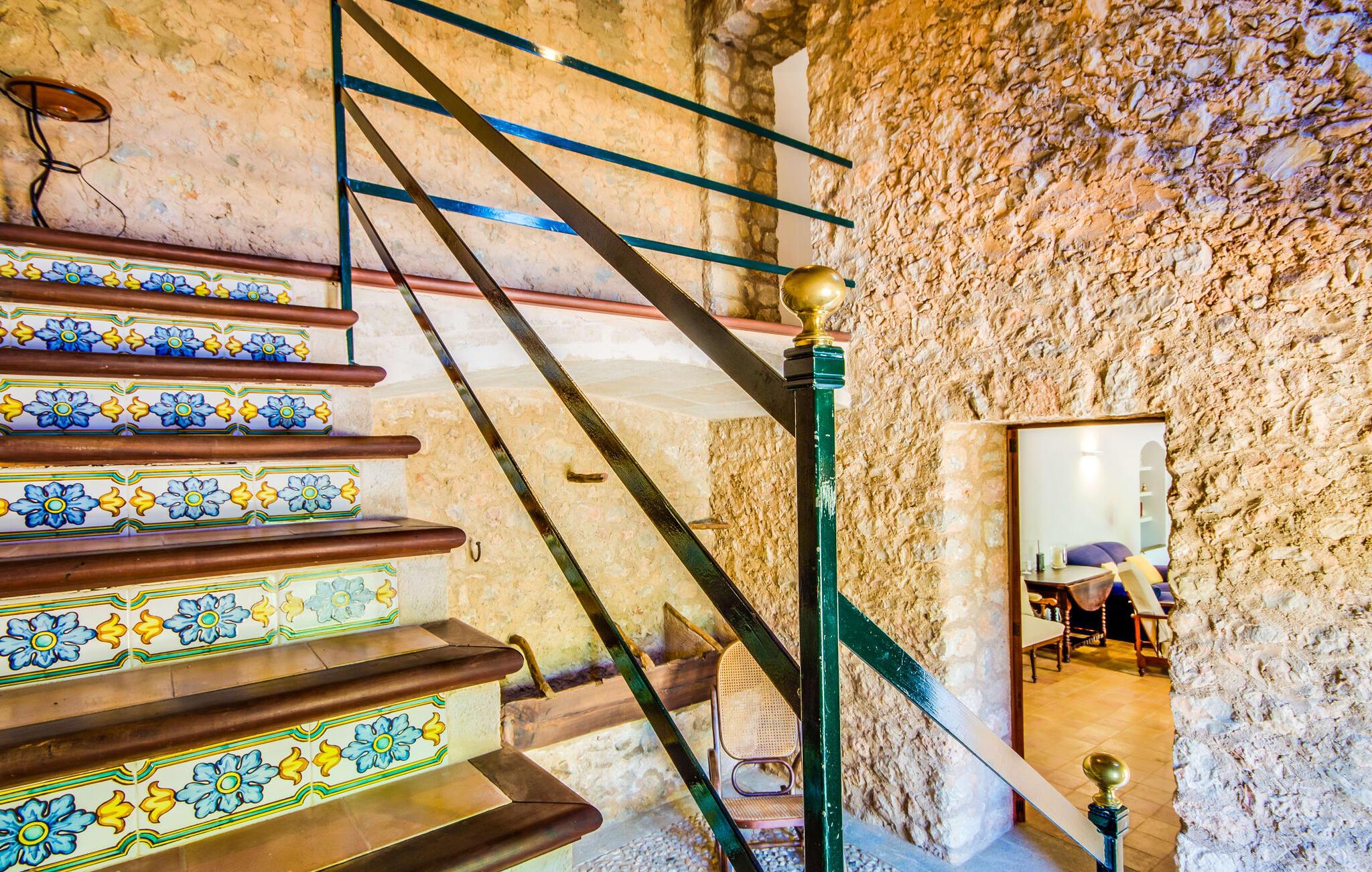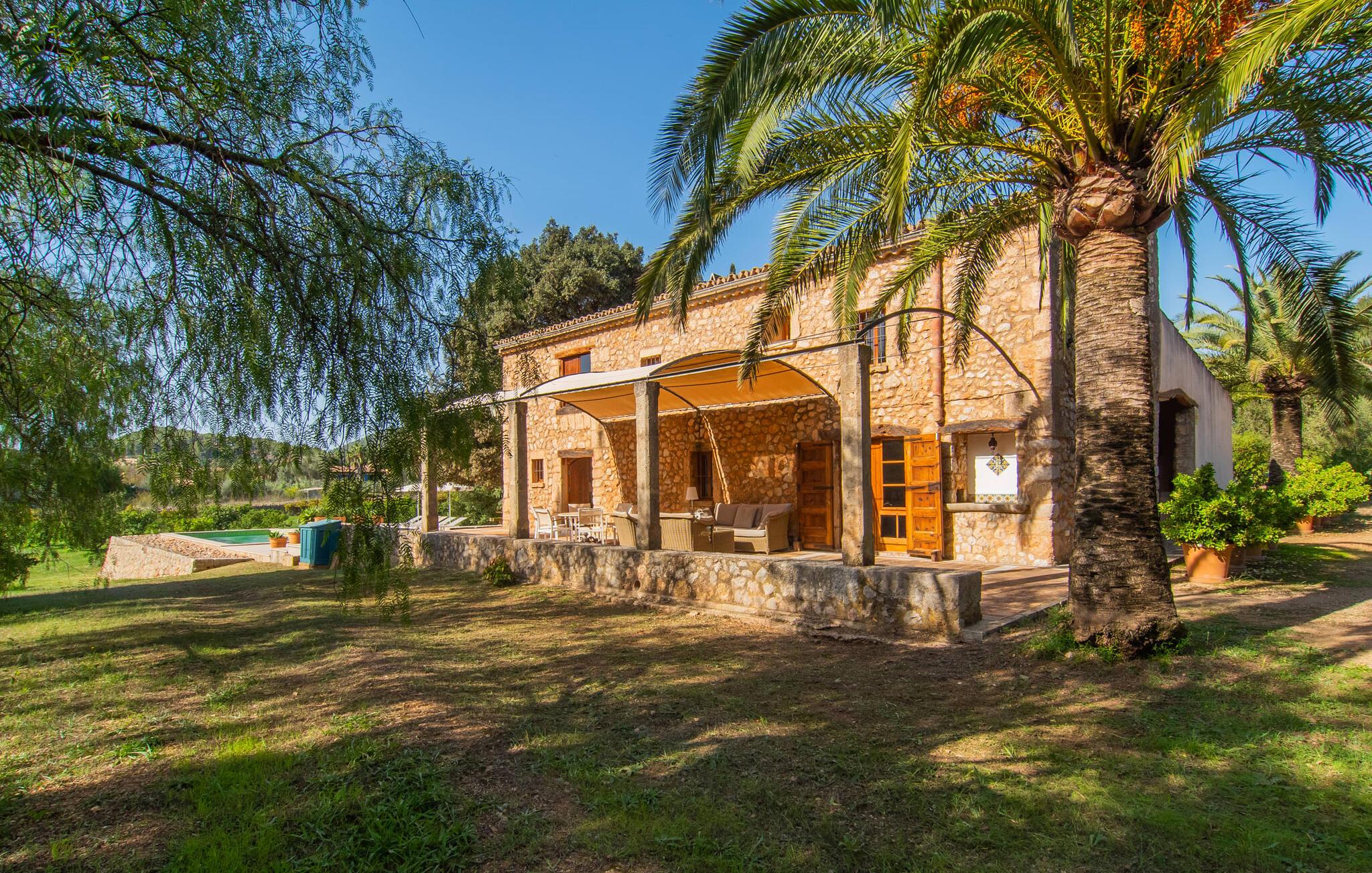Villa "S'Erisal" er et fantastisk feriehus i hjertet af Mallorca, perfekt til dem, der leder efter en luksuriøs ferie. Når I kører langs den lange allé af palmetræer, vil I blive mødt af smukke grunde, herunder en appelsintræplantage og en rummelig terrasse perfekt til afslapning. Over 100 år gammel har ejendommen en charmerende blanding af restaurerede møbler og moderne detaljer, der sikrer både komfort og stil. Den rummelige terrasse emmer af en fortryllende charme med sine smukke gamle gulvtegl og soltag. Slap af på komfortable møbler, samles om bordet eller lounge under det knudrede oliventræ. Den indbydende pool inviterer jer til at slappe af med en forfriskende drink, mens I nyder udsigten over Tramuntana-bjergene. (Poolen er lukket fra november til slutningen af marts). Gå ind i villaen via den omsluttede terrasse og en lille entré dekoreret med natursten og flodsten. Den store stue har pejs og direkte adgang til terrassen, hvilket giver mulighed for problemfri indendørs-udendørs ophold. To soveværelser deler badeværelse i stueetagen, mens der er yderligere to soveværelser med fælles badeværelse ovenpå. Villaen imponerer med en harmonisk blanding af restaurerede møbler og moderne elementer, mens de tykke vægge sikrer en behagelig kølig atmosfære på varme sommerdage. Beliggende nær den charmerende by Alaró, kan gæsterne udforske de lokale butikker og nyde gågaden. Ydermere ligger Incas gamle bydel kun en kort køretur væk, og de nærmeste strande ligger cirka 30 km fra villaen. Samlet set tilbyder "S'Erisal" en fortryllende ramme for en uforglemmelig ferieoplevelse.