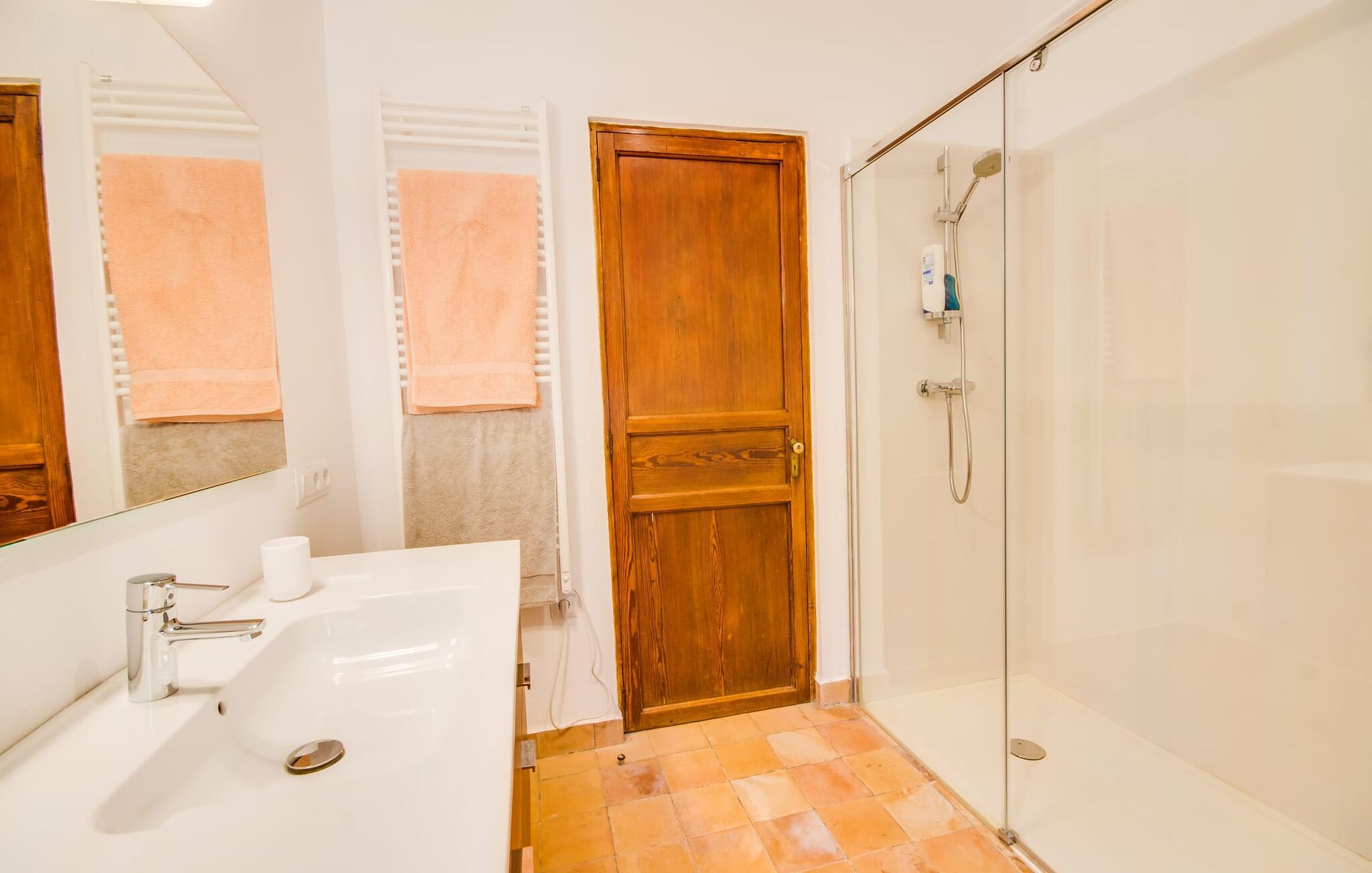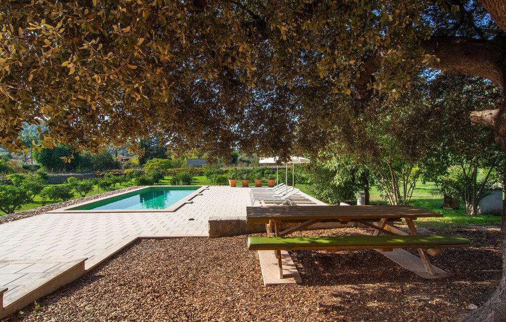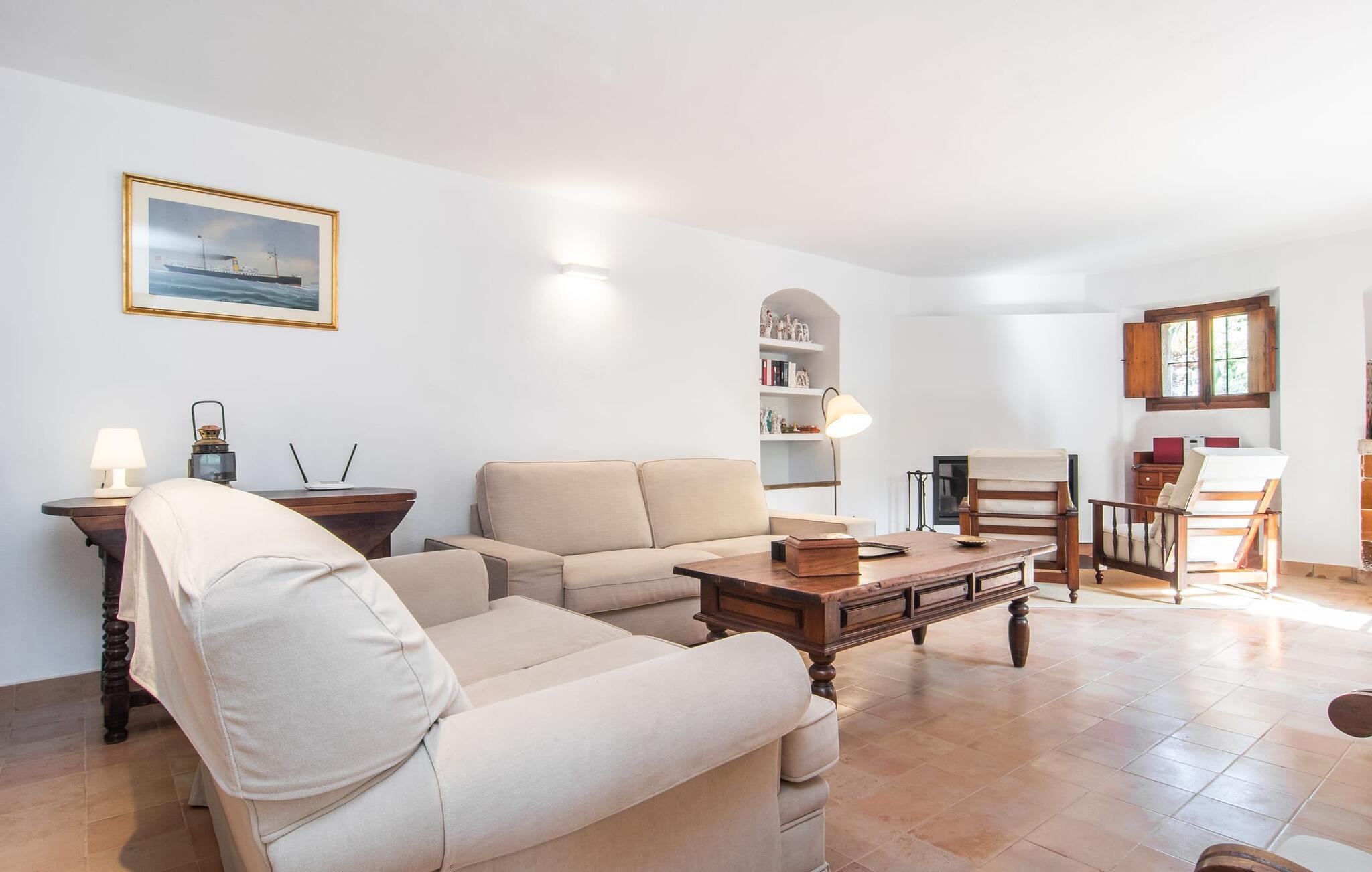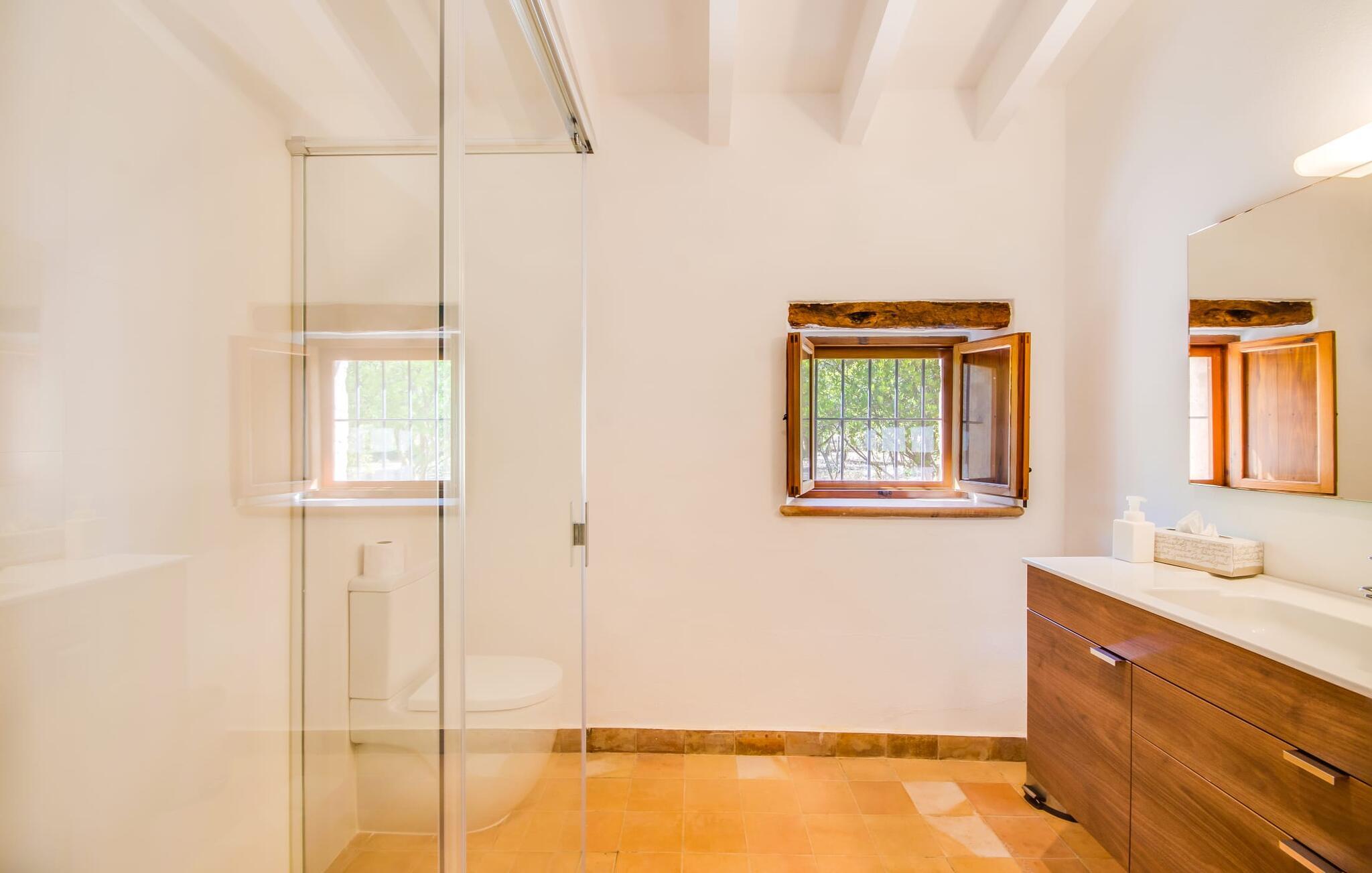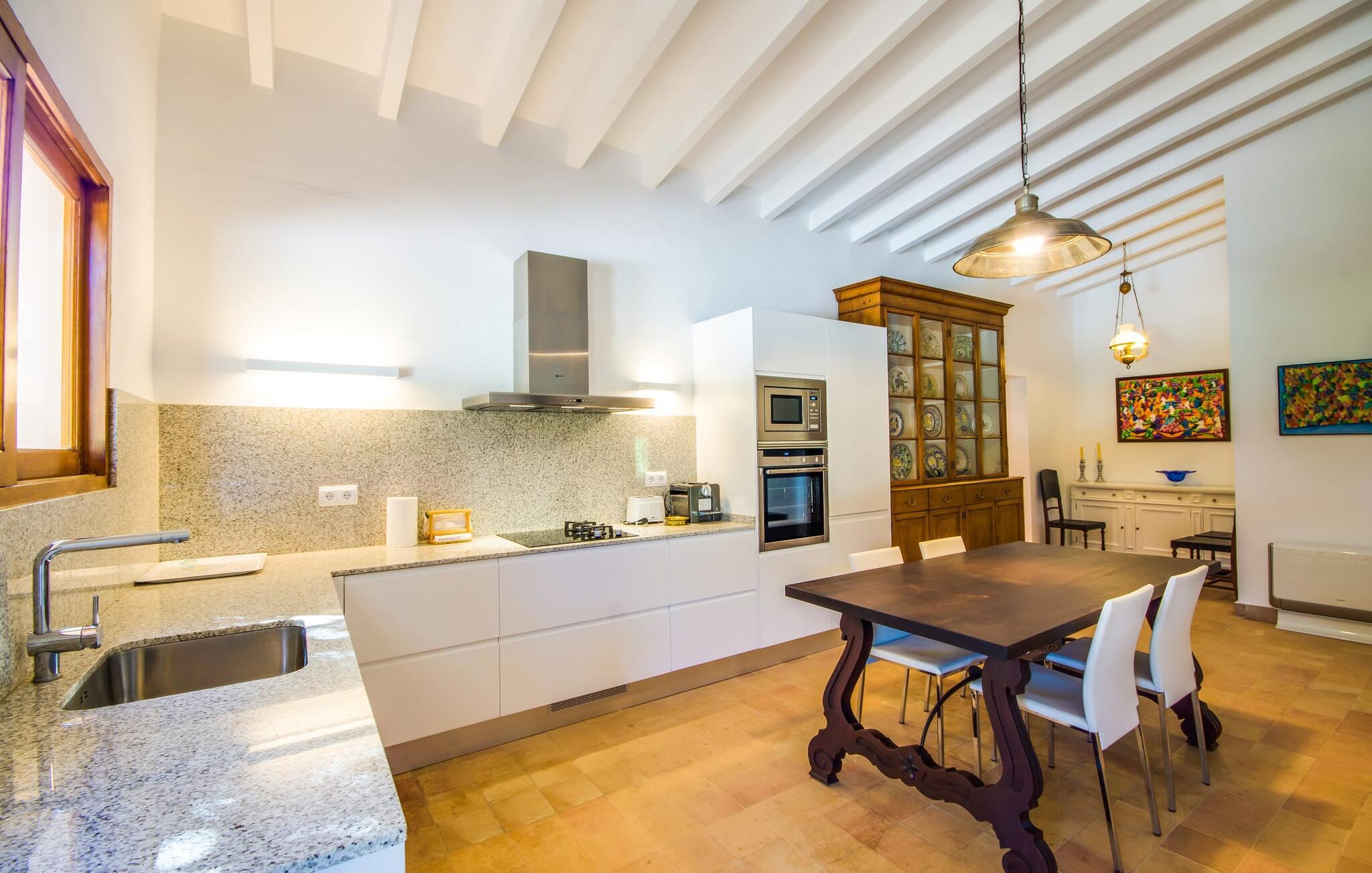 Villa "S'Erisal" er et fantastisk feriehus i hjertet af Mallorca, perfekt til dem, der leder efter en luksuriøs ferie. Når I kører langs den lange allé af palmetræer, vil I blive mødt af smukke grunde, herunder en appelsintræplantage og en rummelig terrasse perfekt til afslapning. Over 100 år gammel har ejendommen en charmerende blanding af restaurerede møbler og moderne detaljer, der sikrer både komfort og stil. Den rummelige terrasse emmer af en fortryllende charme med sine smukke gamle gulvtegl og soltag. Slap af på komfortable møbler, samles om bordet eller lounge under det knudrede oliventræ. Den indbydende pool inviterer jer til at slappe af med en forfriskende drink, mens I nyder udsigten over Tramuntana-bjergene. (Poolen er lukket fra november til slutningen af marts). Gå ind i villaen via den omsluttede terrasse og en lille entré dekoreret med natursten og flodsten. Den store stue har pejs og direkte adgang til terrassen, hvilket giver mulighed for problemfri indendørs-udendørs ophold. To soveværelser deler badeværelse i stueetagen, mens der er yderligere to soveværelser med fælles badeværelse ovenpå. Villaen imponerer med en harmonisk blanding af restaurerede møbler og moderne elementer, mens de tykke vægge sikrer en behagelig kølig atmosfære på varme sommerdage. Beliggende nær den charmerende by Alaró, kan gæsterne udforske de lokale butikker og nyde gågaden. Ydermere ligger Incas gamle bydel kun en kort køretur væk, og de nærmeste strande ligger cirka 30 km fra villaen. Samlet set tilbyder "S'Erisal" en fortryllende ramme for en uforglemmelig ferieoplevelse.