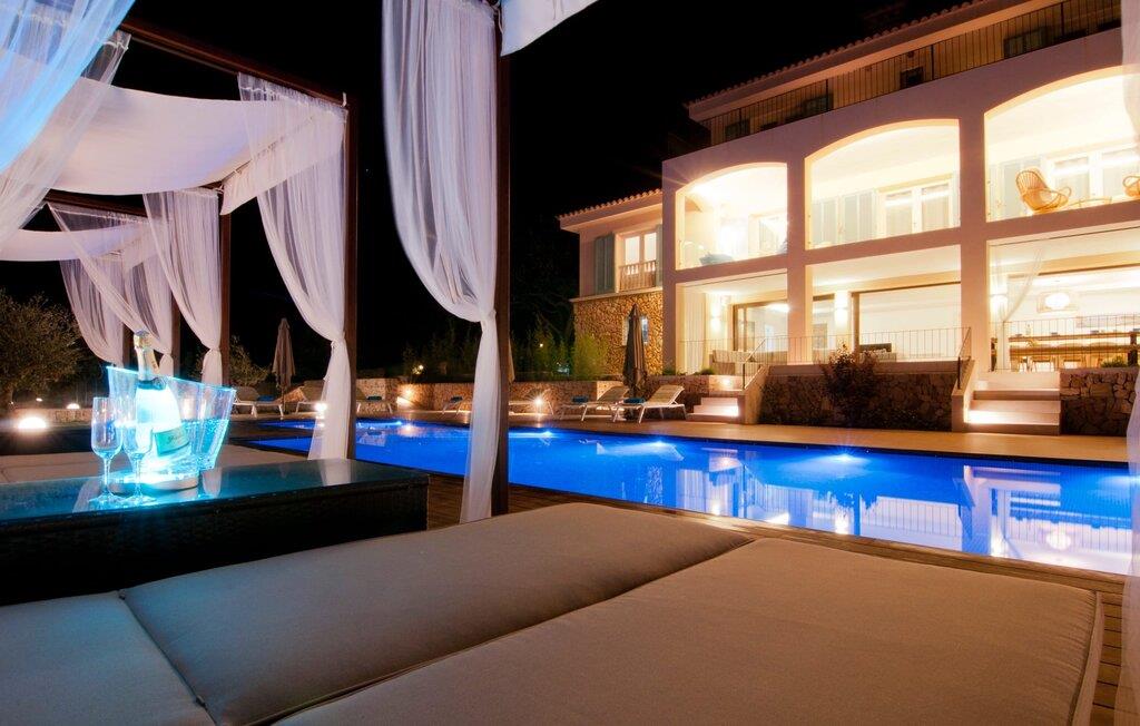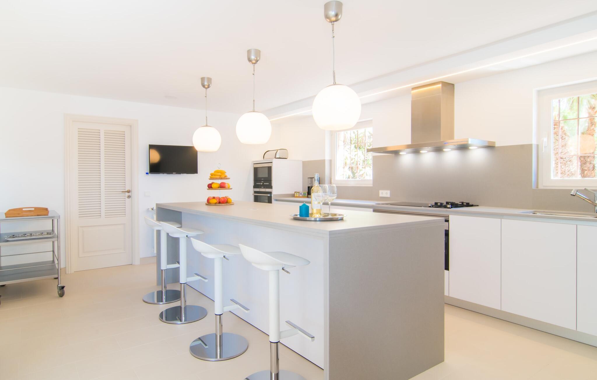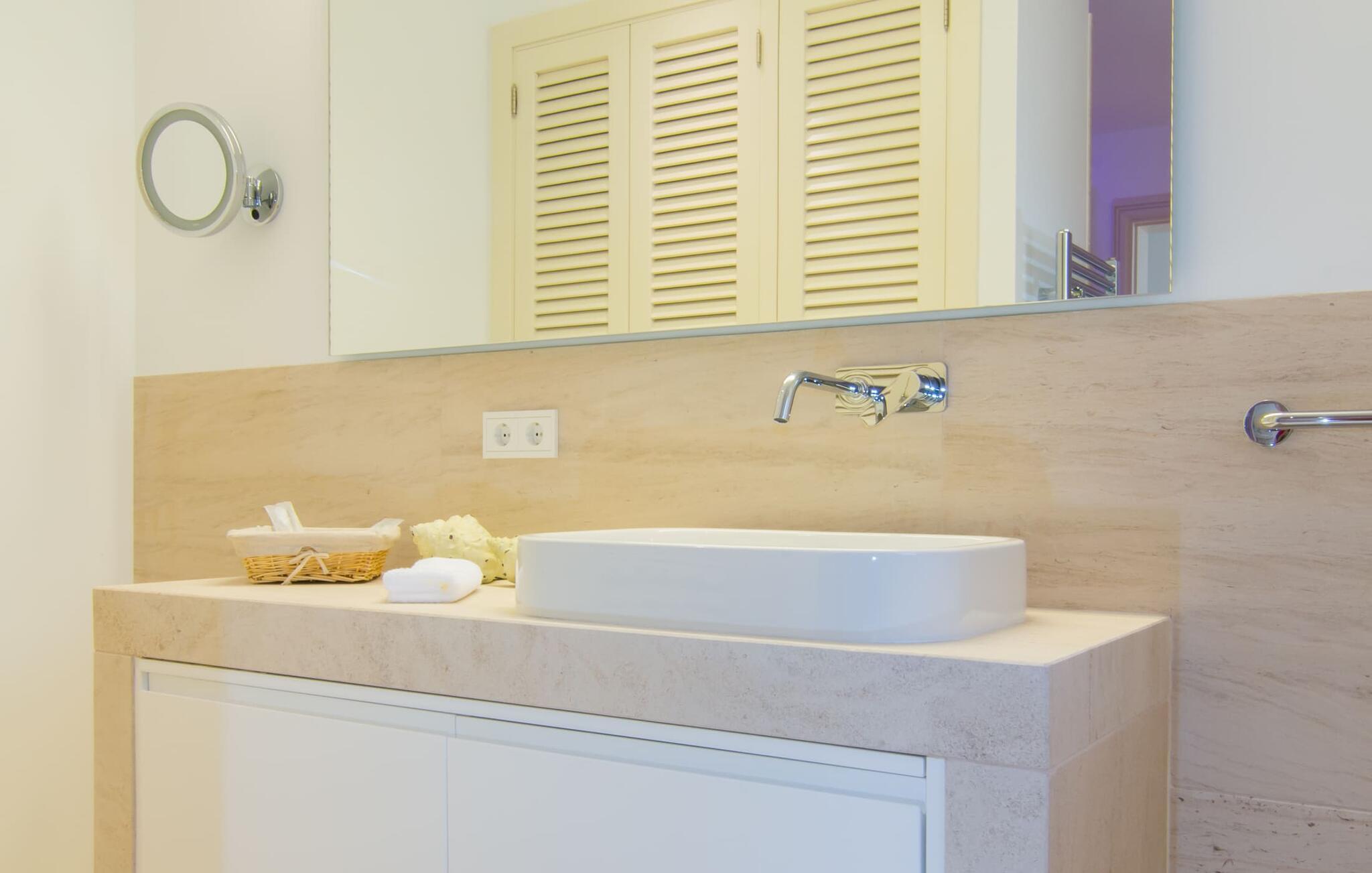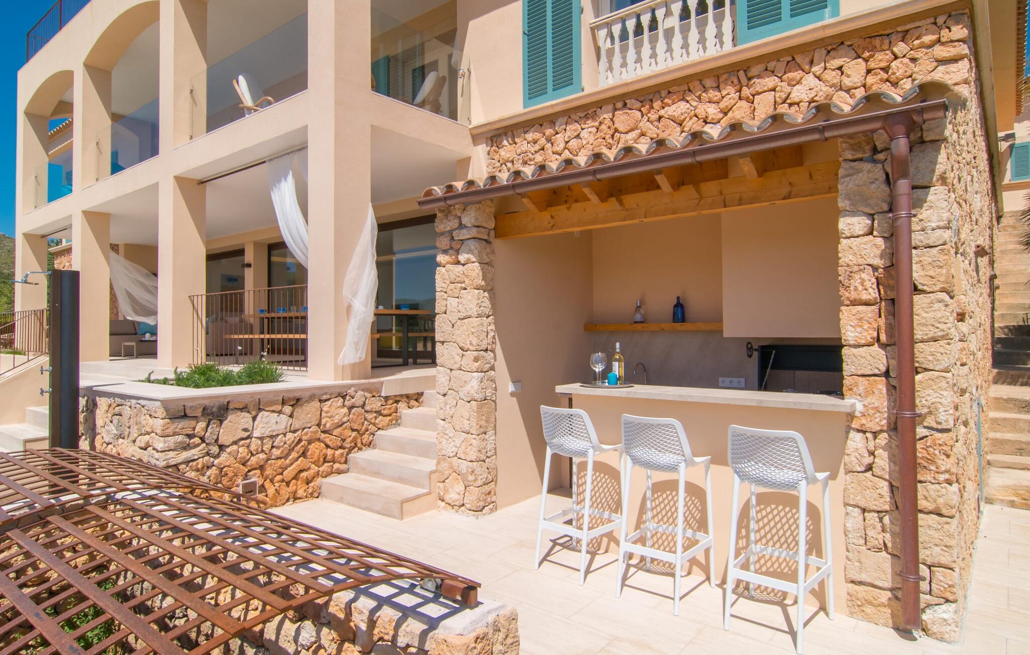 Enhver, der er interesseret i denne ejendom, har høje forventninger til luksus og komfort samt en god sans for uforlignelig æstetik. Så lad os se nærmere på dette førsteklasses sommerhus. Ejendommen er beliggende på en fritliggende, landlig ejendom på omkring 15.000 kvadratmeter. Villaen er tilgængelig via en lille, snoet indkørsel og imponerer ved første øjekast med sit imponerende design og stil. Dette er en fuldstændig renoveret tidligere herregård, der nu kan ses i sin fordums herlighed. Den parklignende have er anlagt i middelhavsstil, nænsomt vedligeholdt og danner det perfekte udendørsområde til et behageligt ophold hele vejen rundt. Den store overdækkede terrasse giver beroligende skygge og indbyder til at blive hængende i den skønne idyl omkring jer. De havemøbler, I har til rådighed, er af høj kvalitet og komfortable på samme tid. Hvad kan være hyggeligere end bare at sidde her om morgenen, se på den nye dag og samtidig nyde en forfriskende morgenmad og den vidunderlige udsigt, der strækker sig fra det bakkede landskab til havet? Den indbyggede grillplads inviterer jer til at nyde kulinariske aftener, måske under Middelhavets stjernehimmel, mens hele jeres gruppe samles og forkæler jeres smagsløg med frisklavede, regionale delikatesser. Med en størrelse på 15 x 5,20 m og en dybde på op til 2 m er den enorme pool virkelig imponerende. Den er desuden let at gå på og har et skrånende gulv. Ved siden af poolen er der en skøn træterrasse udstyret med komfortable liggestole og flere skønne liggestole. Her får soldyrkere noget for pengene her på flere måder og kan også nyde den ganske enkelt storslåede udsigt, mens de slapper af under middelhavssolen. Vil I beskytte jer mod stærk UV-stråling, kan I finde beskyttelse under en af de tilgængelige parasoller. Den rummelige altan på første sal byder også på et fantastisk udsigtspunkt til at nyde panoramaudsigten. Selve villaen imponerer med sine høje tekniske specifikationer og et minimalistisk design kombineret med den helt rigtige mængde farver og tilbehør. I kan også nyde den førnævnte udsigt fra de lyse rum, mens I nyder den arkitektoniske luksus inde i ejendommen. En åben stue/spisestue har et meget komfortabelt sofahjørne og et smukt spisebord, hvor I kan nyde et solidt måltid sammen indendørs. En anden stue med sofa og lænestol giver jer mulighed for at trække jer tilbage her i en lille gruppe eller alene, for eksempel til en snak eller en stille læsning. Og intet står i vejen for en hyggelig aften foran bålet. I det lyse, fuldt udstyrede køkken finder I alt, hvad I har brug for til jeres daglige behov i et helt igennem stilfuldt udseende, herunder en kedel, en filterkaffemaskine og en kapselkaffemaskine. Soveværelserne imponerer med klare linjer og masser af hvidt, suppleret med subtile strejf af farve uden at virke overflødigt. Morgenudsigten ud af vinduet vil være et særligt syn dag efter dag. Et af dobbeltværelserne er udstyret med en 2 x 2 m seng, de andre fem er alle udstyret med to kombinerede senge på 1,05 x 2 m. Lige linjer og et enkelt, men elegant design er også tydeligt i de seks badeværelser, hvoraf fire er komfortable en-suite badeværelser. Et strygejern og fem hårtørrere er tilgængelige for gæsterne, så I ikke behøver at spilde bagageplads ved at medbringe jeres egen bagage hjemmefra. Hvis I ønsker at tilbringe den dejligste tid på året i en trendy og ubetinget førsteklasses atmosfære, kan vi kun varmt anbefale denne ferievilla. Placeringen og omgivelserne er et andet pluspunkt. Font de Sa Cala er navnet på den lokale sandstrand i Capdepera kommune. Den tilstødende lille turistbebyggelse er opkaldt efter denne strand. Bugten ligger omkring 3 kilometer syd for Capdepera, og andre maleriske strande som Platja de Son Moll er også nemme at nå. Cala Ratjada med sin smukke promenade og gode indkøbsmuligheder ligger kun 10 minutter væk med udlejningsbil. Den fritliggende havudsigtsvilla "S'Heretat" er en kæmpestor og nærmest luksuriøs ejendom nær Font de Sa Cala. Denne prestigefyldte ejendom er omgivet af usædvanligt elegante og velholdte uderum. En lille landsby er kun omkring 800 meter væk.