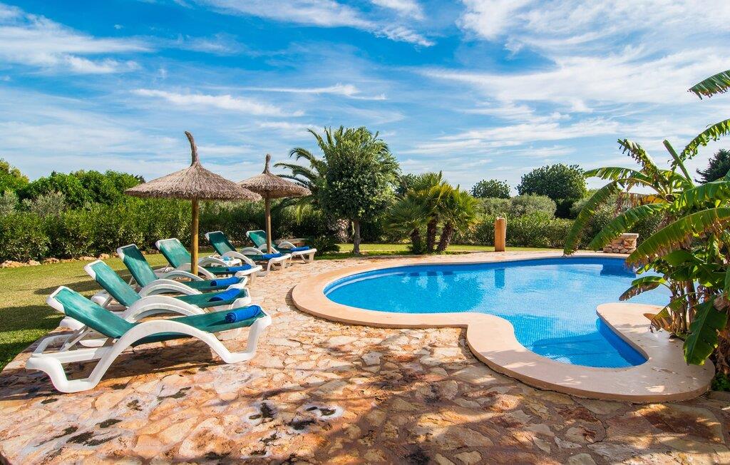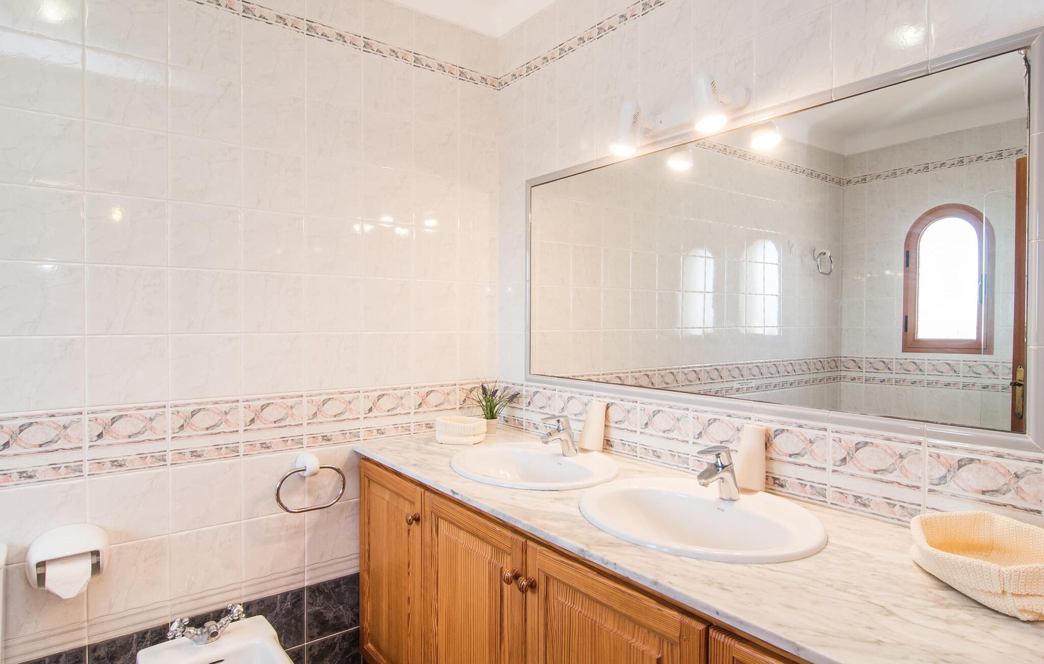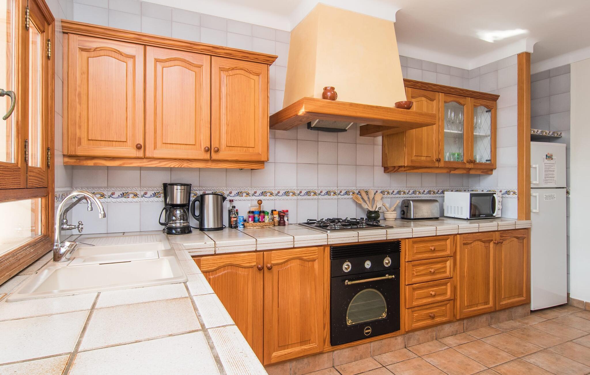 Villa "s'Hort de Sa Nau" tilbyder et malerisk og indbydende miljø for sine gæster, omgivet af frodige grønne områder og et rummeligt udendørsområde. Ejendommen har omfattende terrasse- og græsarealer, ideelle for børn at lege og lege udendørs, samt en imponerende swimmingpool med komfortable liggestole. Den overdækkede terrasse byder på masser af siddepladser, mens verandaen inviterer til grill. Villaens indre er indrettet i lyse farver og varme terracotta-toner, suppleret med trædetaljer og jordfarvede gulvfliser. Opholdsstuen er hyggelig og har en moderne sofa og et underholdningscenter med spiseplads og et fuldt udstyret køkken med en italiensk kaffemaskine og en kedel. Der er tre soveværelser i alt: to med hver to enkeltsenge, velegnet til børn, og et master bedroom med eget badeværelse og vaskemaskine. Villaen er beliggende i den sydøstlige del af Mallorca og tilbyder nem adgang til forskellige attraktioner. Golfentusiaster kan besøge den nærliggende Vall D'Or golfbane, mens de interesserede i sightseeing kan udforske charmerende byer som Cala Murada og Cala Marcal, som byder på barer, restauranter og shopping. Smukke strande som Cala Marcal, Platja de S'Arenal og Cala Brafi er også inden for rækkevidde. For naturelskere ligger Parc Natural Mondral National Park kun 20 minutters kørsel væk, og den familievenlige Es Trenc strand er let tilgængelig i bil. Aircondition i ejendommen er inkluderet i prisen, men dets brug er begrænset mellem kl. 21.00 og 07.00. Derefter fyldes der op kontant på stedet.