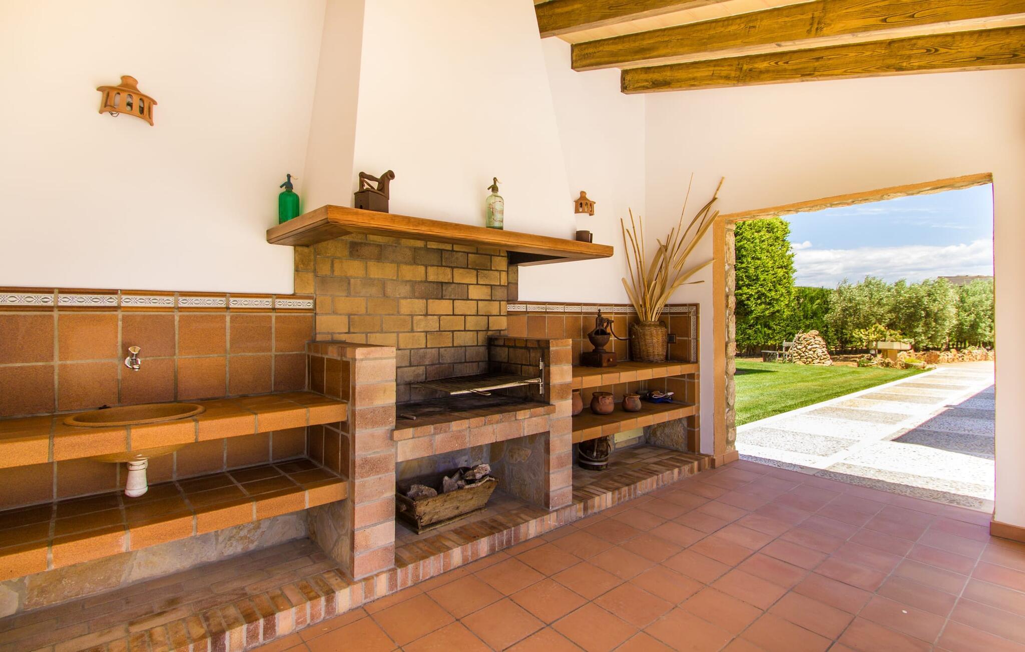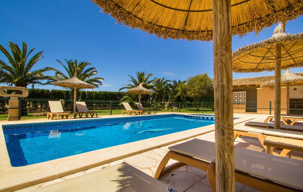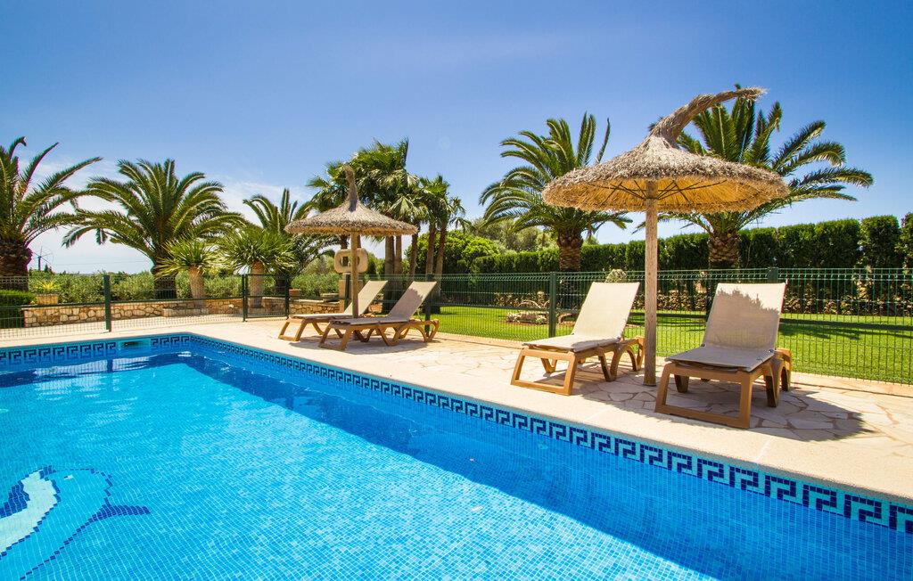 Ved ankomsten til Villa "S'Hort den Julia" tror I måske, I er i Florida: Komfortable liggestole omkranser den store pool, perfekt til timevis af plaskende aktiviteter. Her kan I slappe af, så meget I ønsker, mens I sover, overvåget af statelige palmer. Hvis I booker denne villa som familie, udgør poolen ikke en potentiel fare for de små. Den er omgivet af et hegn, så små børn kan boltre sig til deres hjertes lyst på den store græsplæne. Græsplænen er omgivet af en tæt grøn hæk, der tilbyder en behagelig grad af privatliv. Udenfor er der også en lille hytte med en stor murstensgrill og et veludstyret udendørs badeværelse. Her kan I tilberede lækre delikatesser og fordrive tiden med et spil bordtennis – vinderen modtager den største fisk fra aftengrillmiddagen. Den rummelige og varmt oplyste overdækkede veranda snor sig rundt om huset i en L-form og tilbyder masser af plads til, at hele gruppen kan omgås. Den har et stort hvidt spisebord, et komfortabelt siddeområde i flet og en hyggelig lænestol.