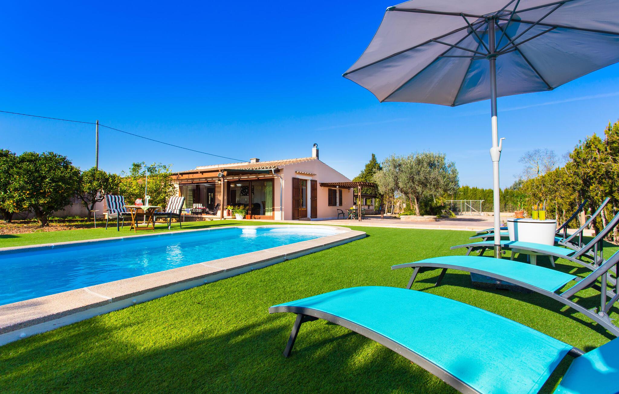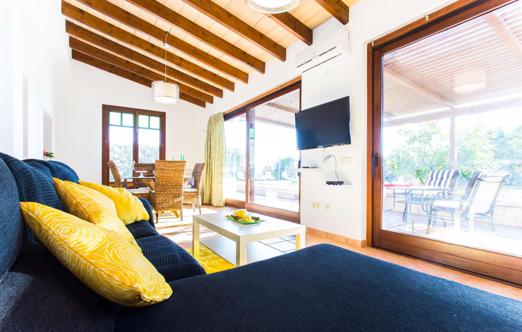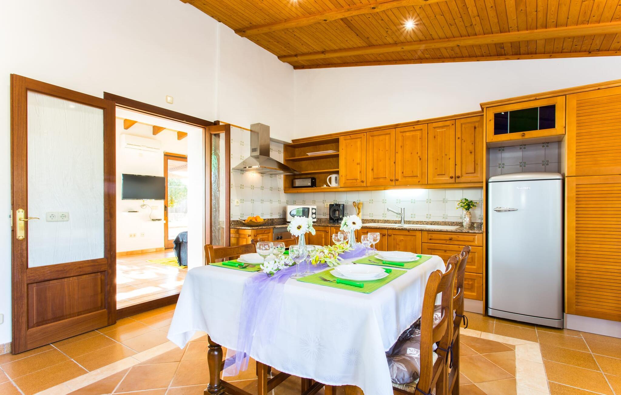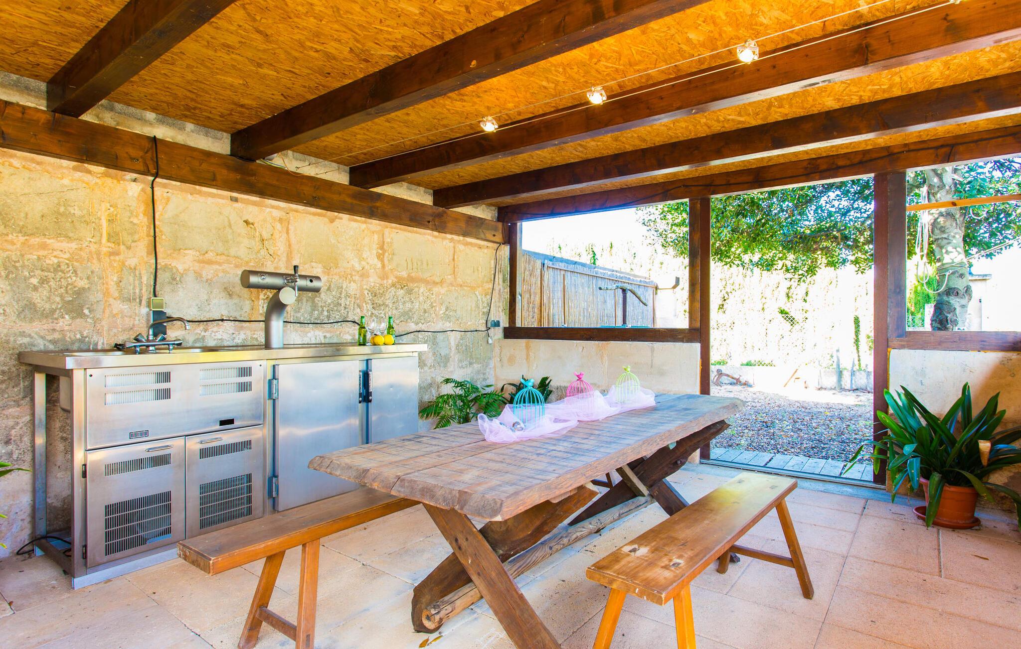 Det charmerende feriehus "S'Hostalet" er en smukt restaureret villa, der inviterer jer til at opdage dens unikke charme. Dette sydvendte hjem ligger på en vidtstrakt 11.500 kvm grund og har en fantastisk pool, perfekt til at slappe af i saltvandet, mens I nyder de rolige omgivelser. Udendørsområdet har komfortable liggestole, perfekt til at slappe af med en god bog, og en dejlig terrasse, ideel til morgenmad eller en aftengrill, komplet med en mobil grill og et udendørs køkken, der tilføjer rustik charme. Inde i opholdsrummet er fokus på komfort med lyse toner og farverige accenter. Den rummelige stue/spisestue fungerer som et multifunktionelt område til afslapning, underholdende og måltider. Tilstødende er et fuldt udstyret køkken med moderne hårde hvidevarer, herunder en brændeovn til køligere aftener og direkte adgang til den udendørs spiseplads. Villaen har to soveværelser med dobbeltsenge, det ene med en køjeseng, og et stilfuldt badeværelse med indretning af høj kvalitet, der sikrer et behageligt ophold for alle gæster. Den familievenlige villa “S'Hostalet” ligger i hjertet af øen, kun 2 km fra Montuïri, hvor der er butikker til daglige behov. Der er også et marked om mandagen på "Carrer Major", foran kirken. I Algaida (6 km) er der marked hver fredag i "Sa Plaza". Mange populære strande som Platja de Palma eller Platja de Sa Rapita og flere andre smukke bugter som Es Trenc er let tilgængelige med bil.