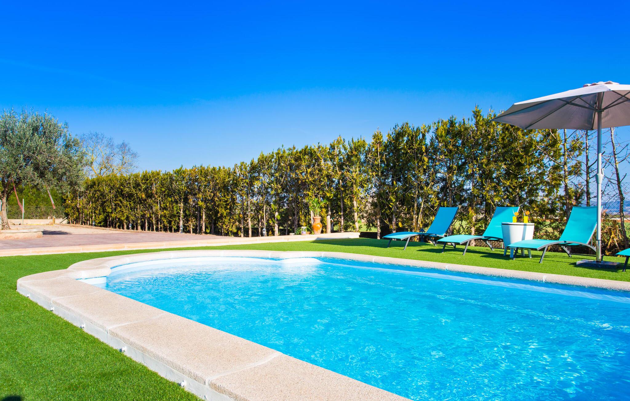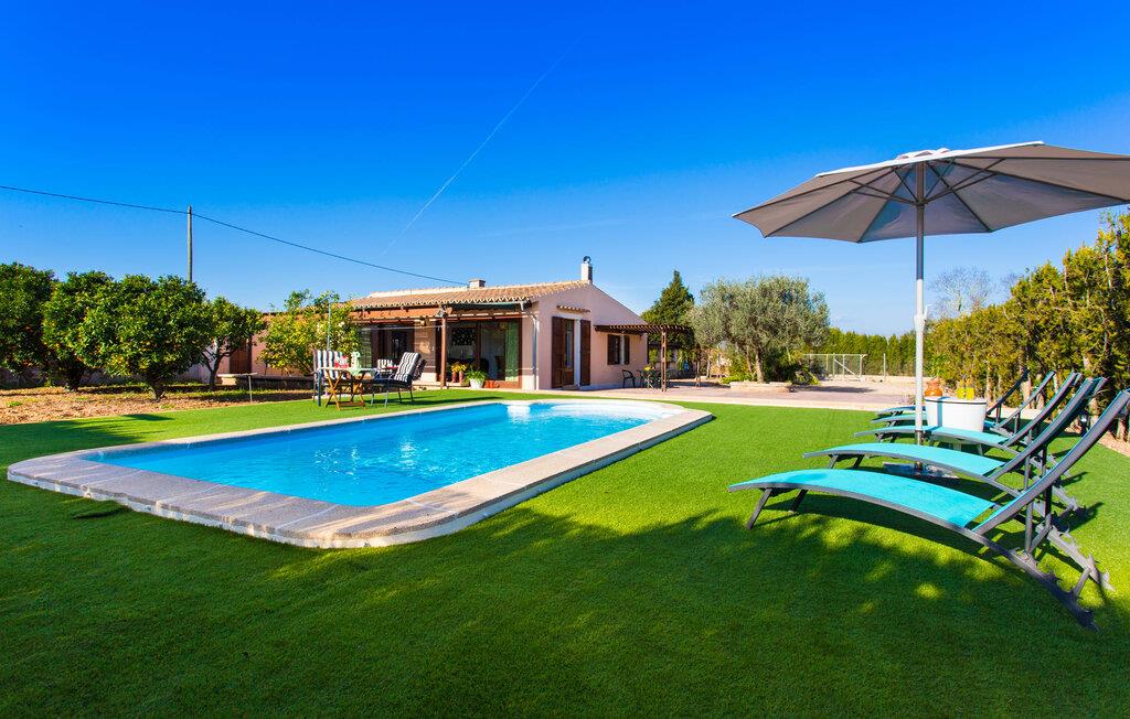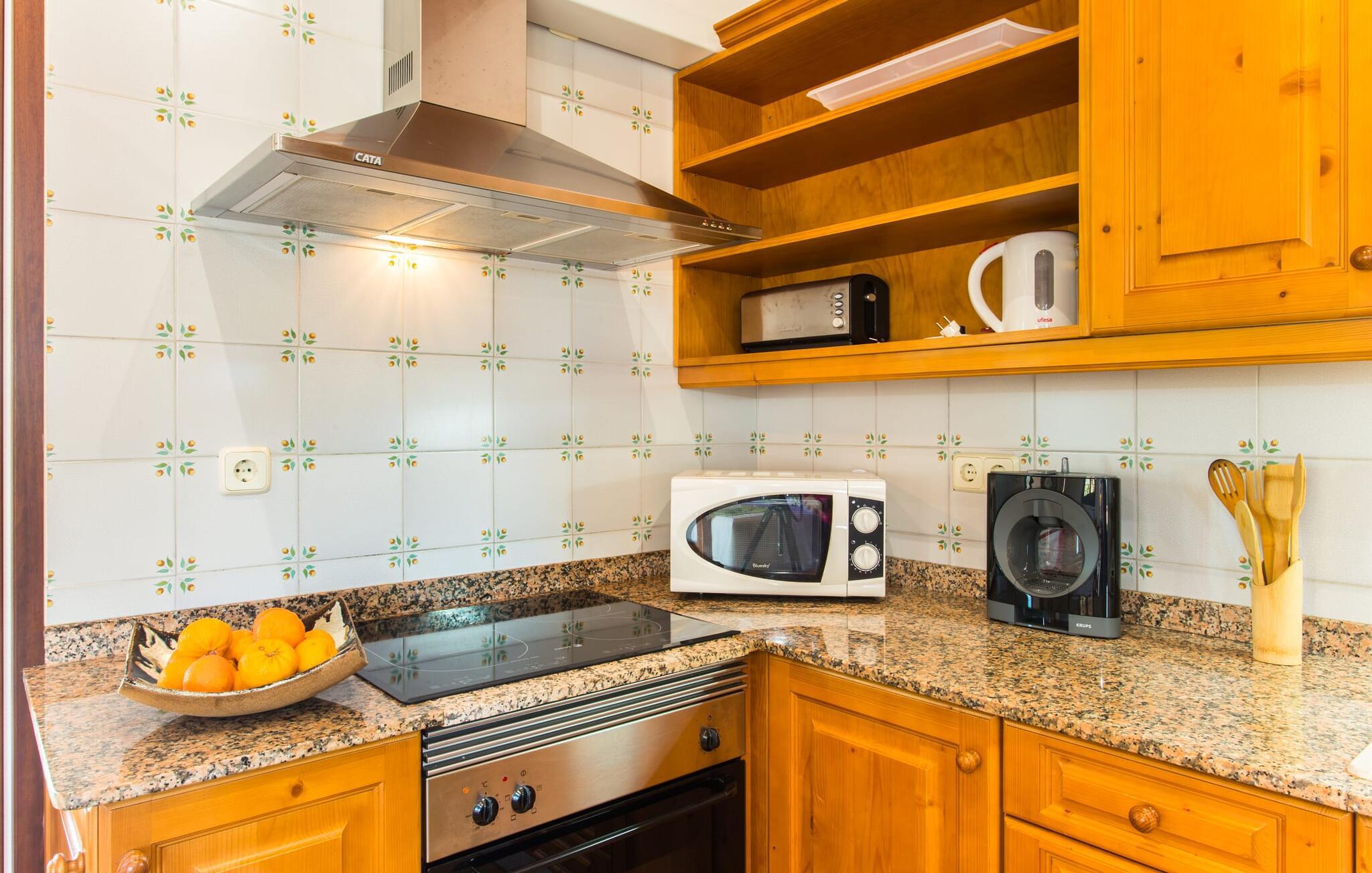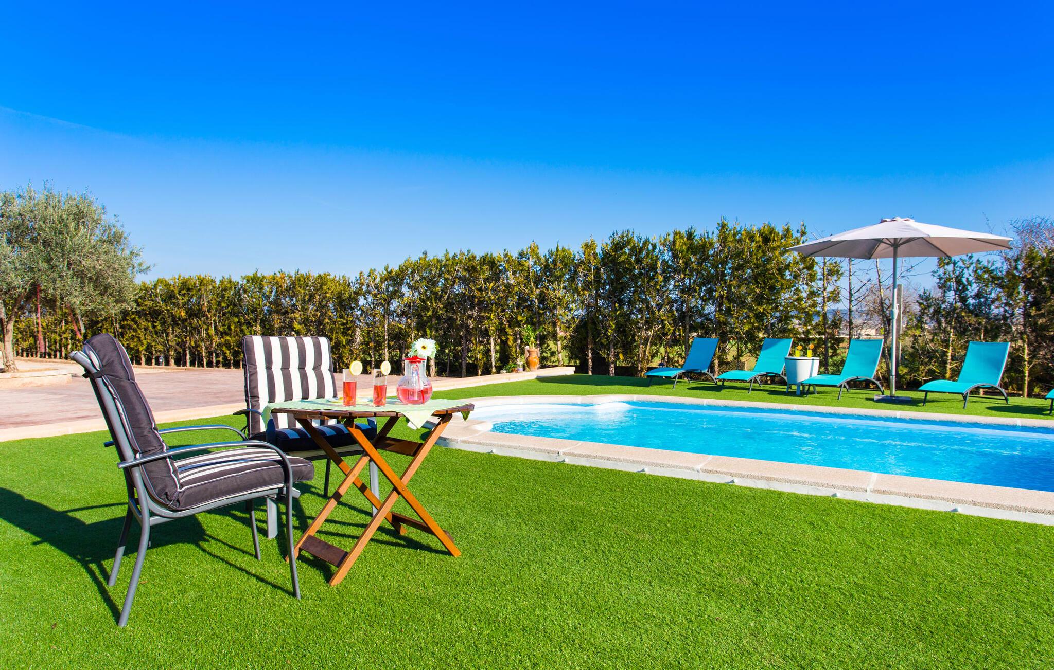 Det charmerende feriehus "S'Hostalet" er en smukt restaureret villa, der inviterer jer til at opdage dens unikke charme. Dette sydvendte hjem ligger på en vidtstrakt 11.500 kvm grund og har en fantastisk pool, perfekt til at slappe af i saltvandet, mens I nyder de rolige omgivelser. Udendørsområdet har komfortable liggestole, perfekt til at slappe af med en god bog, og en dejlig terrasse, ideel til morgenmad eller en aftengrill, komplet med en mobil grill og et udendørs køkken, der tilføjer rustik charme. Inde i opholdsrummet er fokus på komfort med lyse toner og farverige accenter. Den rummelige stue/spisestue fungerer som et multifunktionelt område til afslapning, underholdende og måltider. Tilstødende er et fuldt udstyret køkken med moderne hårde hvidevarer, herunder en brændeovn til køligere aftener og direkte adgang til den udendørs spiseplads. Villaen har to soveværelser med dobbeltsenge, det ene med en køjeseng, og et stilfuldt badeværelse med indretning af høj kvalitet, der sikrer et behageligt ophold for alle gæster. Den familievenlige villa “S'Hostalet” ligger i hjertet af øen, kun 2 km fra Montuïri, hvor der er butikker til daglige behov. Der er også et marked om mandagen på "Carrer Major", foran kirken. I Algaida (6 km) er der marked hver fredag i "Sa Plaza". Mange populære strande som Platja de Palma eller Platja de Sa Rapita og flere andre smukke bugter som Es Trenc er let tilgængelige med bil.