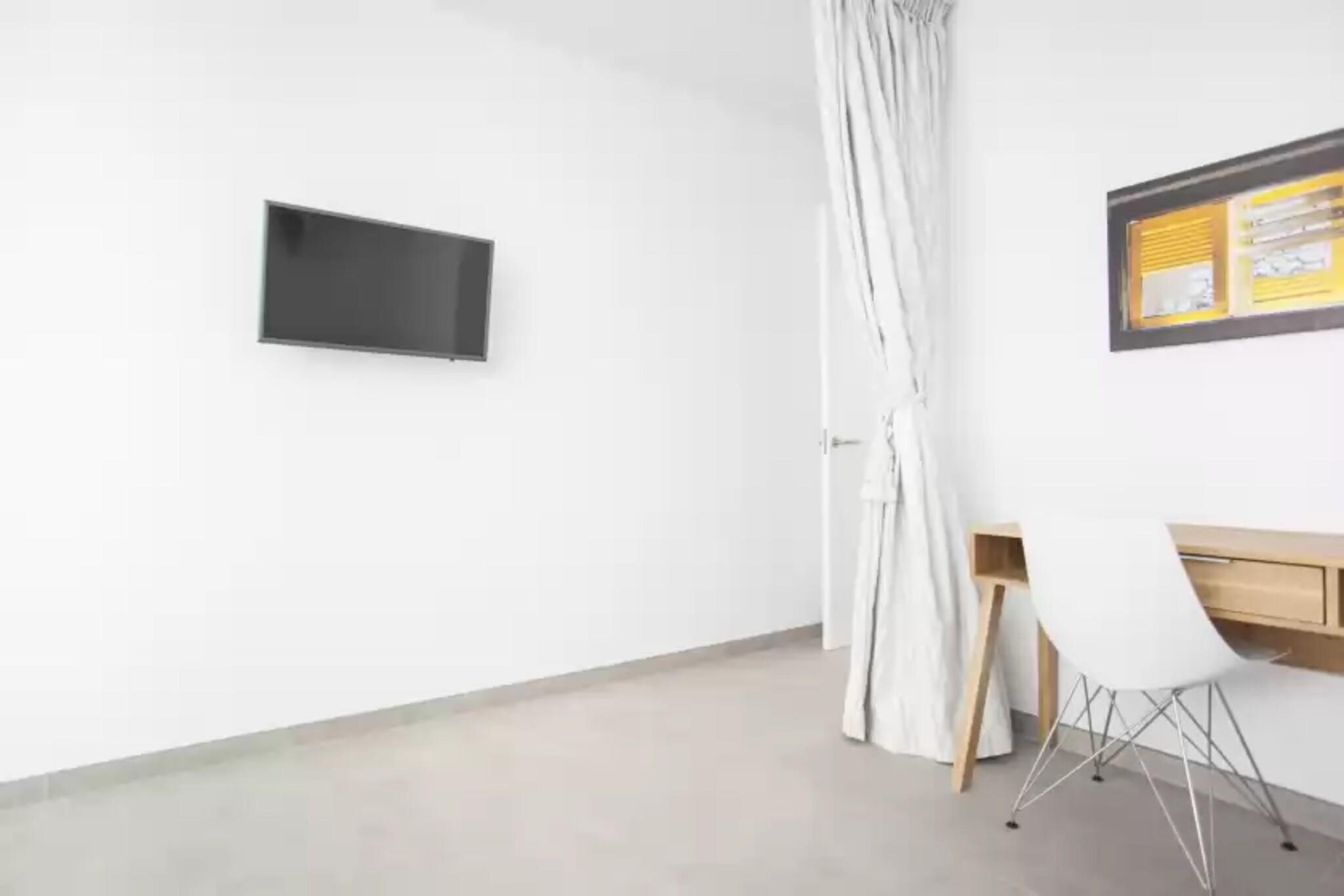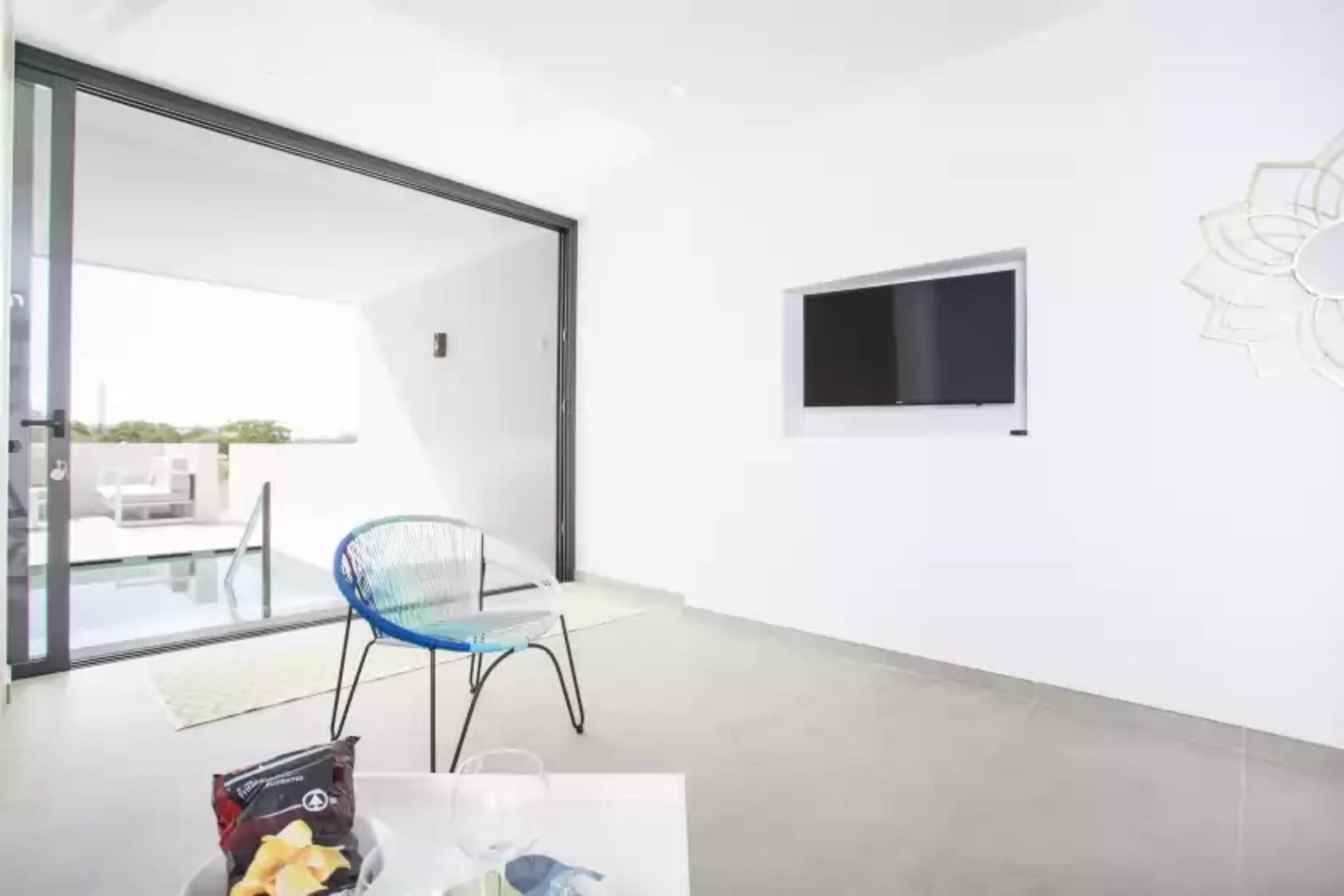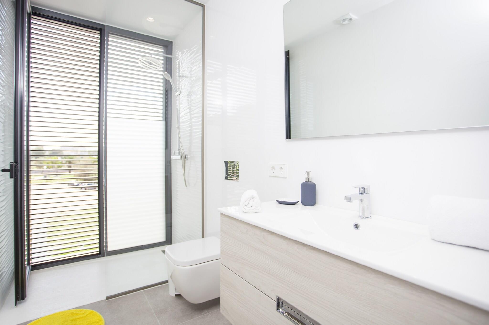 Stue, Køkken(komfur, kaffemaskine, ovn), soveværelse(2x enkeltseng), soveværelse(dobbeltseng), badeværelse, badeværelse, mikrobølgeovn, opvaskemaskine , køle-fryseskab, bruser, håndvask, håndvask, toilet, toilet, klimaanlæg, klimaanlæg, grill, swimmingpool, barneseng, barnestol