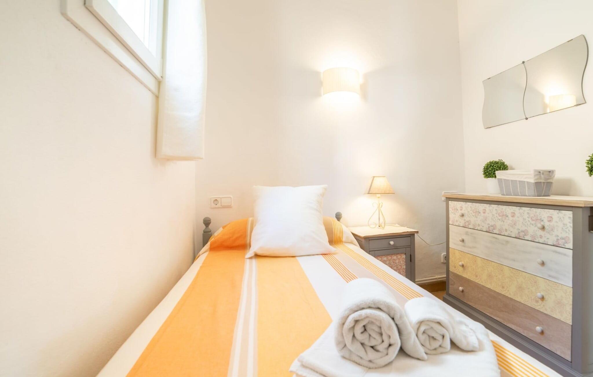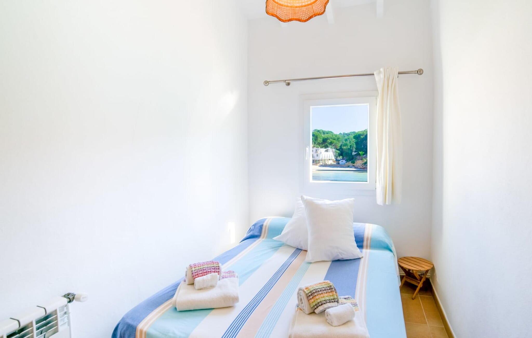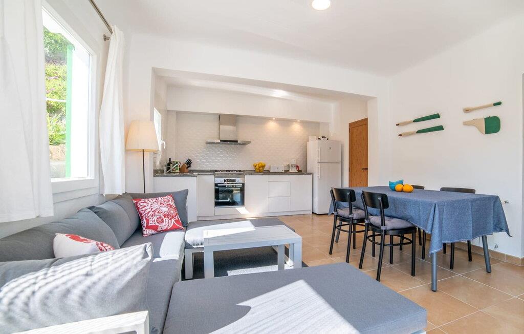 Villaen ligger ved foden af en større bjergskråning omgivet af fyrretræer og palmer. Tilgængelig via en trappe fra gaden ovenover, går man først til tagterrassen og derefter videre ned i stueetagen, hvor en hyggelig opholds- og spiseplads åbner ud til køkken og soveafdeling. Der er badeværelse med bruseniche, toilet og håndvask. Det tredje soveværelse i villaen er lille, men en praktisk tilføjelse afhængigt af gruppen. "Sa Barca" bevarer sin rustikke, uhøjtidelige charme, med et design, der smelter sømløst ind i det naturlige landskab. Dens utrolige beliggenhed ved havet er dens største aktiv, og tilbyder jer et sandt middelhavs-tilflugtssted.