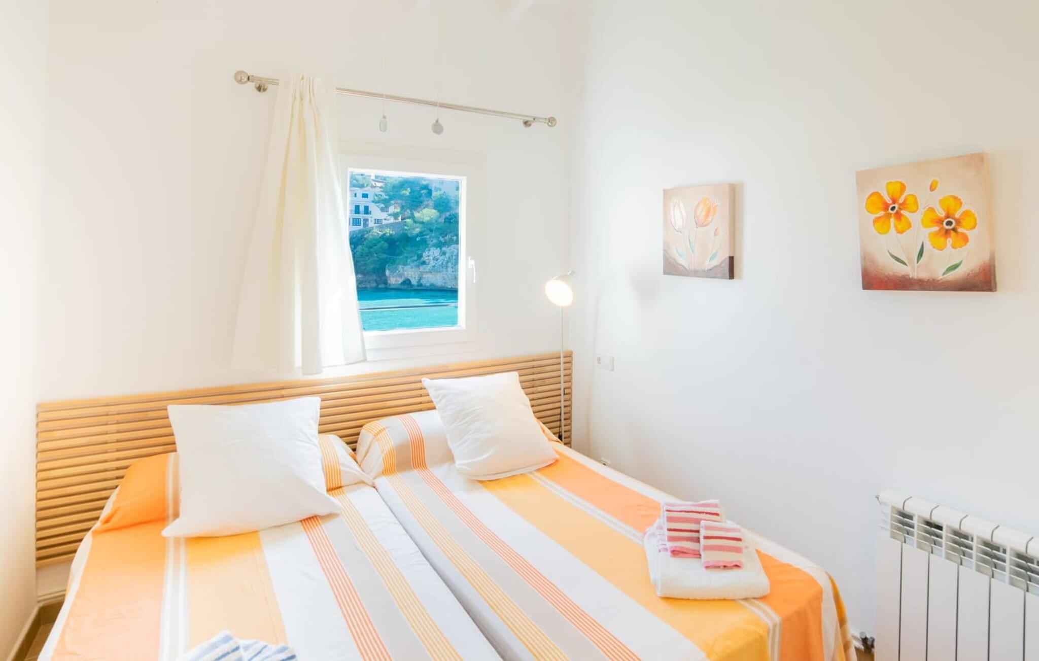 Denne tidligere fiskerlejlighed, charmerende beliggende direkte på Cala Santanyí, hedder "Sa Barca" og har privat adgang til den turkise sandlagune lige foran den. Det ligger ved foden af en 800 m² stor grund dækket med fyrretræer og palmer. Herfra kan I faktisk svømme til sandstranden. Barer, restauranter og supermarkeder kan nås meget hurtigt til fods.