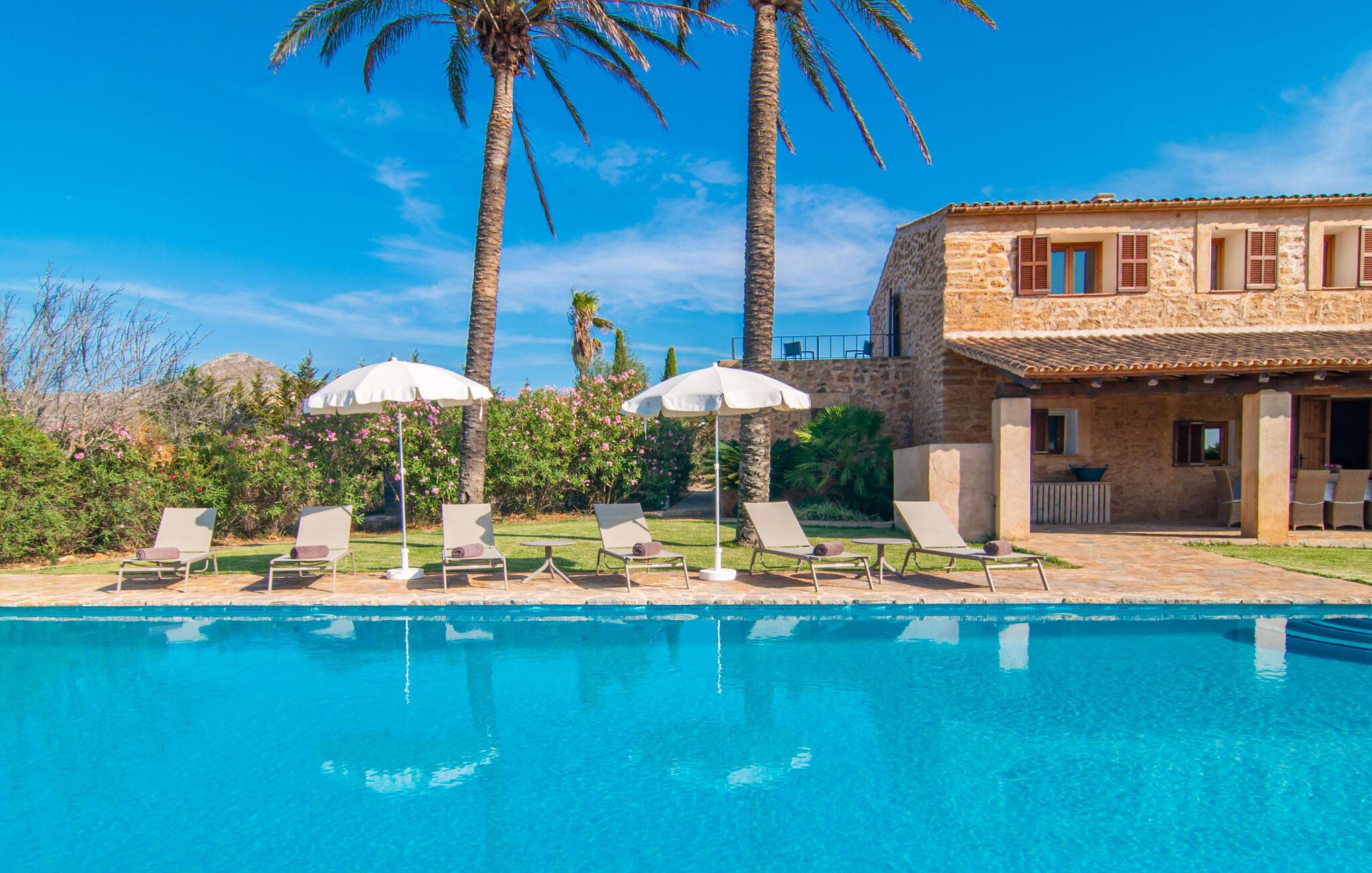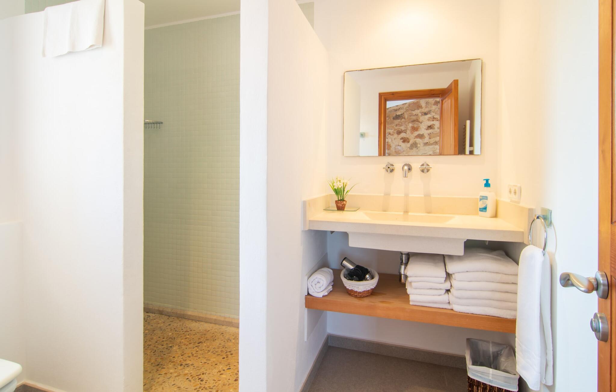 De to høje palmer, der elegant kanter poolen, er blot et af de markante træk, der kendetegner denne indbydende ferieejendom. Et løst og dekorativt beplantet areal skaber et behageligt indtryk udefra. Plæne- og grusarealer præger atmosfæren, der omgiver denne villa, ligesom naturstensterrassearealerne. Det ekstremt lange infinity-bassin med 14-meters baner giver jer den særlige oplevelse at lade jeres øjne vandre i det fjerne, mens I glider gennem vandet. Poolbassinet er flisebelagt med smukke, lyse blå mosaiksten og er meget let tilgængeligt via trapper. Der er masser af komfortable liggestole til rådighed for behagelig solbadning. Hvis UV-strålingen bliver for stærk, er der tre parasoller i nærheden. Den overdækkede terrasse lige ved siden af huset inviterer også til at blive hængende. Forskelligt placerede komfortable siddemøbler er atmosfærisk indrammet af natursten, et rustikt synligt bjælkeloft og overdådige søjler. Ved det store spisebord kan I starte jeres morgen med udsigt over den imponerende vidde og nyde en solid morgenmad på samme tid. Om aftenen kan I bruge grillen til at tilberede en kulinarisk middag. Når I træder ind i huset, får I straks et indtryk af rum og klarhed. Der er intet unødvendigt distraherende tilbehør at finde her. Tværtimod er flairen her primært bestemt af det usædvanlige gulvdesign (som delvist opnås ved brug af flodsten) samt mange lyse farver og kontrasterende træsorter. I den store stue kan I til enhver tid finde jer tilpas og slappe af med bænk, sofa og lænestol - endda med en god film, da fladskærms-tv med satellitforbindelse er installeret her. I det store tekøkken ved siden af bliver I budt velkommen i en hjemlig atmosfære. Et smukt, solidt spisebord giver alle gæster mulighed for at spise indendørs. Det fuldt udstyrede køkken, delvist dekoreret med hvide vægge og udstyret med moderne apparater, indeholder alt hvad I behøver, herunder en kedel, et filter og en italiensk kaffemaskine. Det høje niveau af komfort og rummelighed lover, at madlavning vil være en fornøjelse selv i en større gruppe. Smagfuldt og enkelt indrettede værelser inviterer jer til at tilbringe afslappende timer. Der er to senge på 1,00 x 2,00 m til rådighed i hvert værelse. De en-suite badeværelser imponerer med deres moderne design og møbler af høj kvalitet. Et strygejern og en hårtørrer er til rådighed i huset, så I ikke behøver at medbringe jeres eget. Myggenet er også tilgængelige. Hver tirsdag er der et ugentligt marked i Artà, som varmt kan anbefales at besøge. Her finder I regionale kulinariske specialiteter samt mallorcansk kunsthåndværk. Ikke langt fra dette smukke feriehus ligger nogle smukke hvide sandstrande, hvoraf nogle stadig er rigtige insider-tips. Colonia San Pere Bay er omkring 15 minutter væk i bil. De fire golfbaner Capdepera Golf, Pula Golf, Son Servera Golf og Golf Canyamel er også i nærheden. Den smagfuldt indrettede villa "Sa Butigueta" ligger idyllisk omkring 12 km vest for den smukke by Artà på den nordøstlige del af øen. Det tilbyder en utrolig panoramaudsigt. Shopping- og spisemuligheder er mindre end 20 minutter væk i bil. I kan også nå den smukke lille havneby Colonia de Sant Pere på ingen tid (9 km), hvor I finder utallige barer og restauranter langs havet.