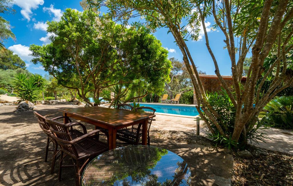 Et sandt haveparadis kan opleves under en ferie i denne alsidige bondegård på Mallorca, som passer malerisk ind i de smukke omgivelser vest for Artà. Fantastiske middelhavstræer og -buske præger det parklignende område, der strækker sig over flere niveauer og byder på en række retreater, nicher og områder til at slappe af. Her, under tag eller direkte i det fri, kan I slappe af i lounger eller på liggestole, sidde ved små borde og nyde en særlig form for privatliv, da I kan sprede jer og bogstaveligt talt gå jeres egen vej. Små trin, stier og mure løber gennem det frodige terræn og deler det op i forskellige områder. En af dem er den 10 meter lange pool med en omgivende solterrasse, bruser, harmonisk arrangerede planter og et overdækket område. Fra terrassen direkte ved huset, hvor man er lidt forhøjet, har man en særlig smuk udsigt; Heroppe er også det store udekøkken med grill til aftengrillning. Husets indretning byder sine gæster velkommen i en hyggelig, sommerlig og farverig blanding af stilarter. Masser af træ, terracotta fliser, synlige bjælker og farverige accenter præger husets flair, som helt sikkert kan følge med udearealet med hensyn til rummelighed. I stueetagen er der en stue-spisestue med pejs, et separat køkken (selvfølgelig fuldt udstyret), som er tilgængeligt udefra, samt et soveværelse med dobbeltseng og et badeværelse. Gangen, hvor trappen på øverste etage er placeret, er også så rummelig, at der er plads til endnu en sofa, hvor I også her kan hygge jer og nyde stuestemningen. Ovenpå er der et stort soveværelse med aircondition til to personer med en-suite badeværelse. Stuehuset "Sa Carbona Nou" byder på 17.500 m² jord, som er beliggende på landet ved porten til den charmerende lille by Artà. Cala Ratjada med sin smukke strand og havnepromenade ligger omkring et kvarters kørsel væk, Colonia de Sant Pere er kun 10 minutter væk. Indbydende strande som Canyamel-stranden eller Platja de Colonia de Sant Pere ligger 11 til 12 km derfra.
